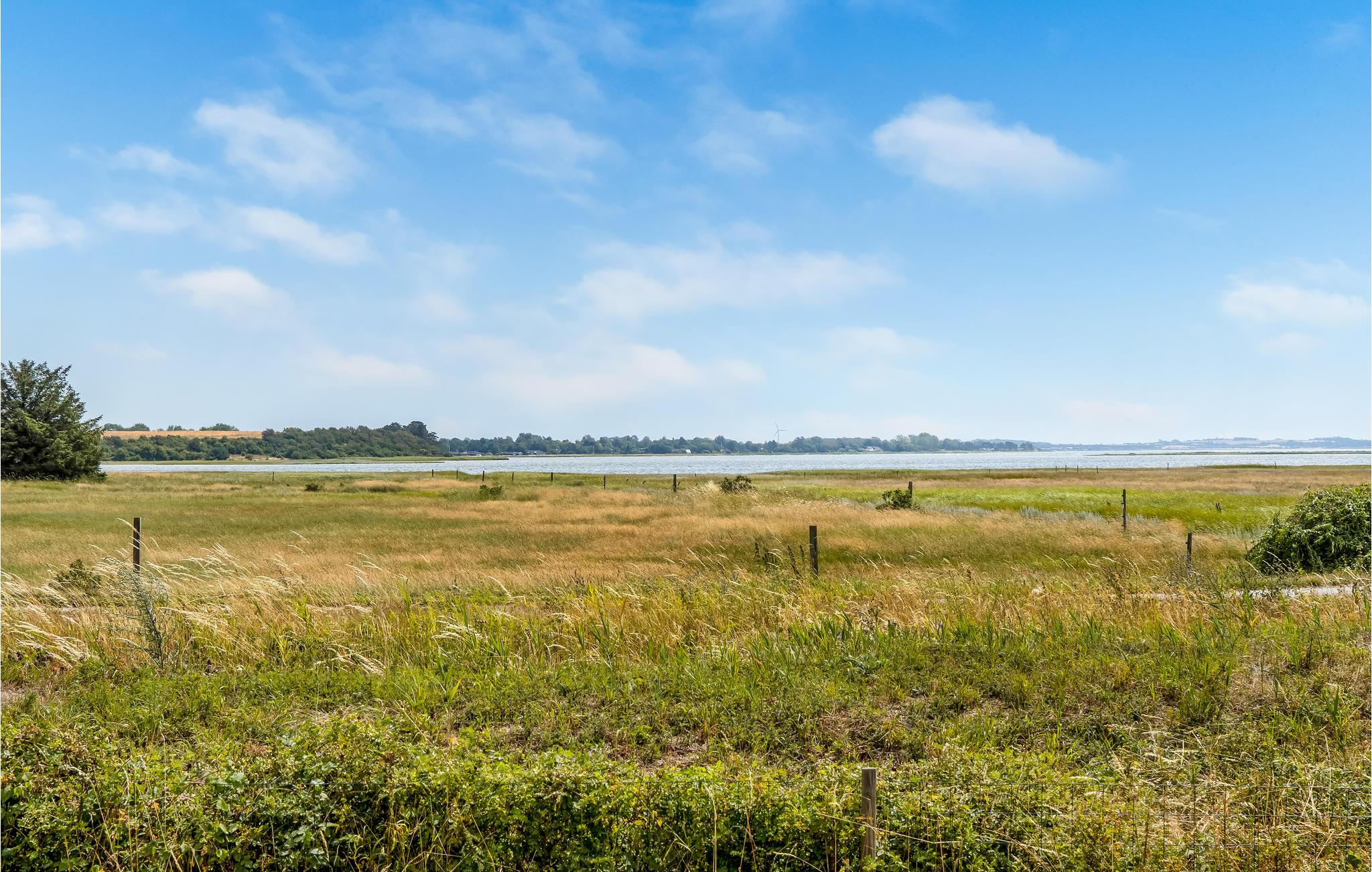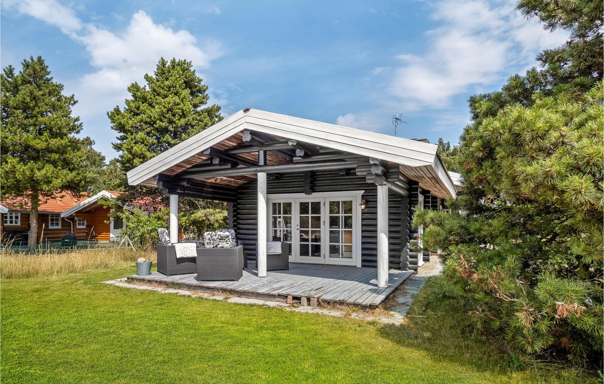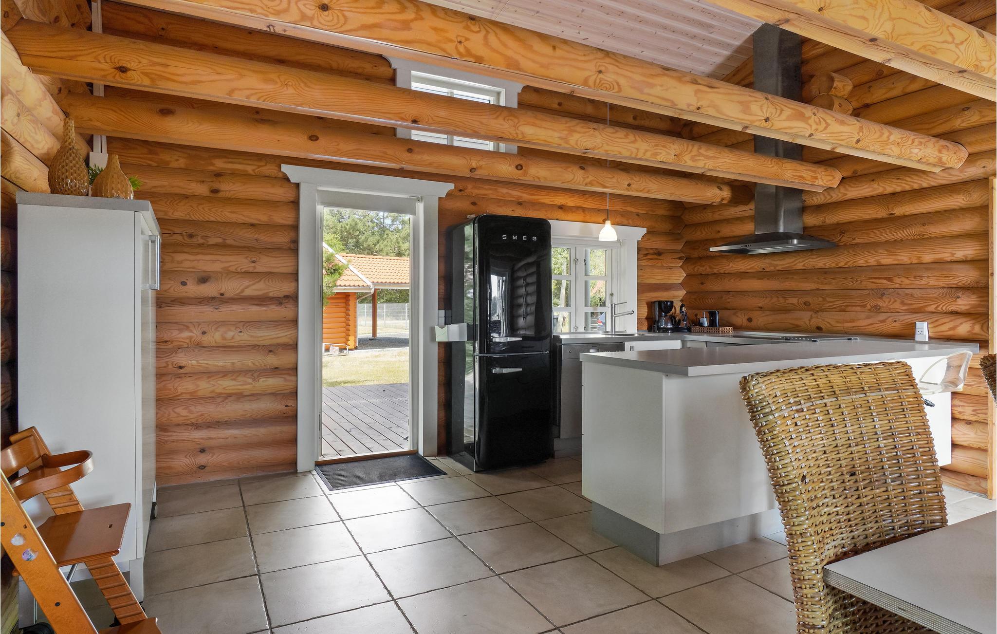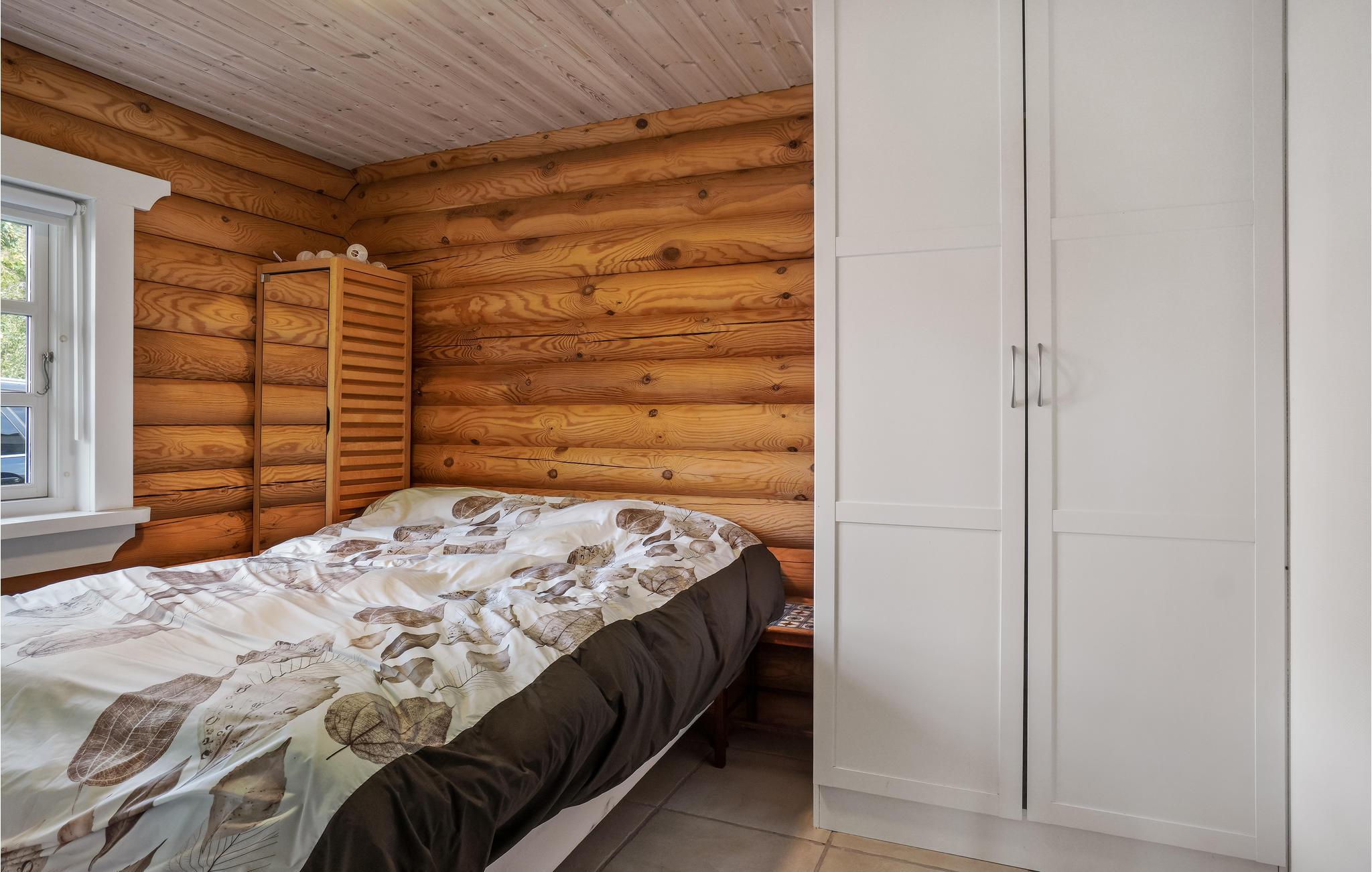 Hyggelig bjælkehytte på Reersø med spabad, pejs, havudsigt og stor naturgrund nær stranden.