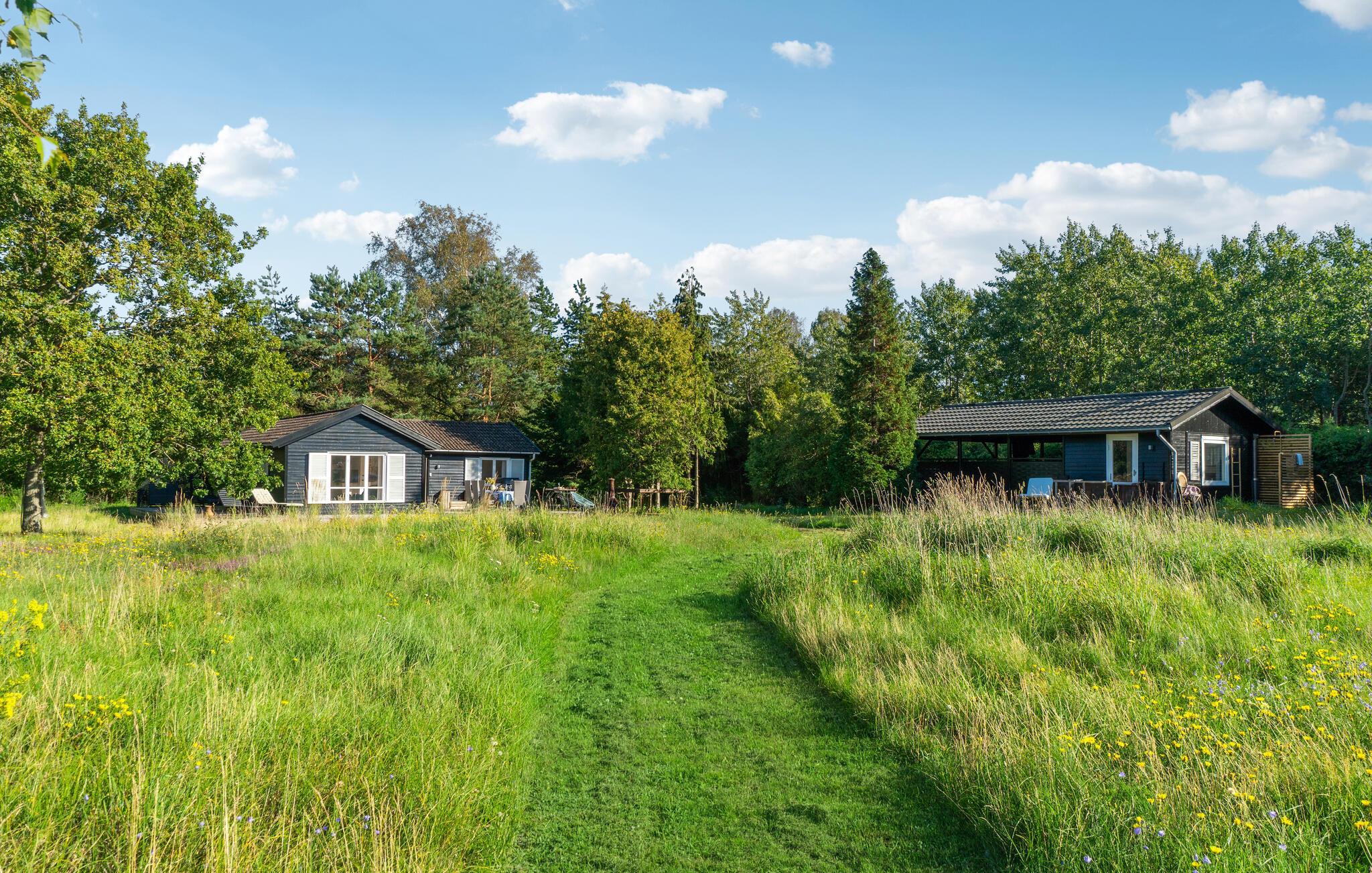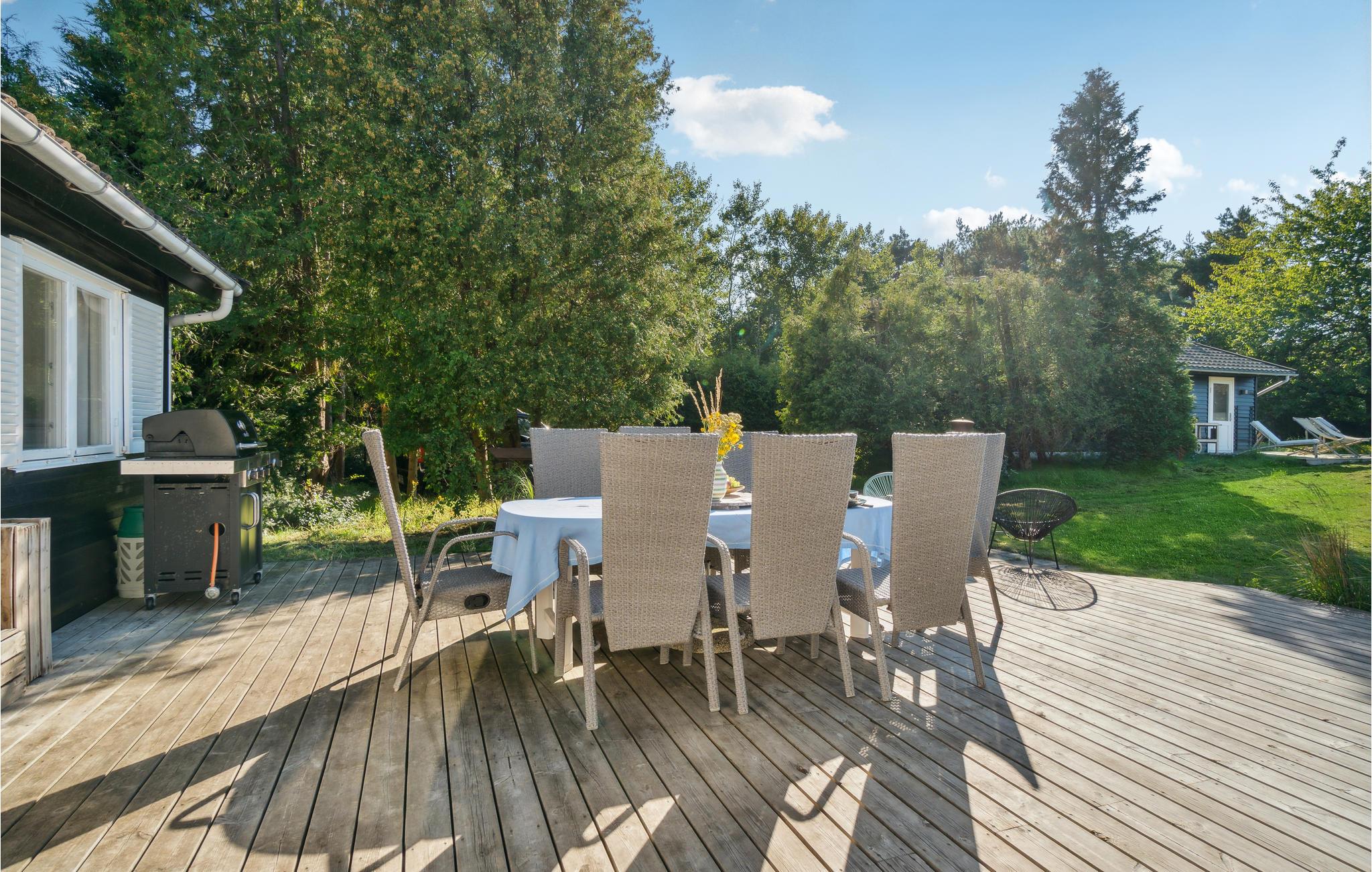 Hyggeligt sommerhus ved Jammerland Bugt med stor terrasse, naturudsigt og moderne komfort i rolige omgivelser.