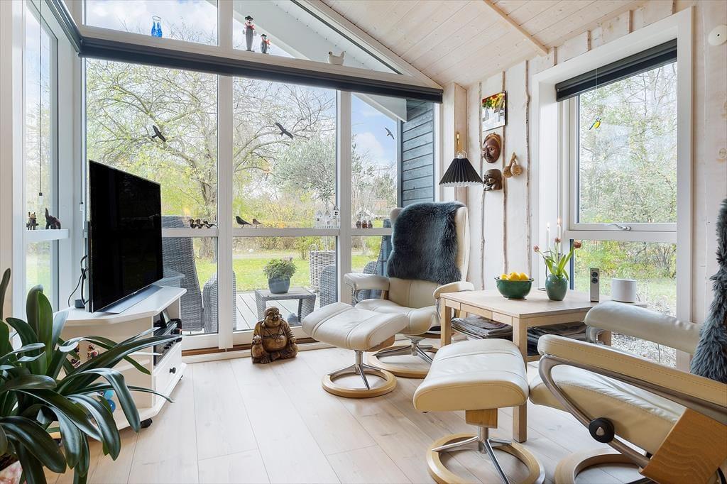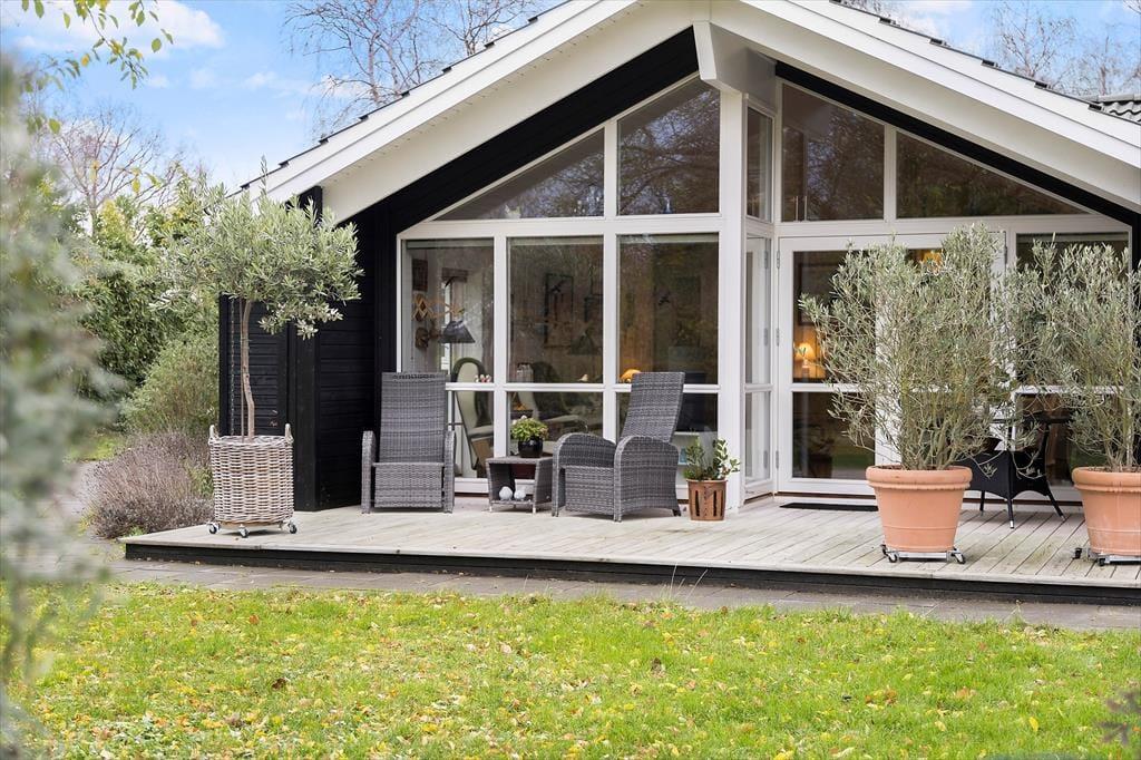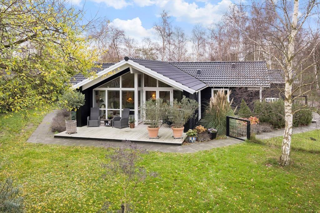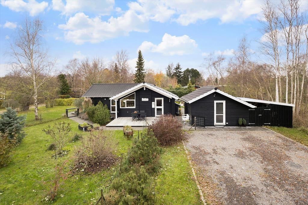 Nyd livet udenfor: Træd ud på en af de tre skønne terrasser og mærk feriestemningen brede sig. Nyd den store 6 personers udendørs sauna, hvor du kan slappe helt af og blive varmet igennem. Nyd morgenkaffen omgivet af træernes summen, slap af med en god bog eller lad familien samles om en hyggelig middag under åben himmel. Sommerhuset ligger på en solrig grund med skovbevoksning i baghaven, så her er der rig mulighed for både afslapning og udeliv. Kun 400 meter fra huset finder du stranden – perfekt til en forfriskende dukkert eller en skøn aftentur langs vandet.