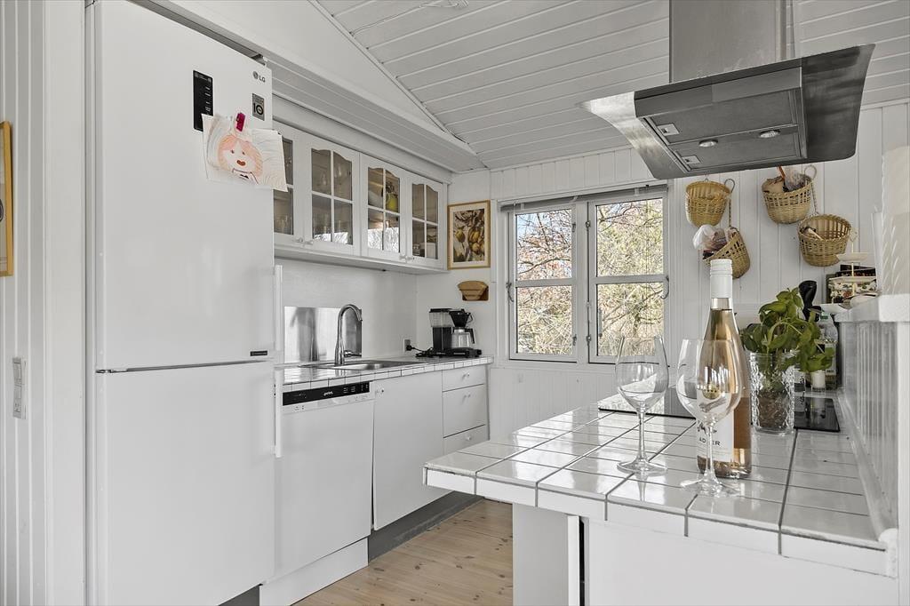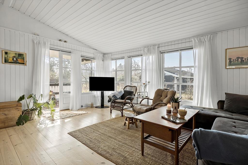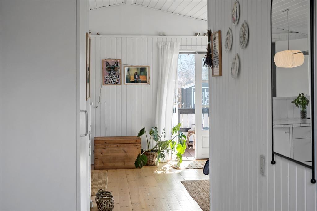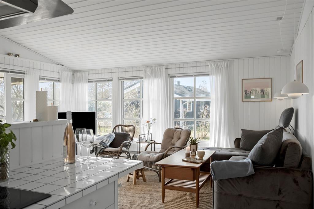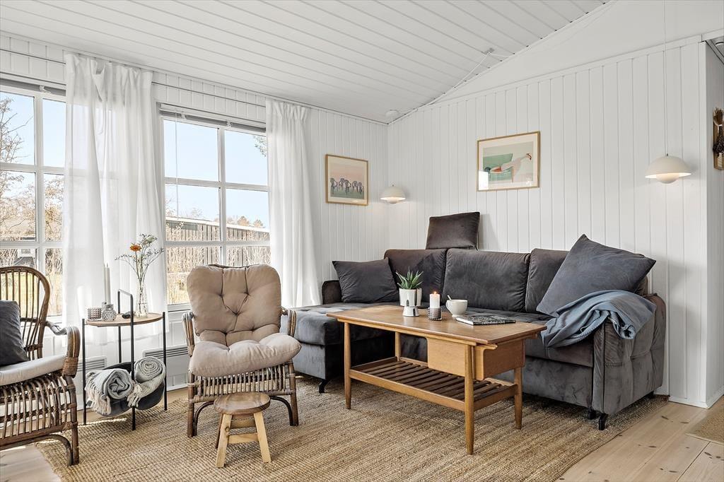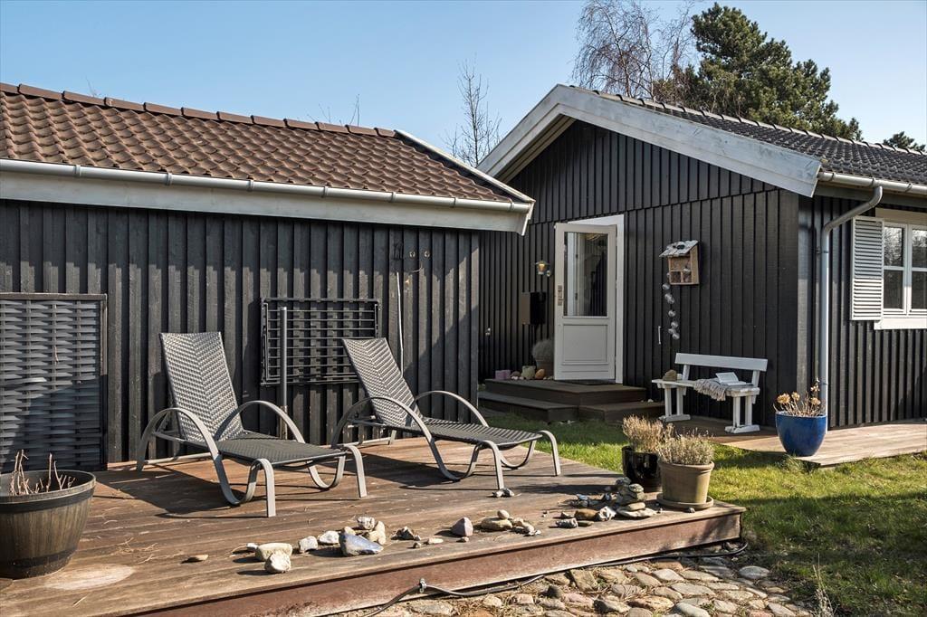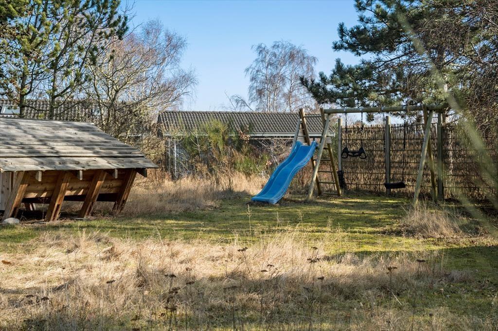 Nyd livet udenfor: Træd ud i de dejlige omgivelser, læs en god bog på den hyggelige terrasse eller tag en lur på solsengen. I dette hus er der flere terrasser og rig mulighed for aktivitet for børn og naturelskere, i haven er der nemlig et shelter, hvor du kan overnatte i det fri og et gyngestativ med rutsjebane til leg og sjov for de mindste. Tag på en lille tur fra sommerhuset, gå ca. 225 meter ned for enden af vejen og få en frisk dukkert ved stranden eller udforsk det skønne område på en længere gåtur. Slut sommerdagene af med manér med at spise en god grillmiddag under åben himmel og lad udendørsoplevelsen udfolde sig.