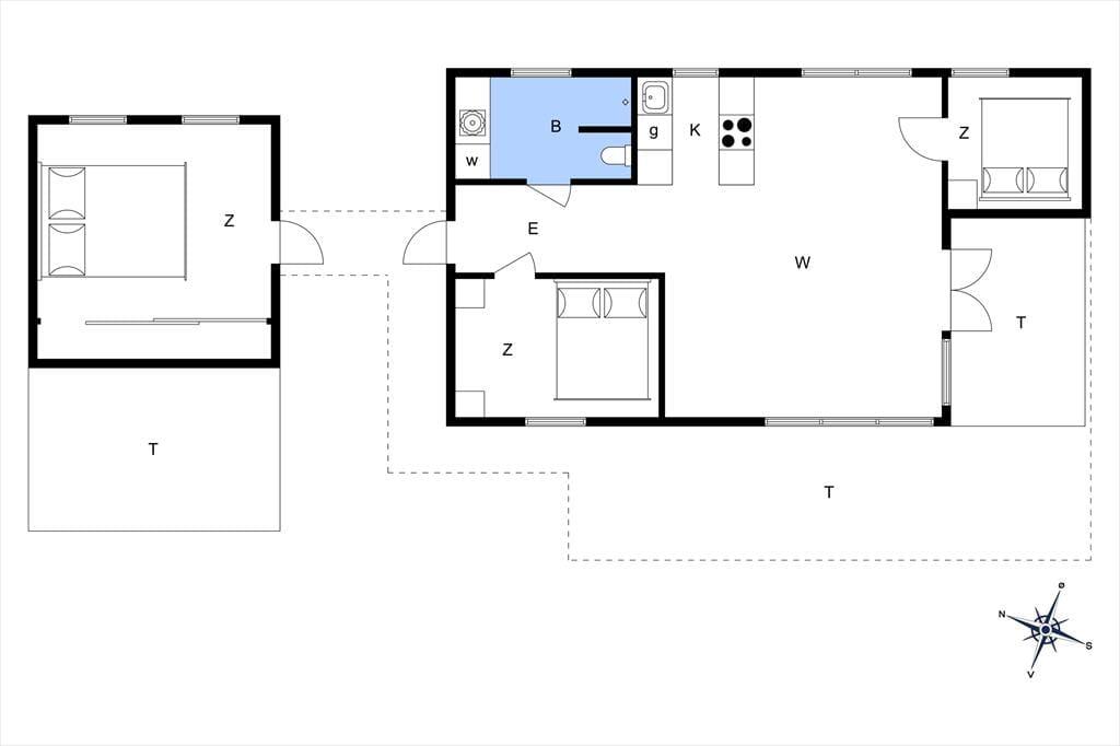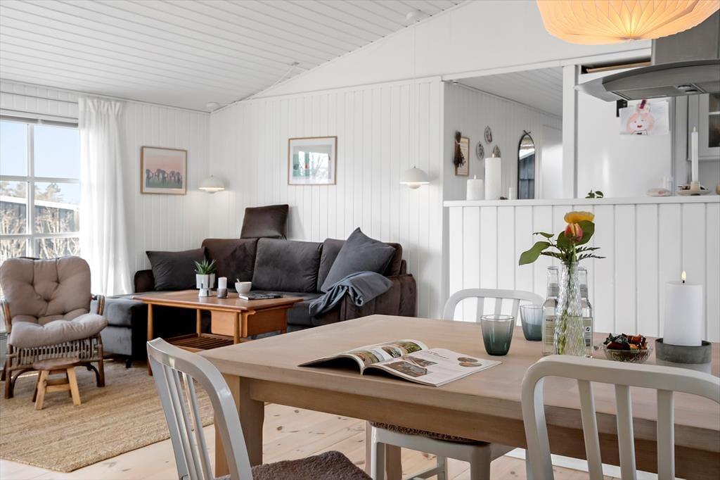 Velkommen indenfor: Dette feriehus er indrettet i hyggelig og komfortabel sommerhusstil, perfekt til at danne rammen din næste ferie med familien. Træd ind i den lyse gang videre til det åbne køkken i kombination med stue og spiseplads. Huset har i alt 3 soverum med dobbeltseng, hvoraf et af værelserne er placeret i det hyggelige anneks. Fra stuen er der udgang direkte til terrassen og huset rummer også et fint badeværelse med plads til vaskemaskinen og en stor bruseniche.