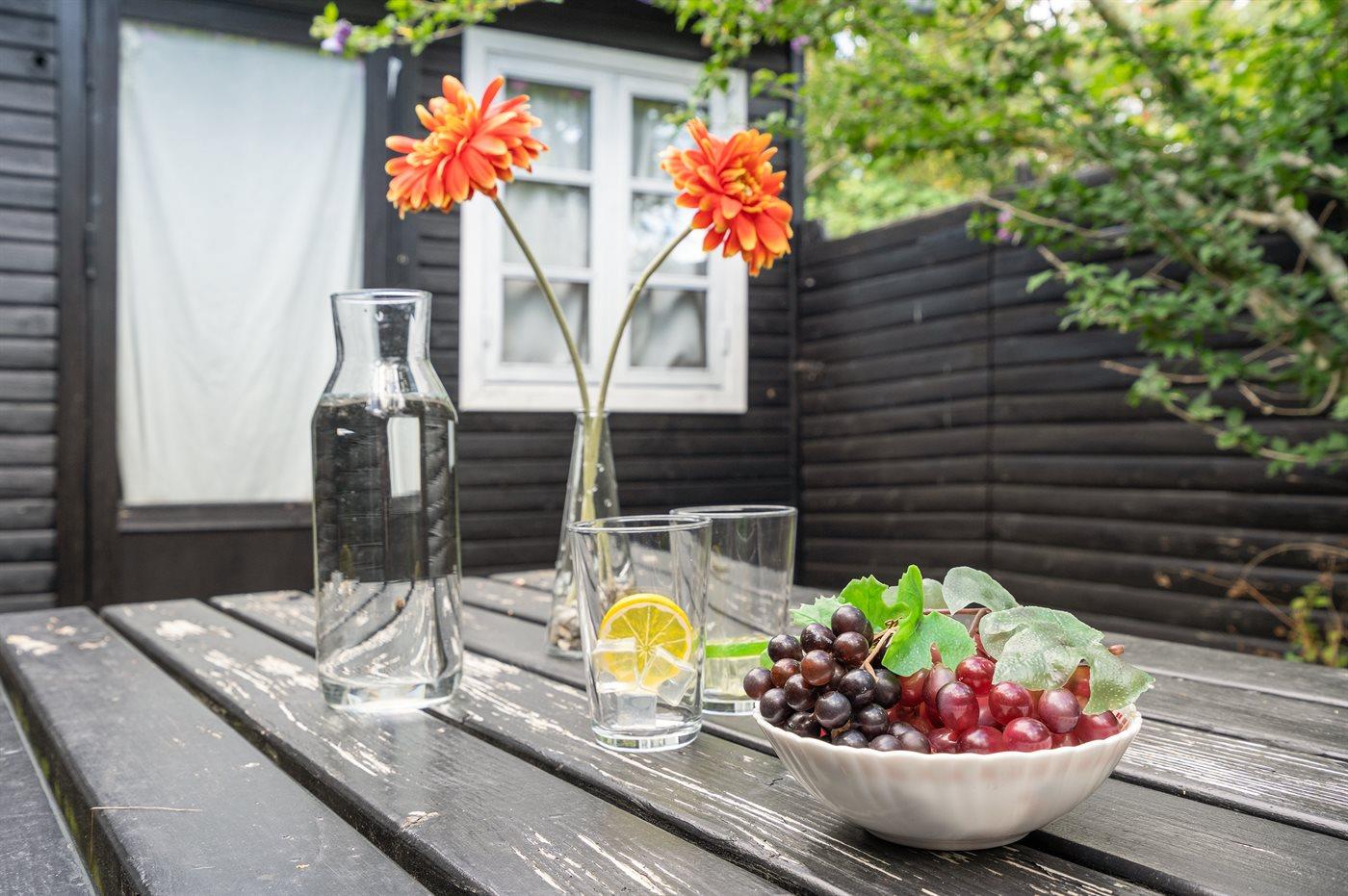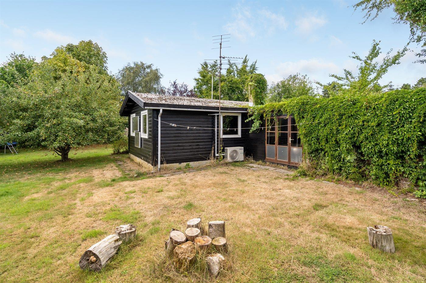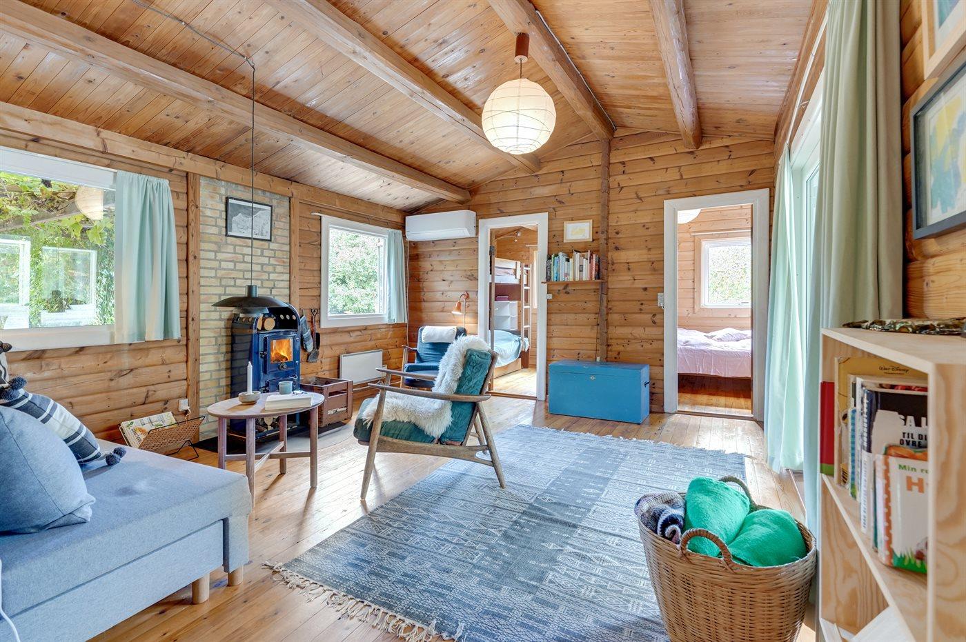 Charmerende sommerhus tæt på vandet med stor have, terrasse og bålplads, ideelt til familier med børn.