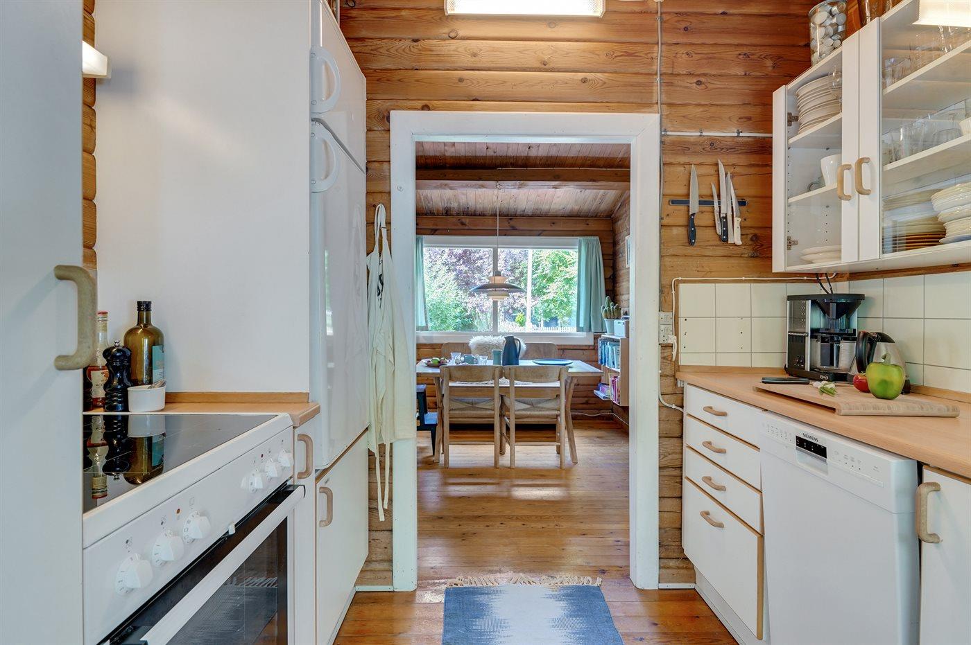 Køkkenet er udstyret med 1 køleskab. Der er 4 keramiske kogeplader, varmluftovn, mikrobølgeovn samt opvaskemaskine.