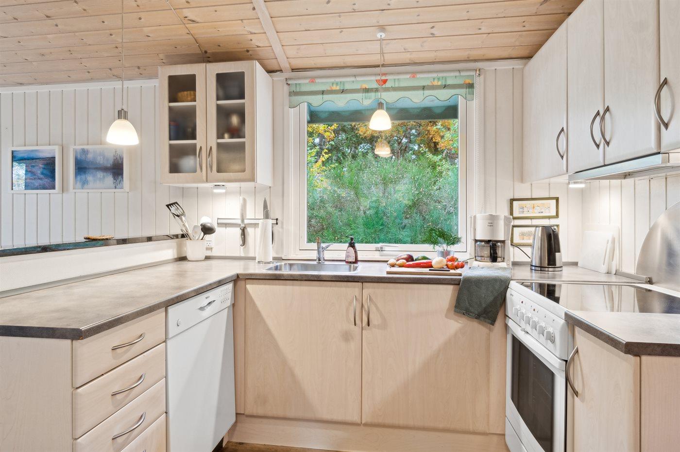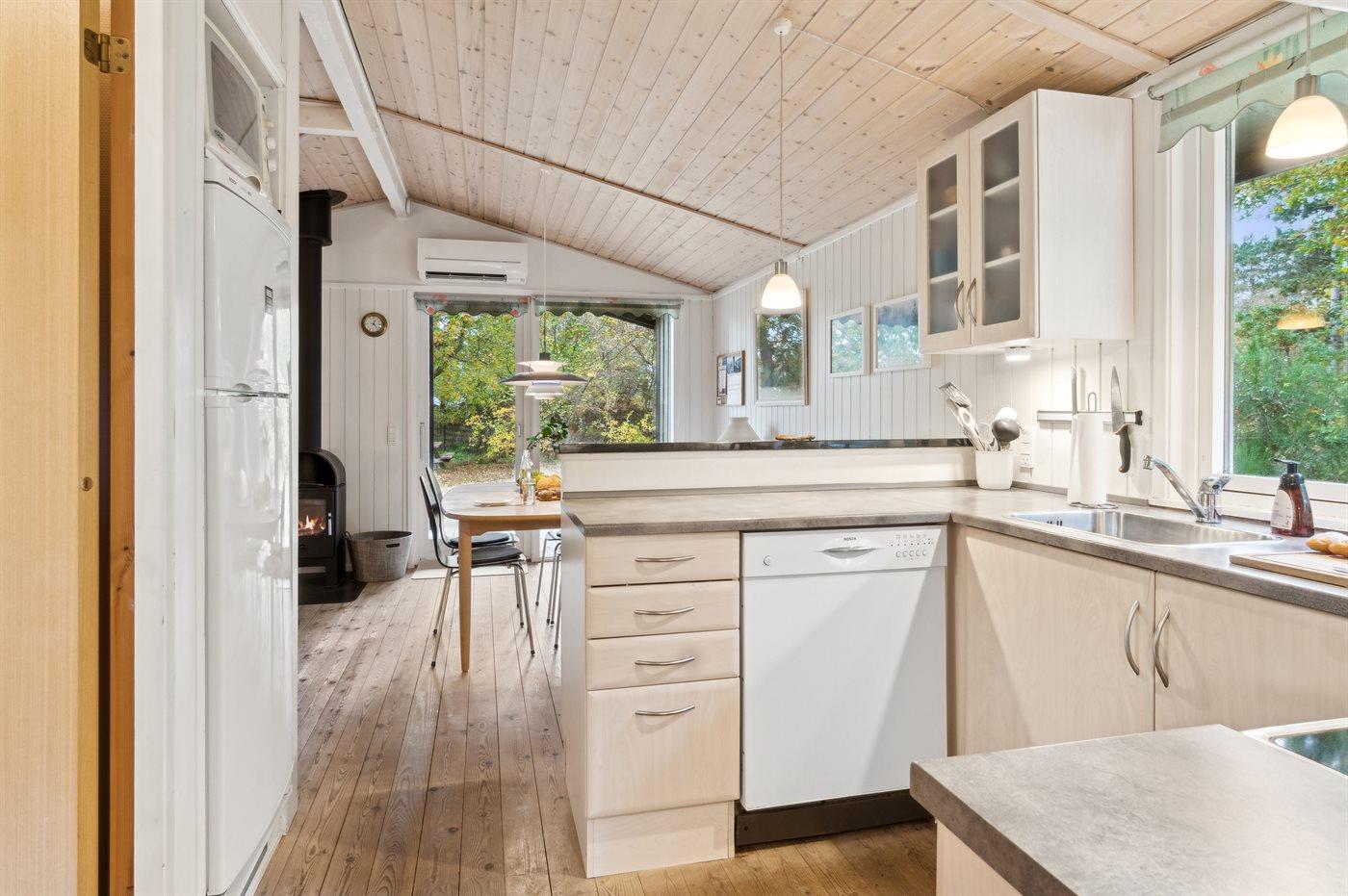 Køkkenet er udstyret med 1 køleskab. Der er 4 keramiske kogeplader, varmluftovn, mikrobølgeovn samt opvaskemaskine.