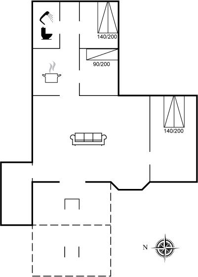 Der er i alt 3 soveværelser. Sovepladserne fordeler sig på: 4 sovepladser i dobbeltsenge. 1 soveplads i enkeltseng.