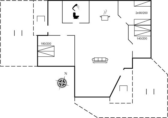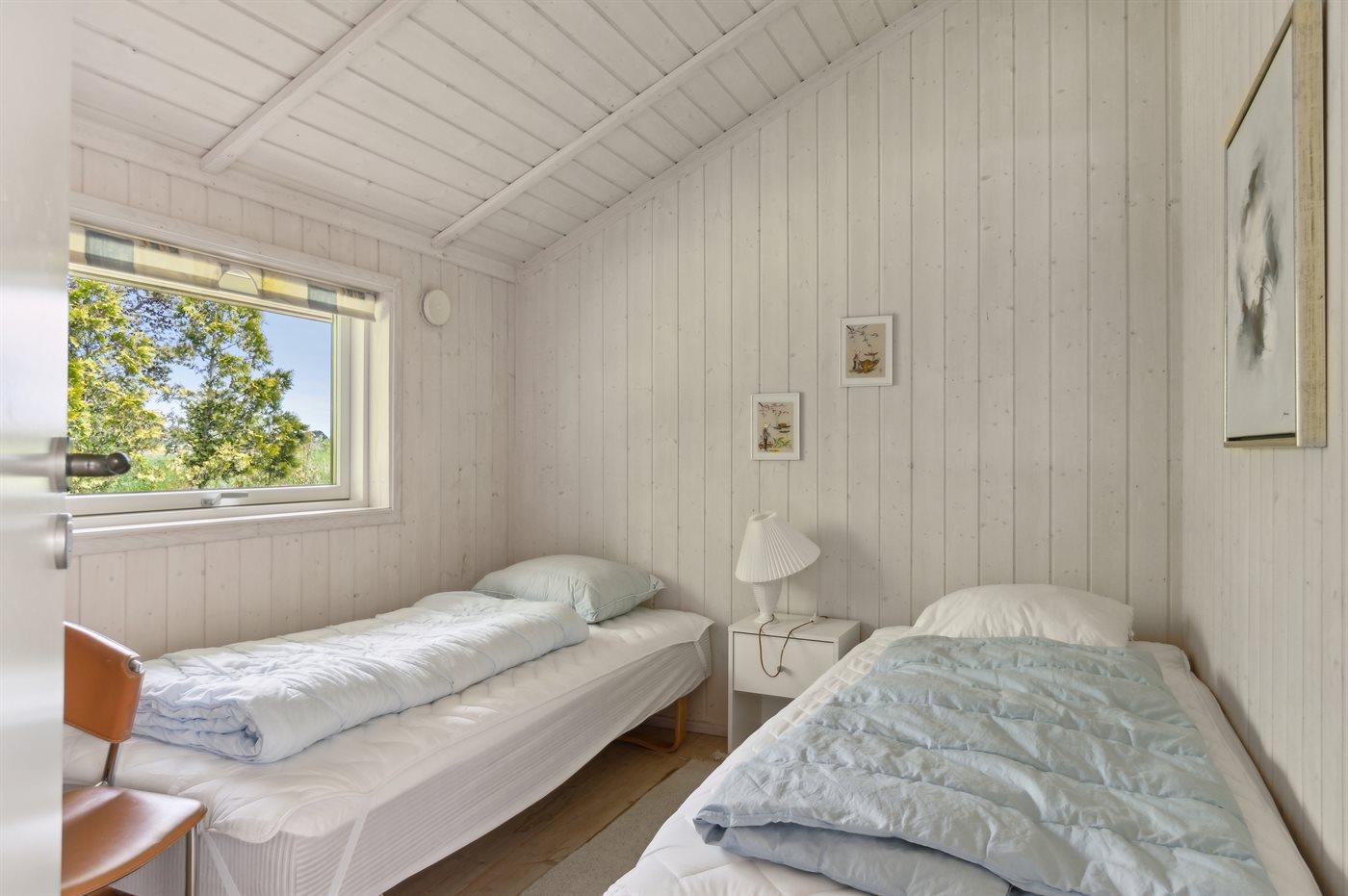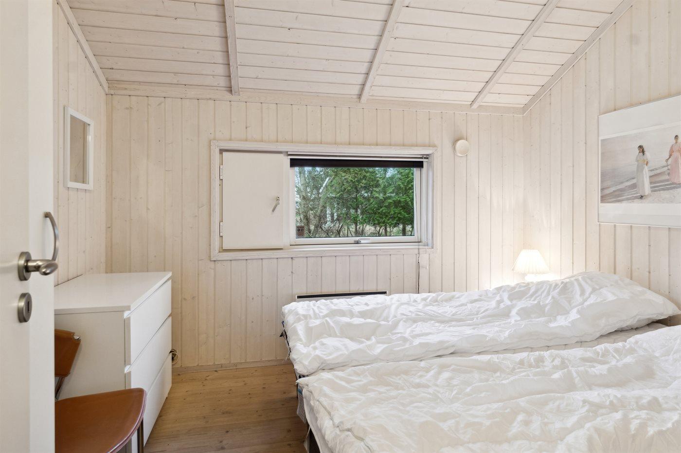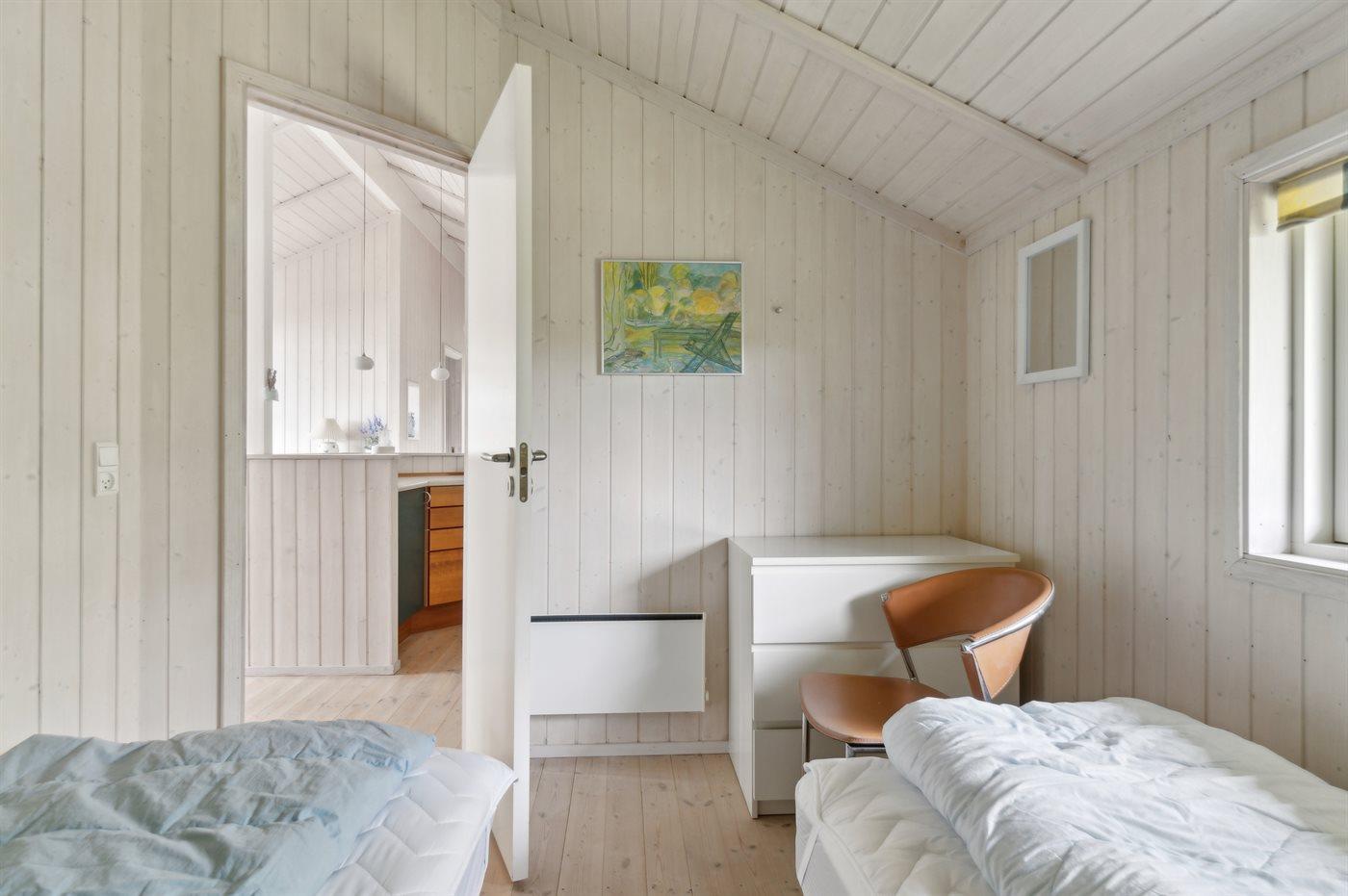 Der er i alt 3 soveværelser. Sovepladserne fordeler sig på: 4 sovepladser i dobbeltsenge. 2 sovepladser i enkeltsenge. Derudover er der 1 stk. barneseng.