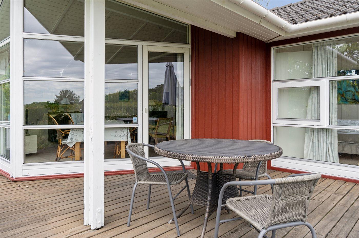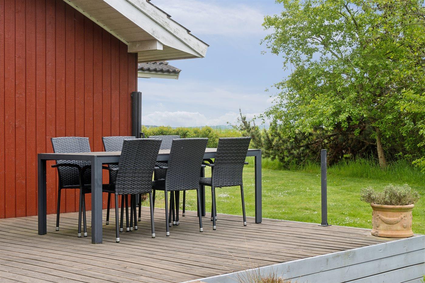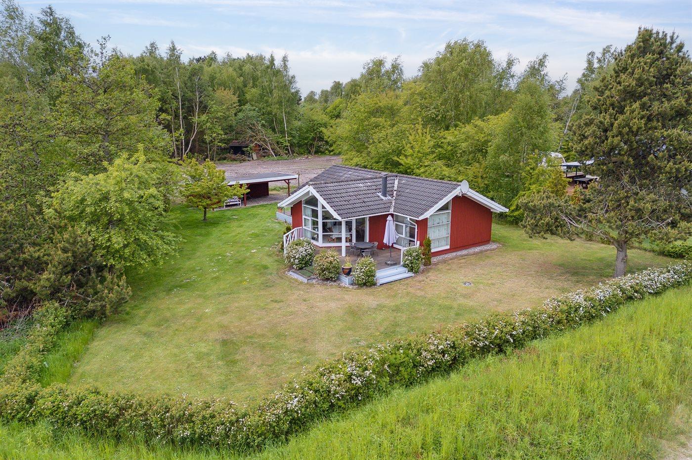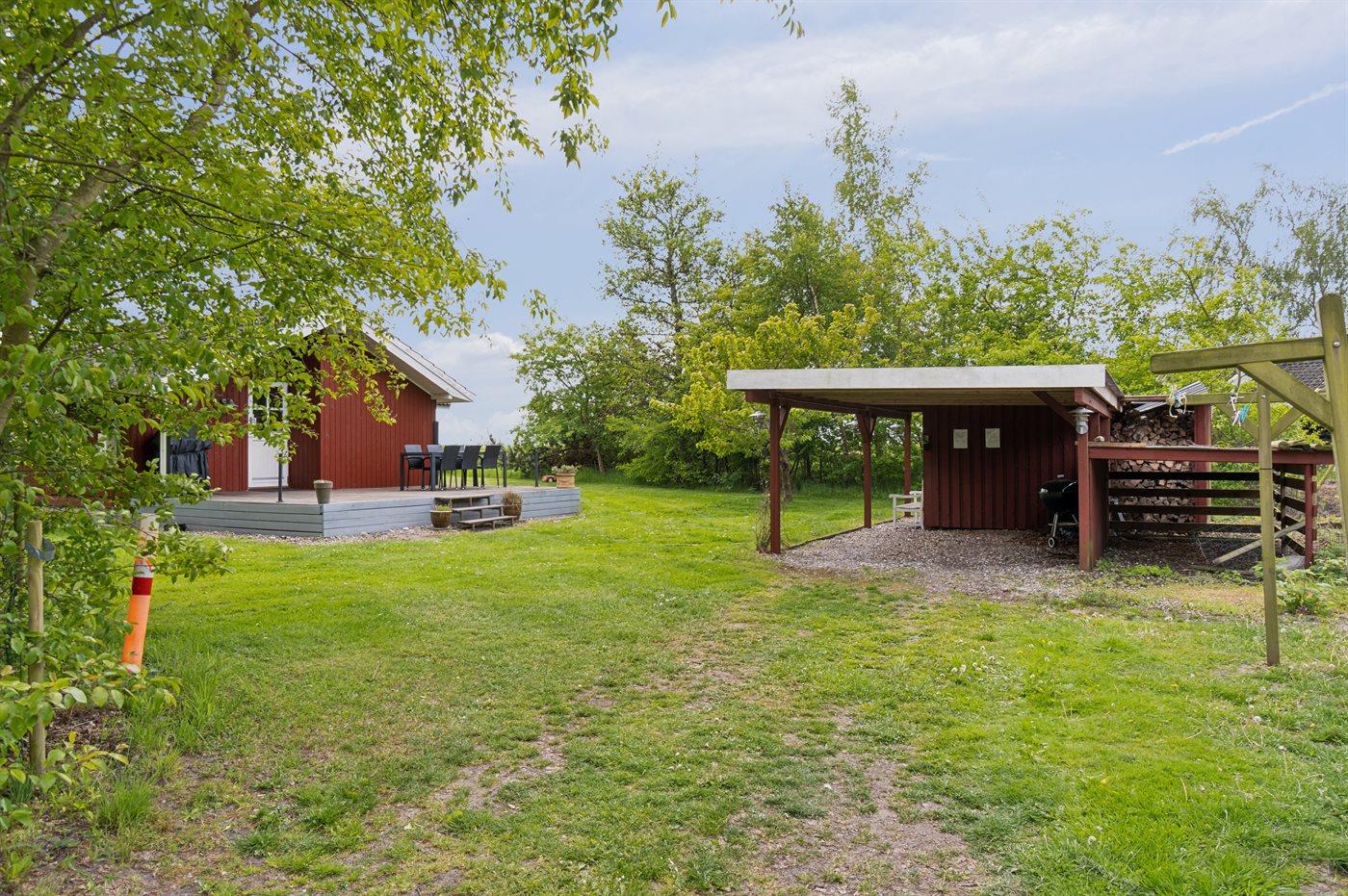 Ferieboligen er beliggende på en 1160 m² stor havegrund. Der er 225 m til havet. Nærmeste forretning er beliggende i en afstand af 6800 m. Der er en golfbane i en afstand af 21500 m. Til ferieboligen hører 40 m² terrasseareal. Desuden er der 10 m² overdækket terrasse. Grill til rådighed. Der er carport til rådighed. Parkering ved ferieboligen.