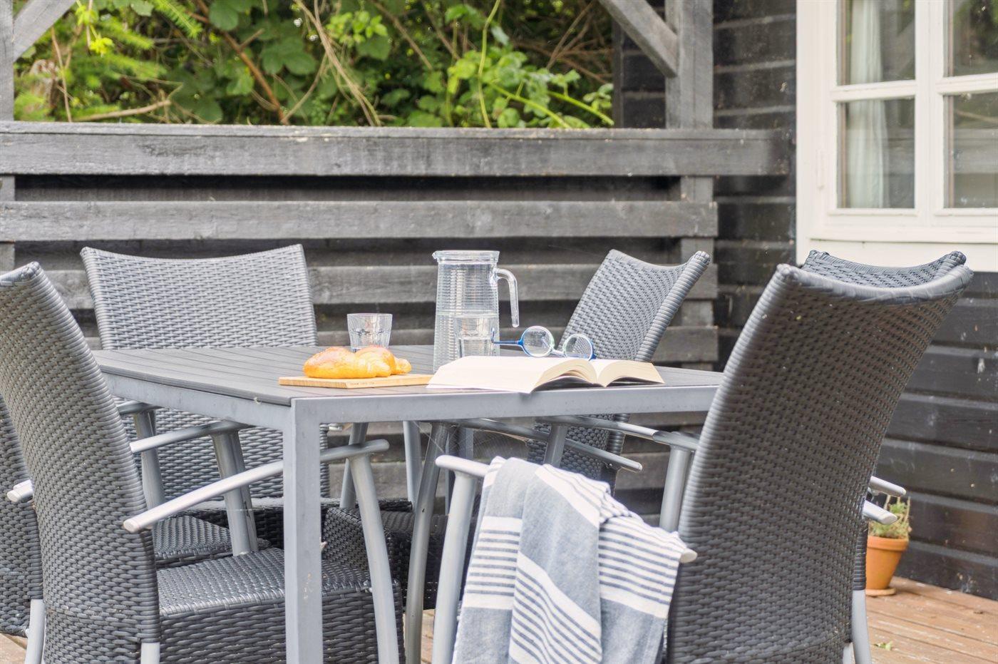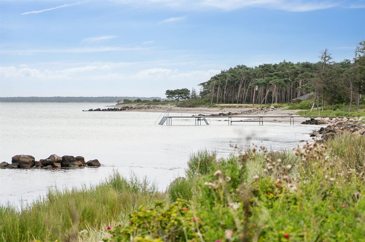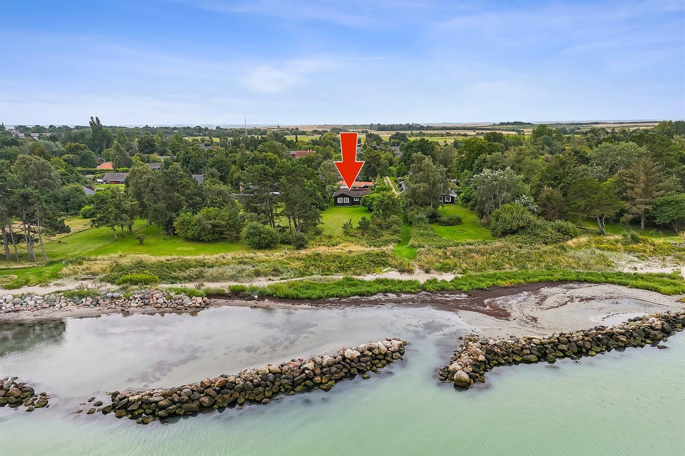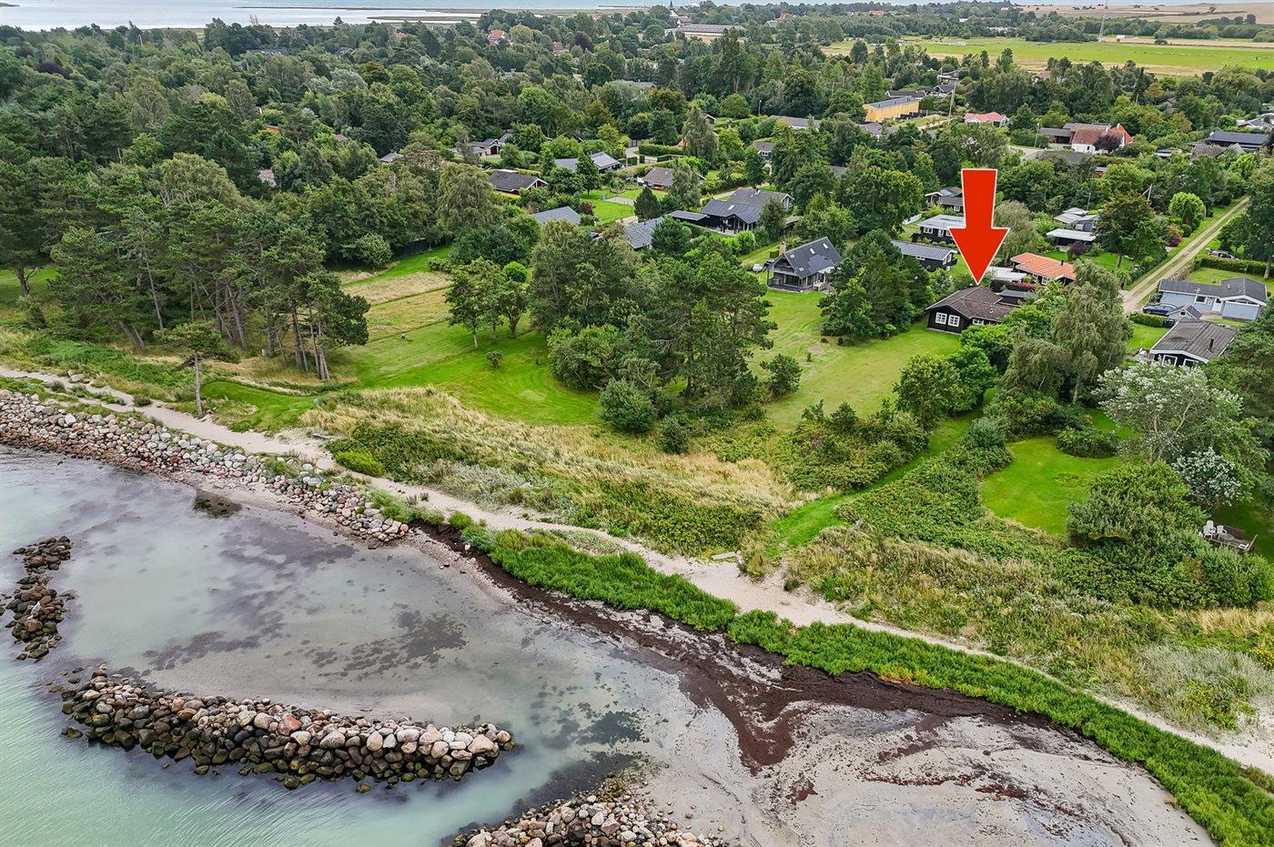 Ferieboligen er beliggende på en 1344 m² stor havegrund. Der er 25 m til havet. Nærmeste forretning er beliggende i en afstand af 7500 m. Der er en golfbane i en afstand af 22300 m. Til ferieboligen hører 37 m² terrasseareal. Desuden er der 9 m² overdækket terrasse. Grill til rådighed. Parkering ved ferieboligen.