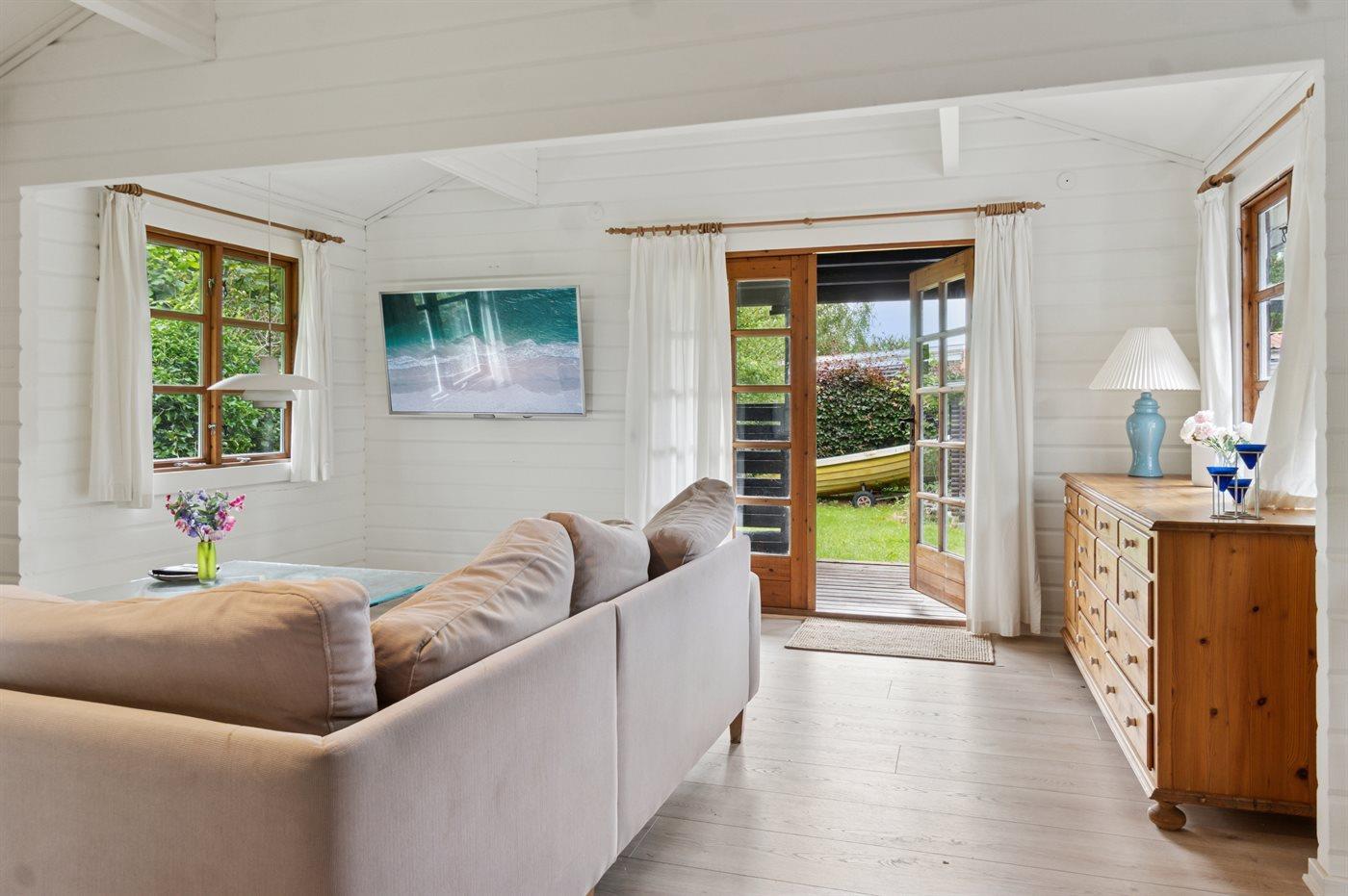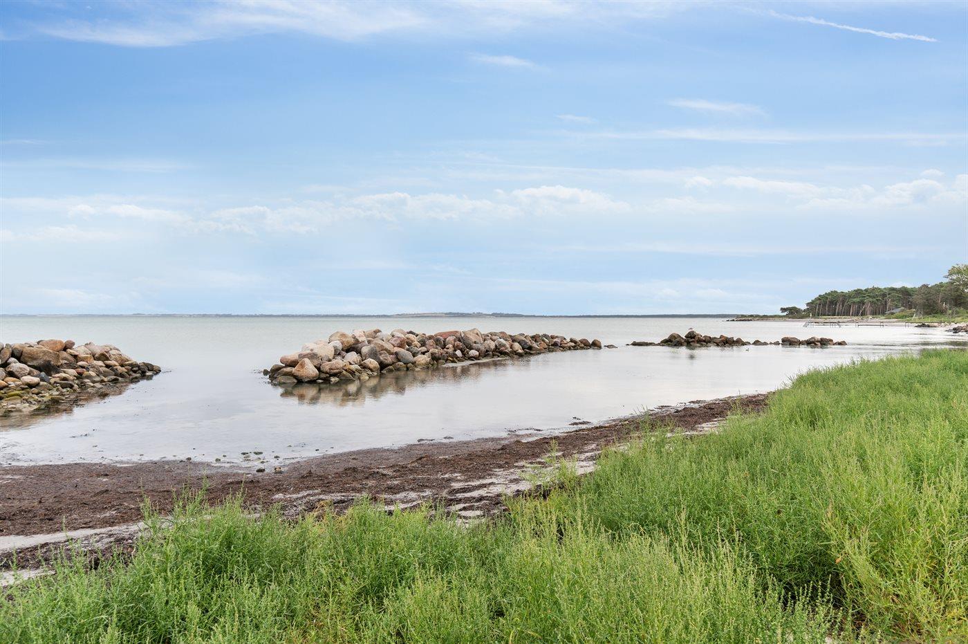 Charmerende bjælkesommerhus på Reersø med direkte adgang til børnevenlig sandstrand og smuk havudsigt.