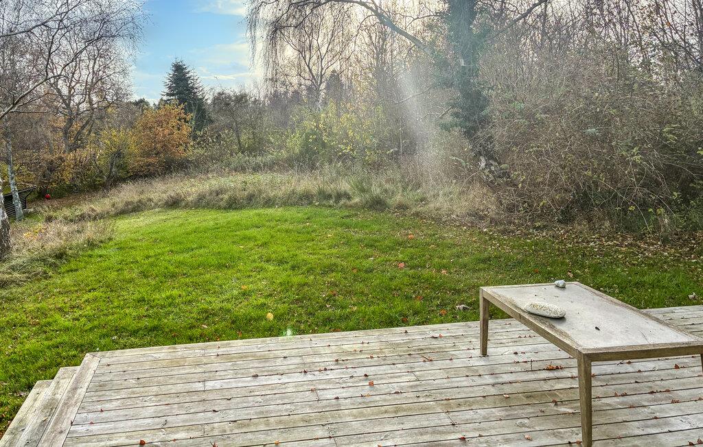 Træterrassen med siddeområder og overdækket område tilbyder rigelig plads til afslapning udendørs. Nyd udsigten over haven eller bliv hængende på terrassen, som tilbyder et smukt panorama over de omkringliggende huse og endda vandet. Følg den lille havesti ned til kanten af ??ejendommen og oplev nærheden til naturen.