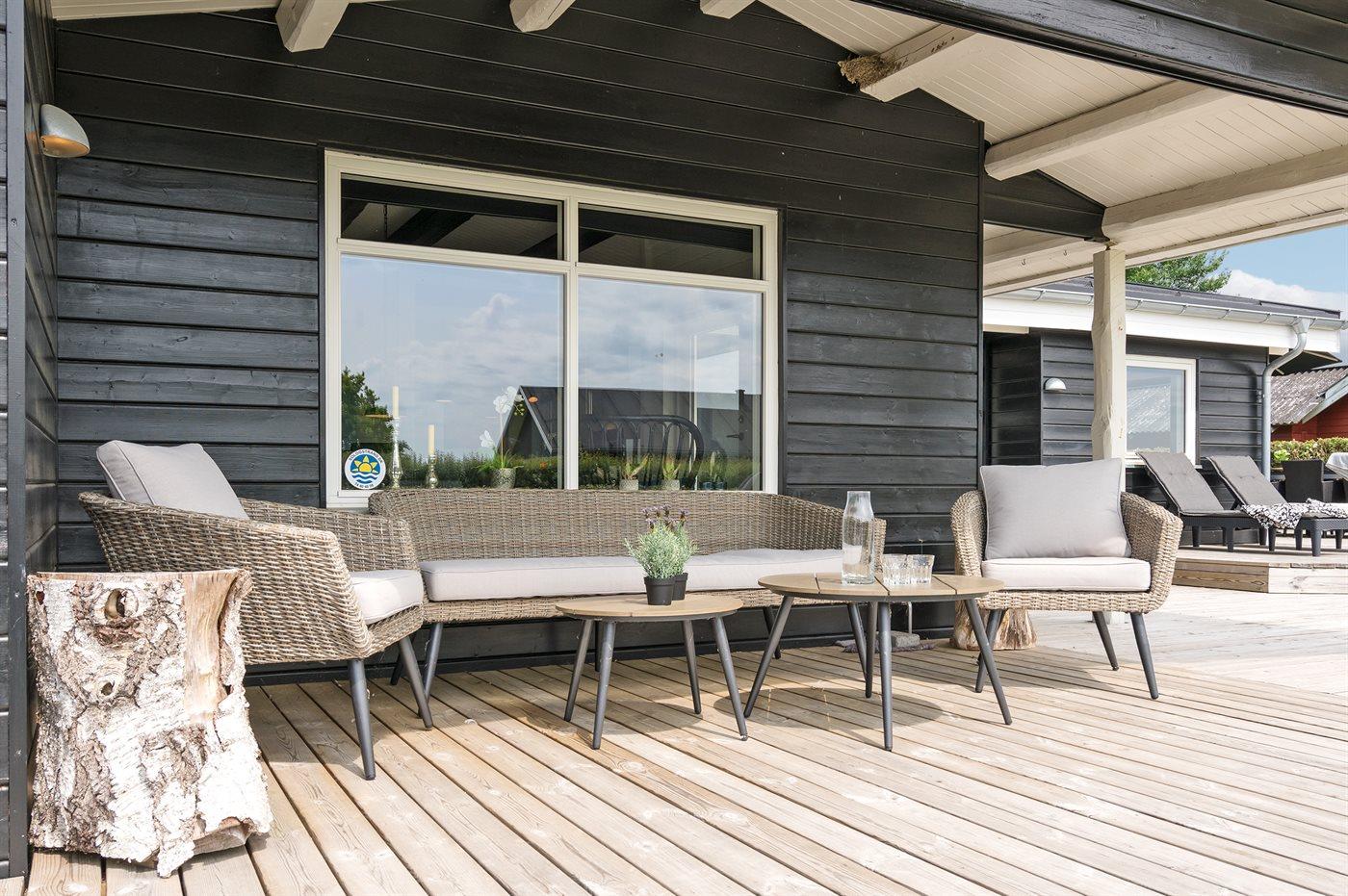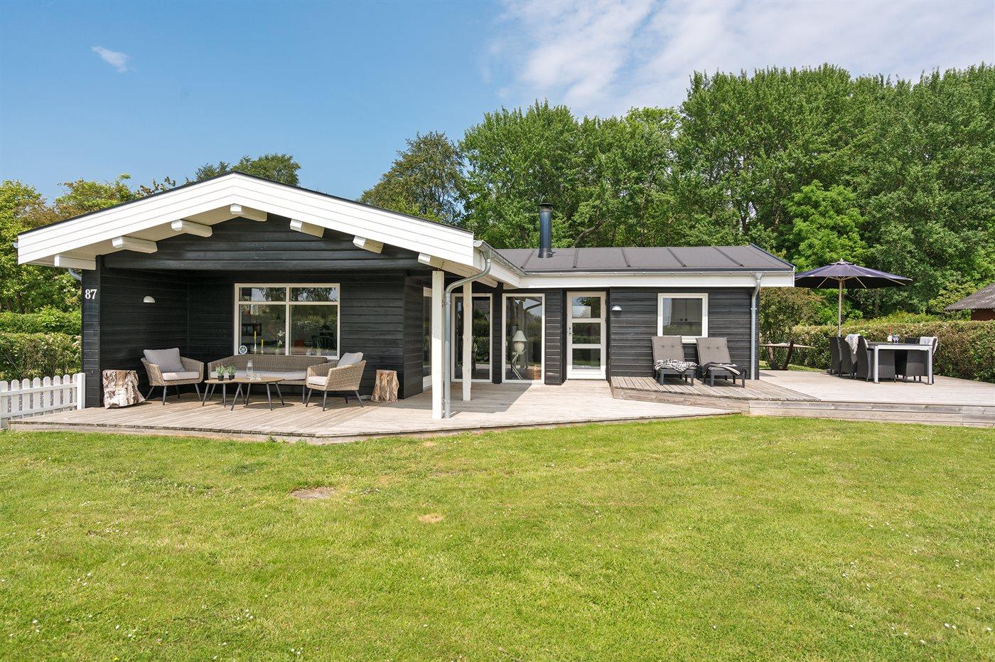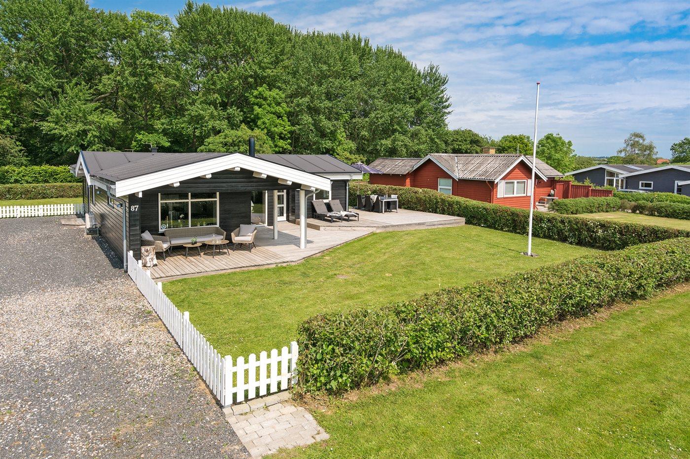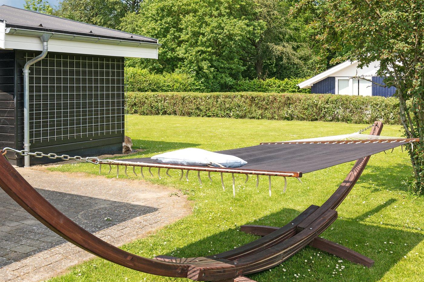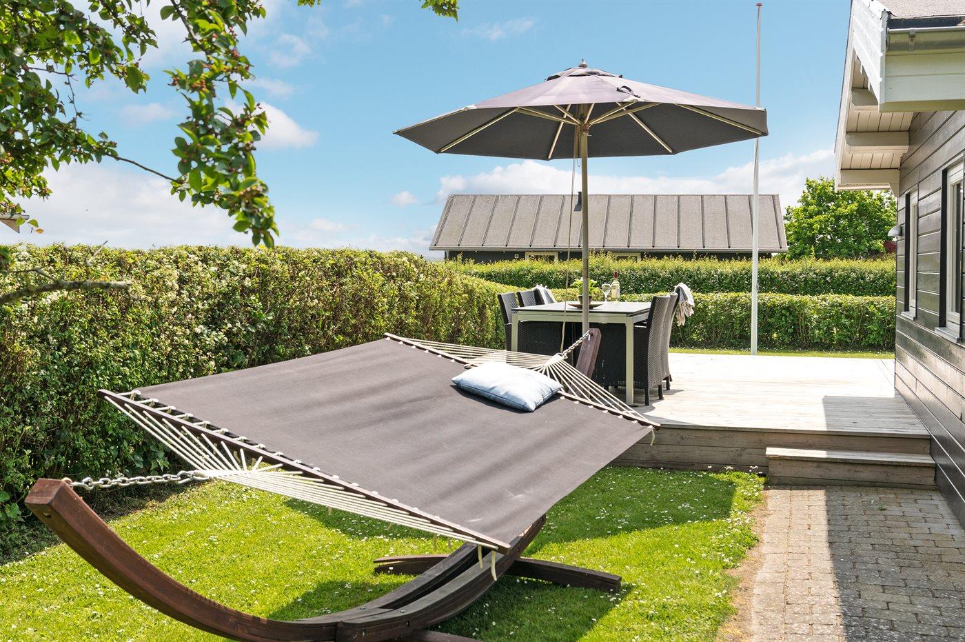 Ferieboligen er beliggende på en 803 m² stor havegrund. Der er 400 m til fjorden. Nærmeste forretning er beliggende i en afstand af 3400 m. Til ferieboligen hører 40 m² terrasseareal. Desuden er der 8 m² overdækket terrasse. Grill til rådighed. Parkering ved ferieboligen.