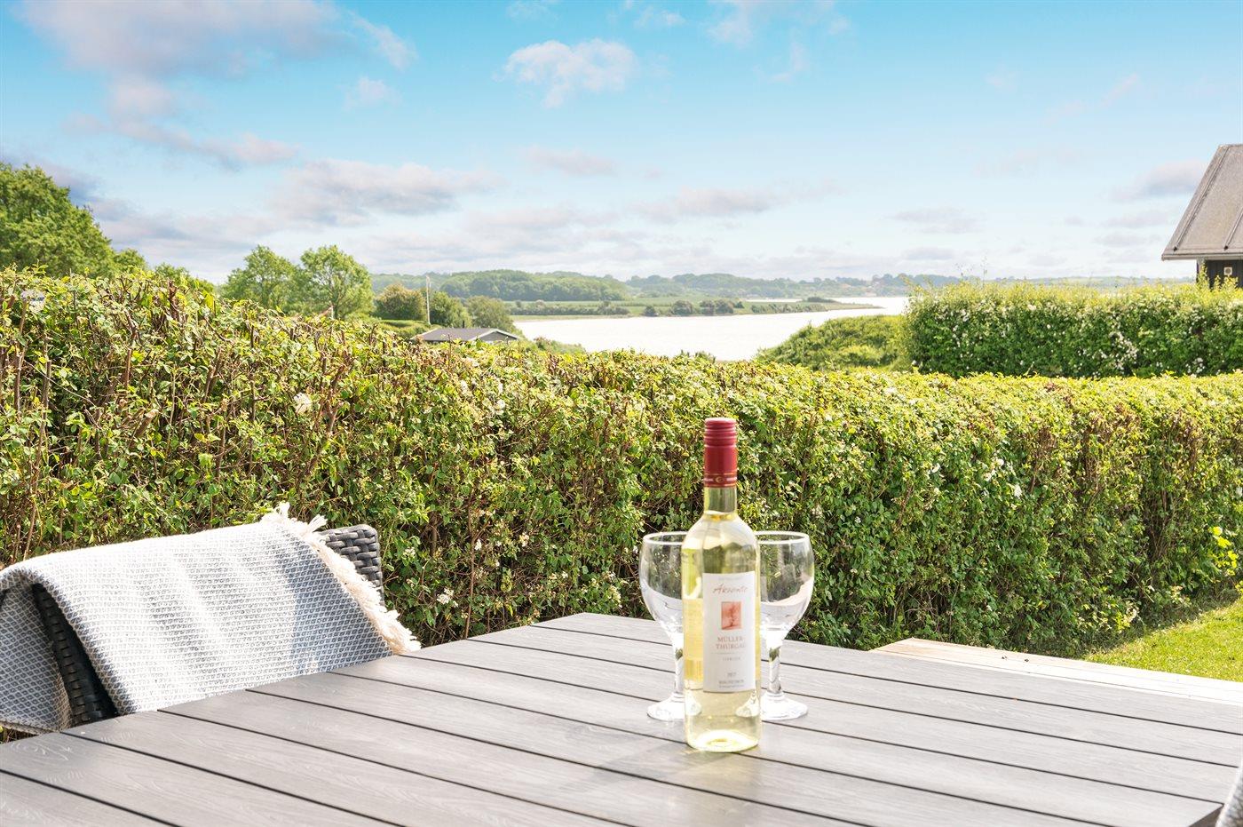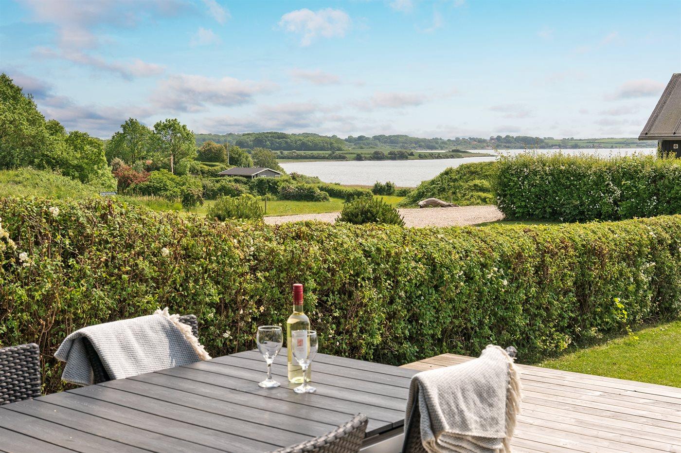 Totalrenoveret sommerhus ved Flensborg fjord med stor terrasse og udsigt, perfekt til familier eller grupper.