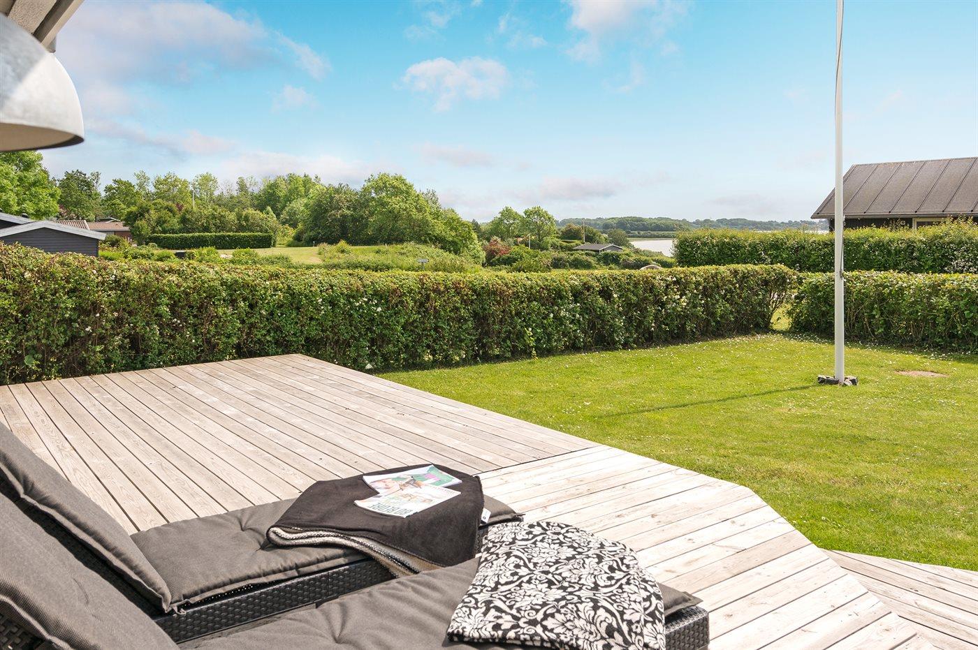 Et totalrenoveret sommerhus ved Flensborg fjord. Til huset hører en dejlig stor træterrasse, hvorfra der er udsigt over Flensborg fjord. Huset er i 2017 blevet gennemgribende og professionelt renoveret med bl.a. gulvarme i fliseområdet ved køkken og bad. Huset er indrettet med 4 soveværelser, 2 badeværelser samt en dejlig stor stue med åbent køkken og er således egnet til såvel 1 som 2 familier.