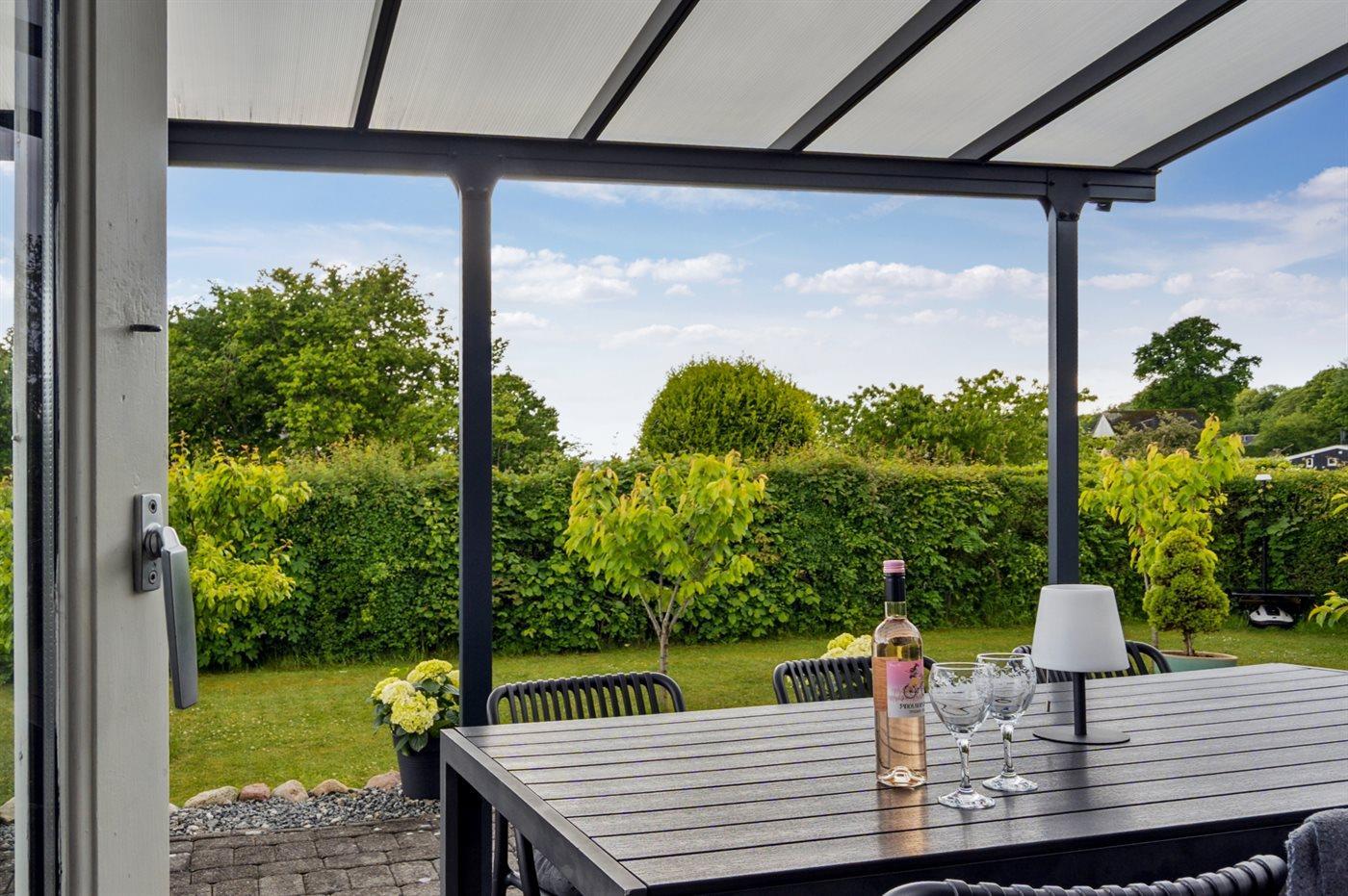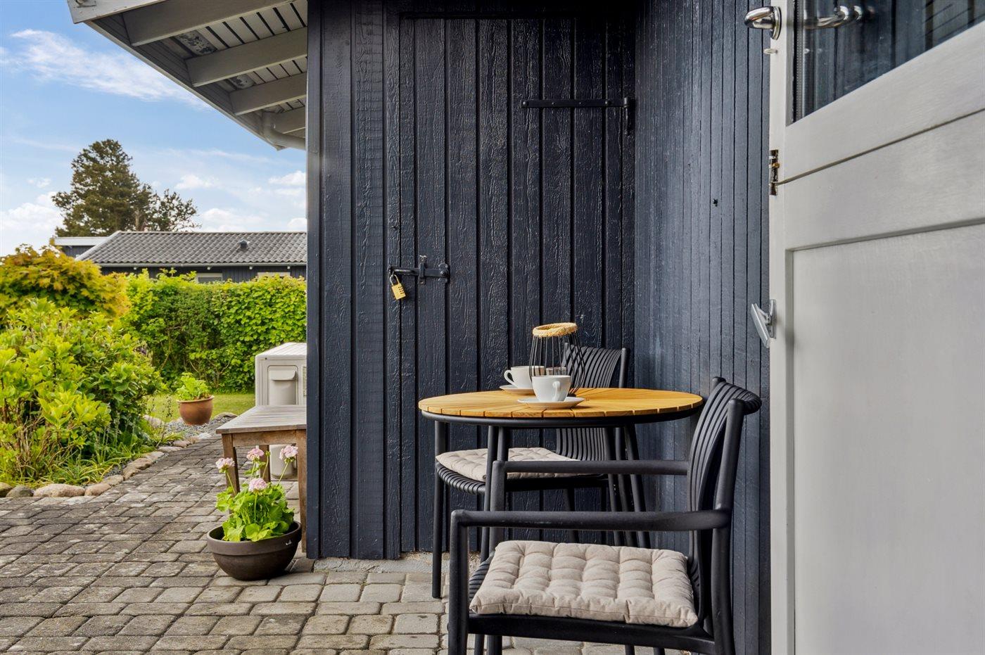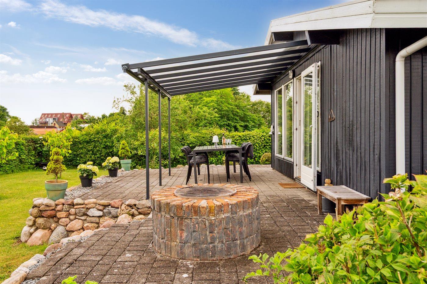 Den velholdte have byder på et terrasseområde, som er delvist overdækket. Der er hyggelige, rolige hjørner til læsning, afslapning og selvfølgelig til at spise sammen udendørs. To kulgrill er tilgængelige til dette formål.