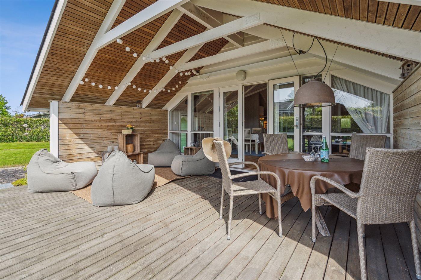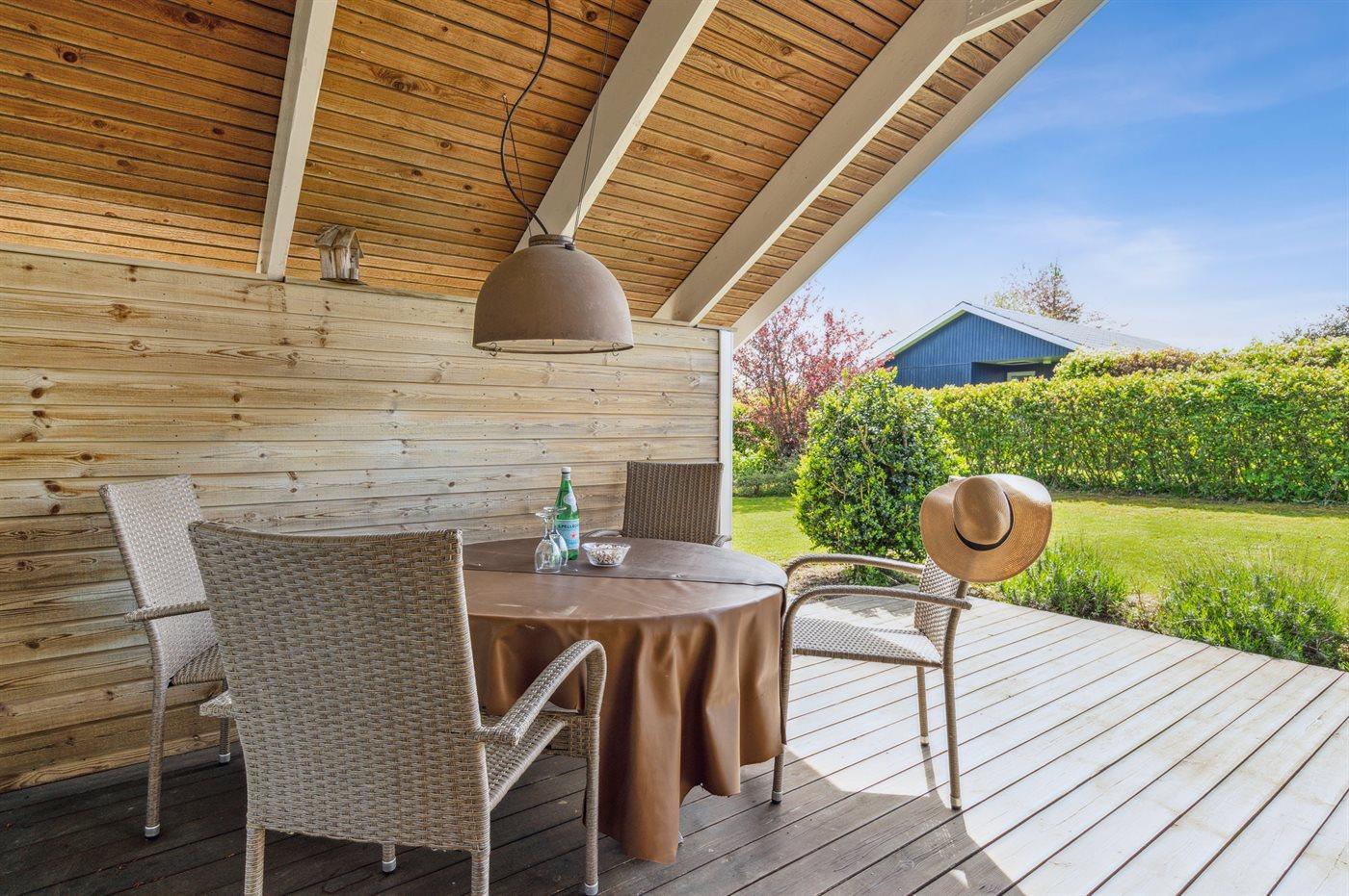 Ferieboligen er beliggende på en 800 m² stor naturgrund. Der er 500 m til havet. Nærmeste forretning er beliggende i en afstand af 3000 m. Der er en golfbane i en afstand af 14000 m. Til ferieboligen hører åbent og 15 m2 overdækket terrasseareal. Der er redskabsrum. Sandkasse. Fodboldmål. Grill til rådighed. Der er installeret stik til opladning af elbil. Type 2 stik. Med 11 kW ladeeffekt. Parkering ved ferieboligen.