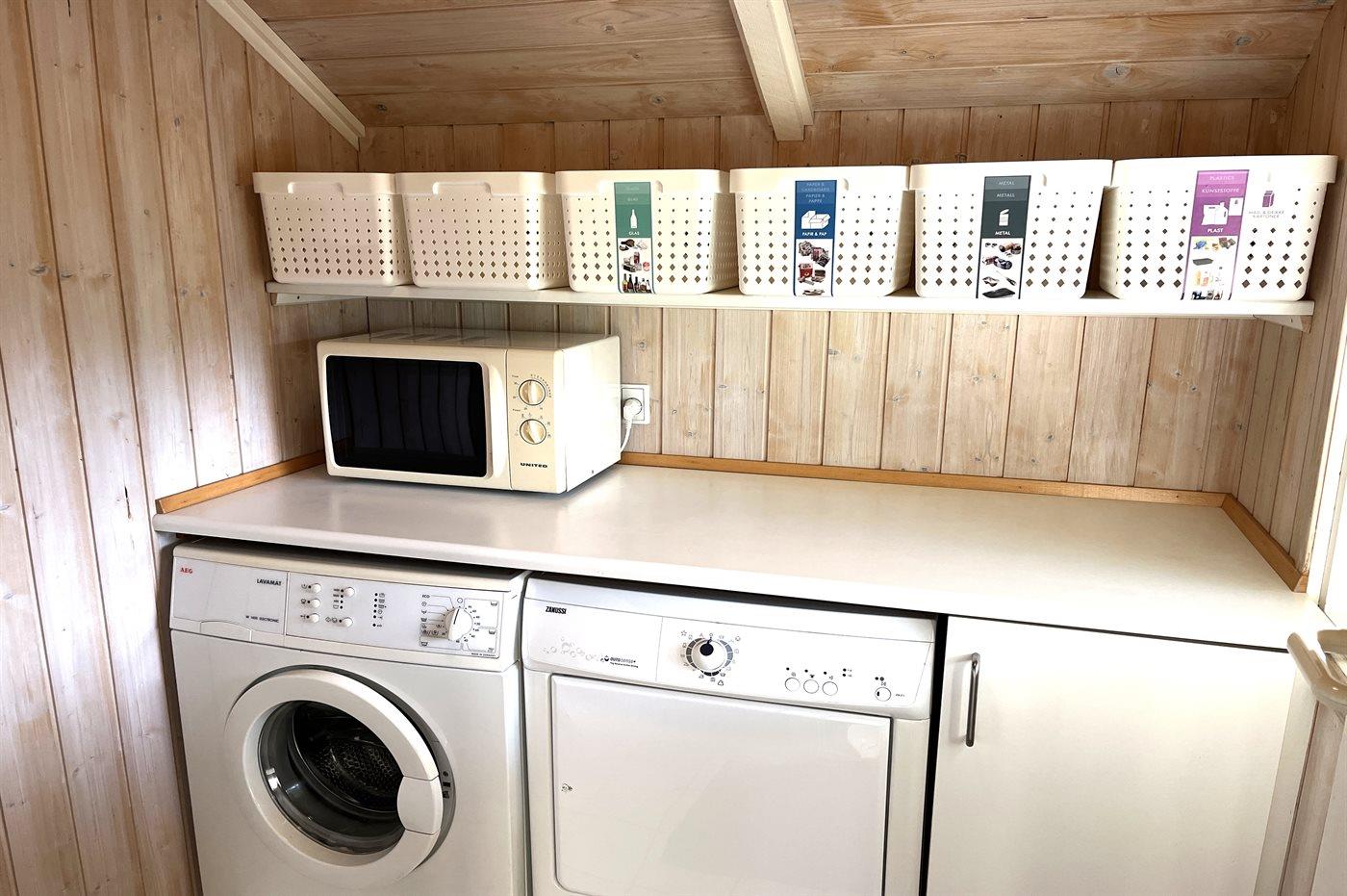 Køkkenet er udstyret med 1 køleskab. Der er 4 induktionskogeplader, varmluftovn, mikrobølgeovn samt opvaskemaskine.