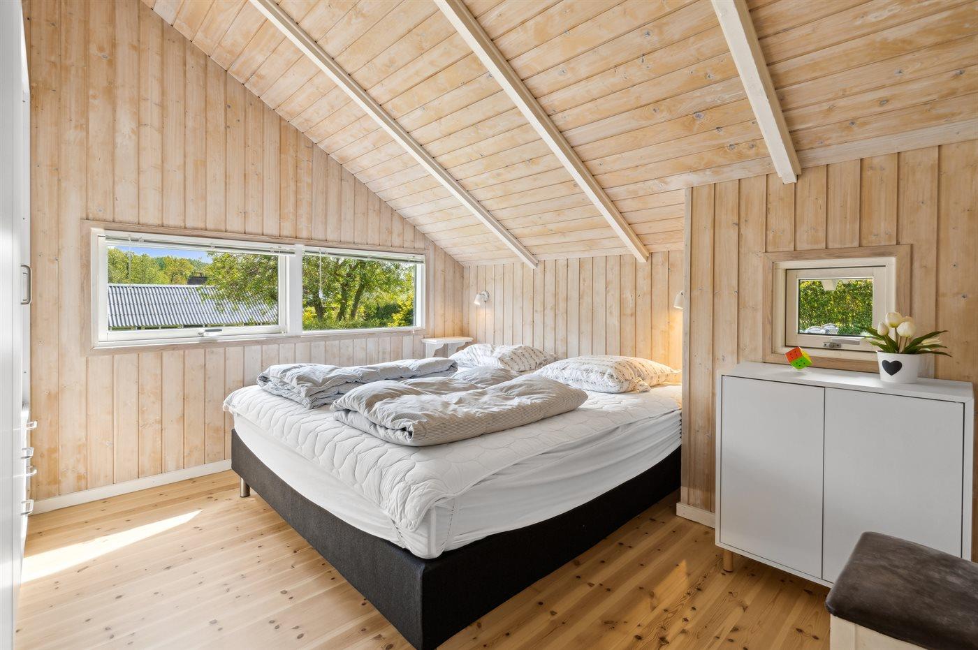 Der er i alt 3 soveværelser. Sovepladserne fordeler sig på: 4 sovepladser i dobbeltsenge. 2 sovepladser i køjeseng. Derudover er der 1 stk. barneseng.