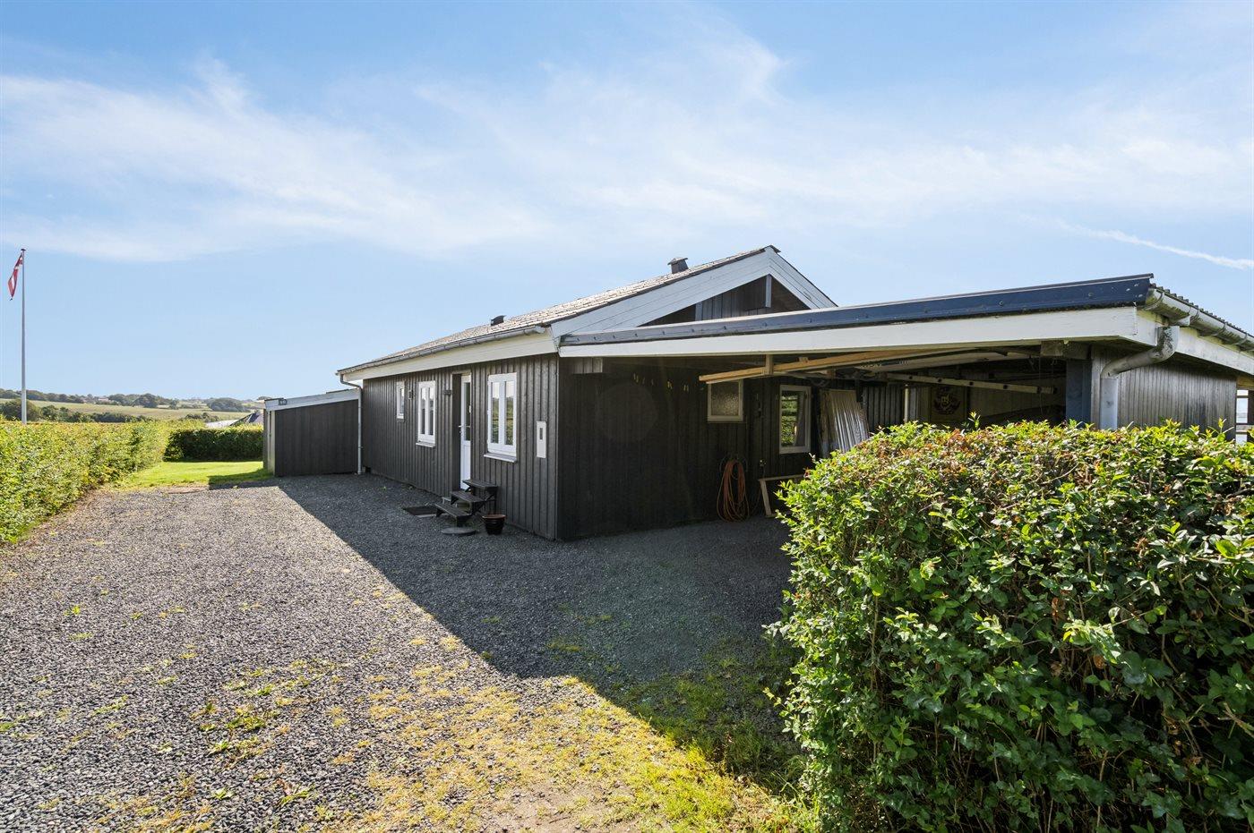 Ferieboligen er beliggende på en 980 m² stor havegrund. Der er 200 m til havet. Nærmeste forretning er beliggende i en afstand af 4000 m. Der er en golfbane i en afstand af 3000 m. Til ferieboligen hører åbent terrasseareal. Desuden er der overdækket terrasse. Der er redskabsrum. Grill til rådighed. Parkering ved ferieboligen.