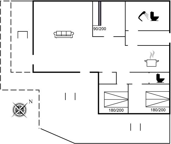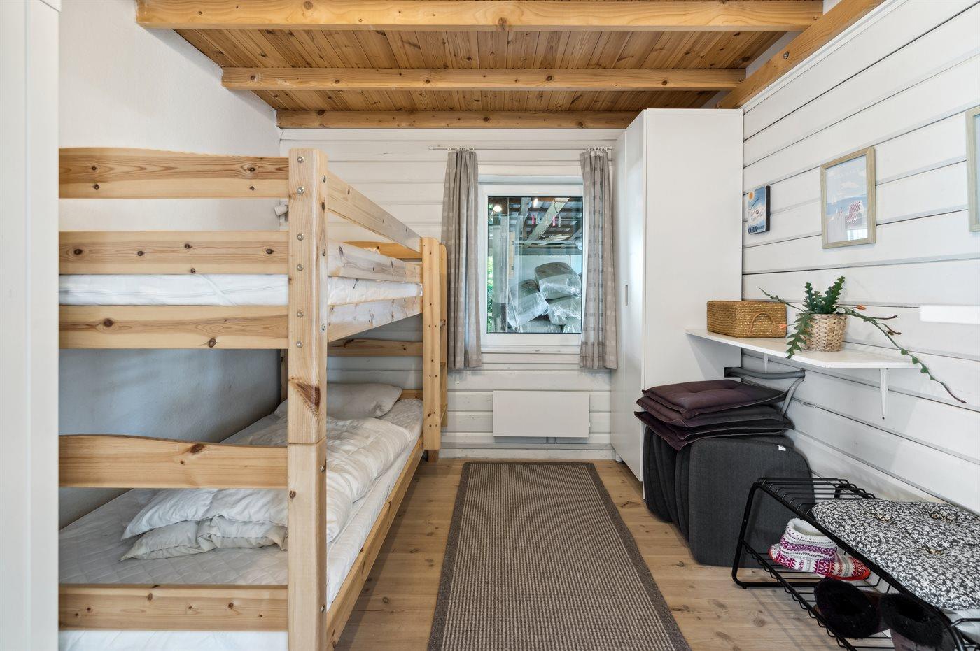 Der er i alt 3 soveværelser. Sovepladserne fordeler sig på: 4 sovepladser i dobbeltsenge. 2 sovepladser i køjeseng. Derudover er der 1 stk. barneseng.