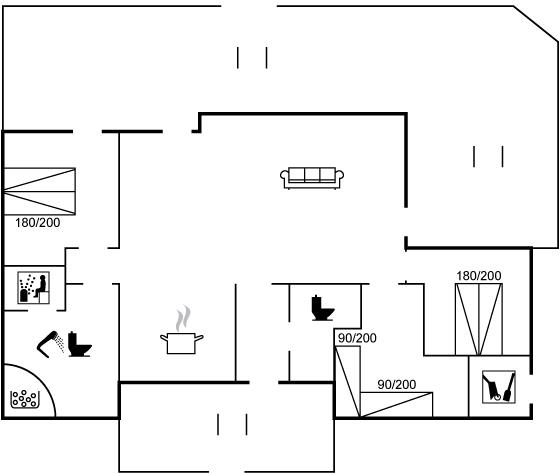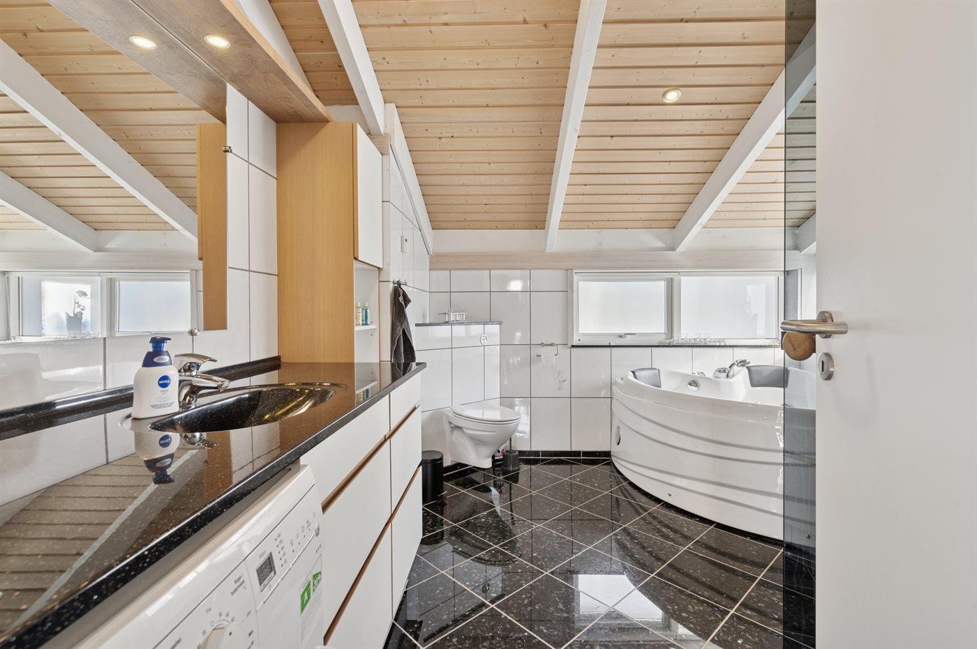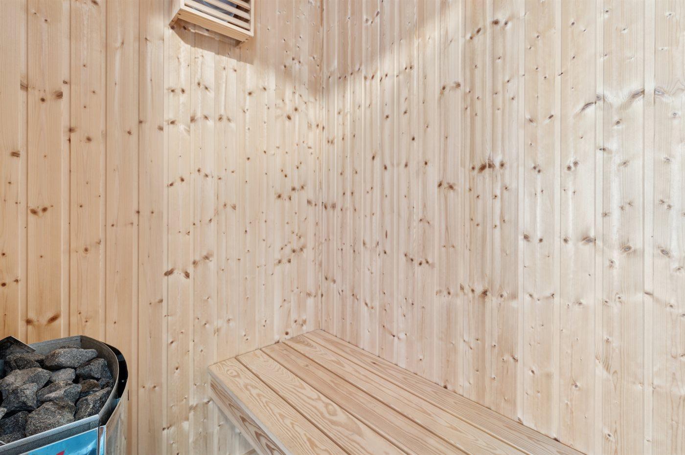 Der er 1 badeværelse med bruseniche og 2 toiletter, heraf 1 gæstetoilet. Der er gulvvarme på 1 badeværelse. I saunaen er der mulighed for afslapning.