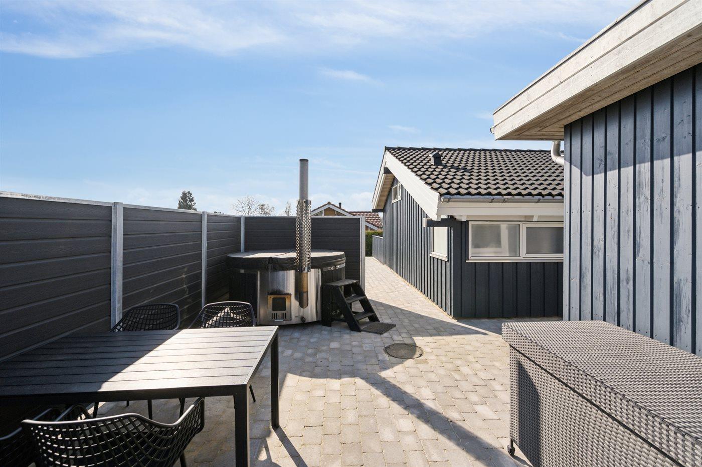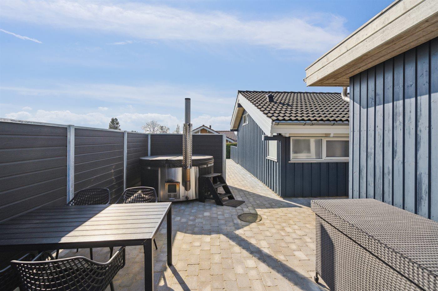 Ferieboligen er beliggende på en 801 m² stor havegrund. Der er 200 m til havet. Nærmeste forretning er beliggende i en afstand af 4000 m. Der er en golfbane i en afstand af 17000 m. Til ferieboligen hører åbent terrasseareal. Desuden er der overdækket terrasse. Der er redskabsrum. Grill til rådighed. Parkering ved ferieboligen.