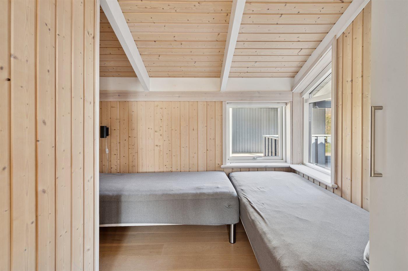 Der er i alt 3 soveværelser. Sovepladserne fordeler sig på: 4 sovepladser i dobbeltsenge. 2 sovepladser i enkeltsenge. 2 sovepladser på madrasser. 2 af disse sovepladser befinder sig på husets hems. Derudover er der 1 stk. barneseng.