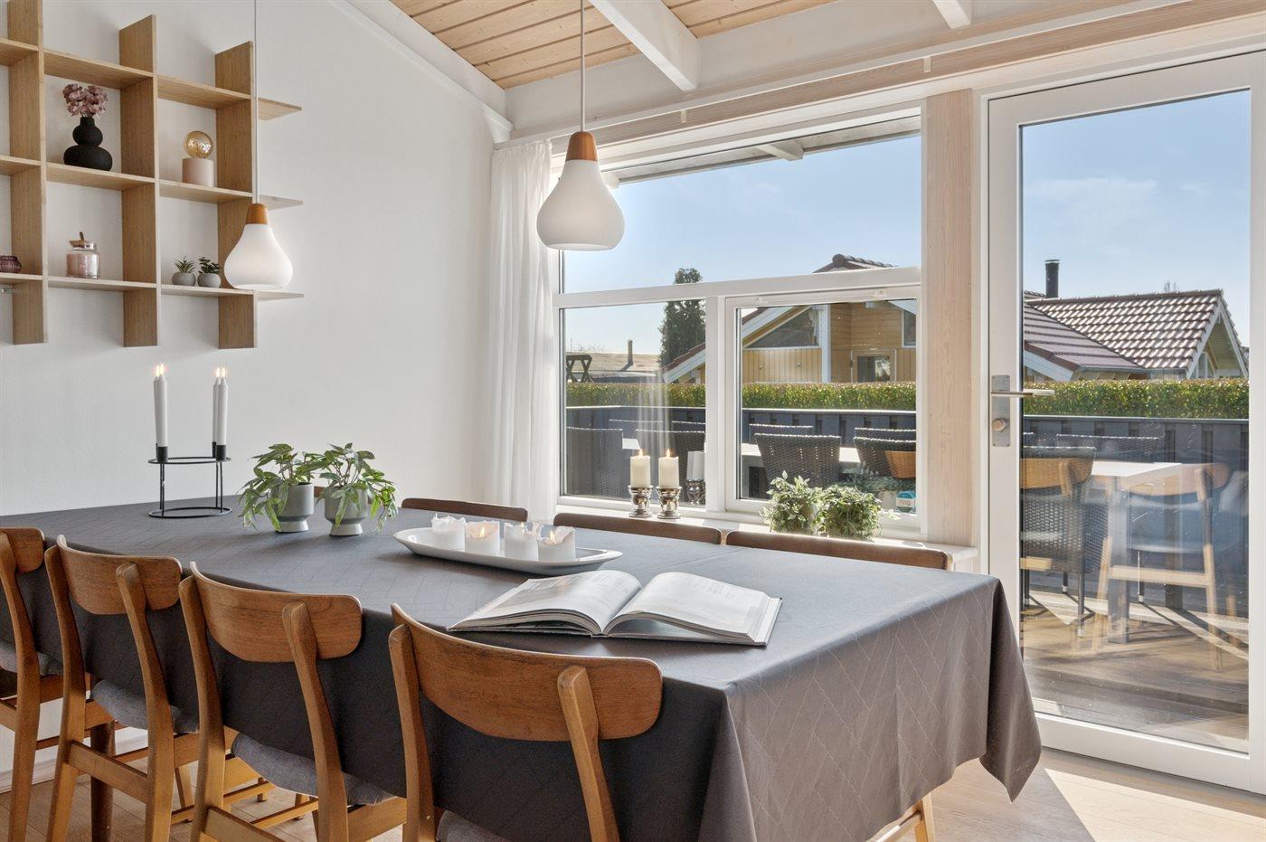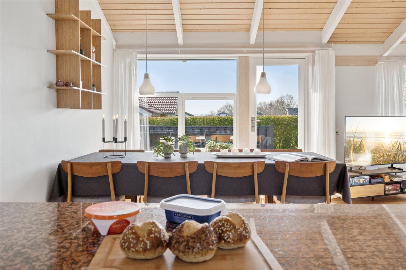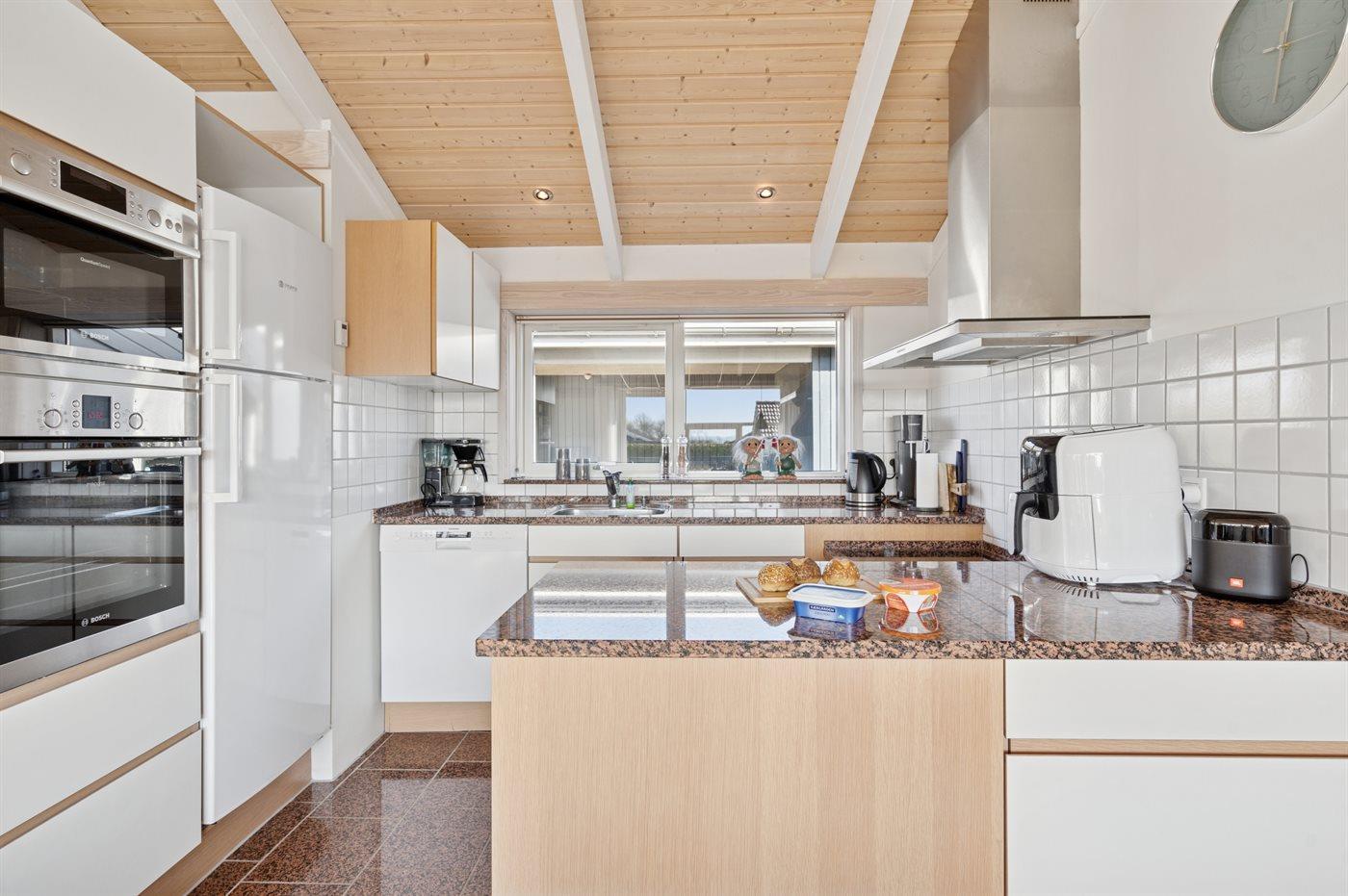Køkkenet er udstyret med 1 køleskab. Der er 4 keramiske kogeplader, varmluftovn, mikrobølgeovn, Airfryer samt opvaskemaskine.