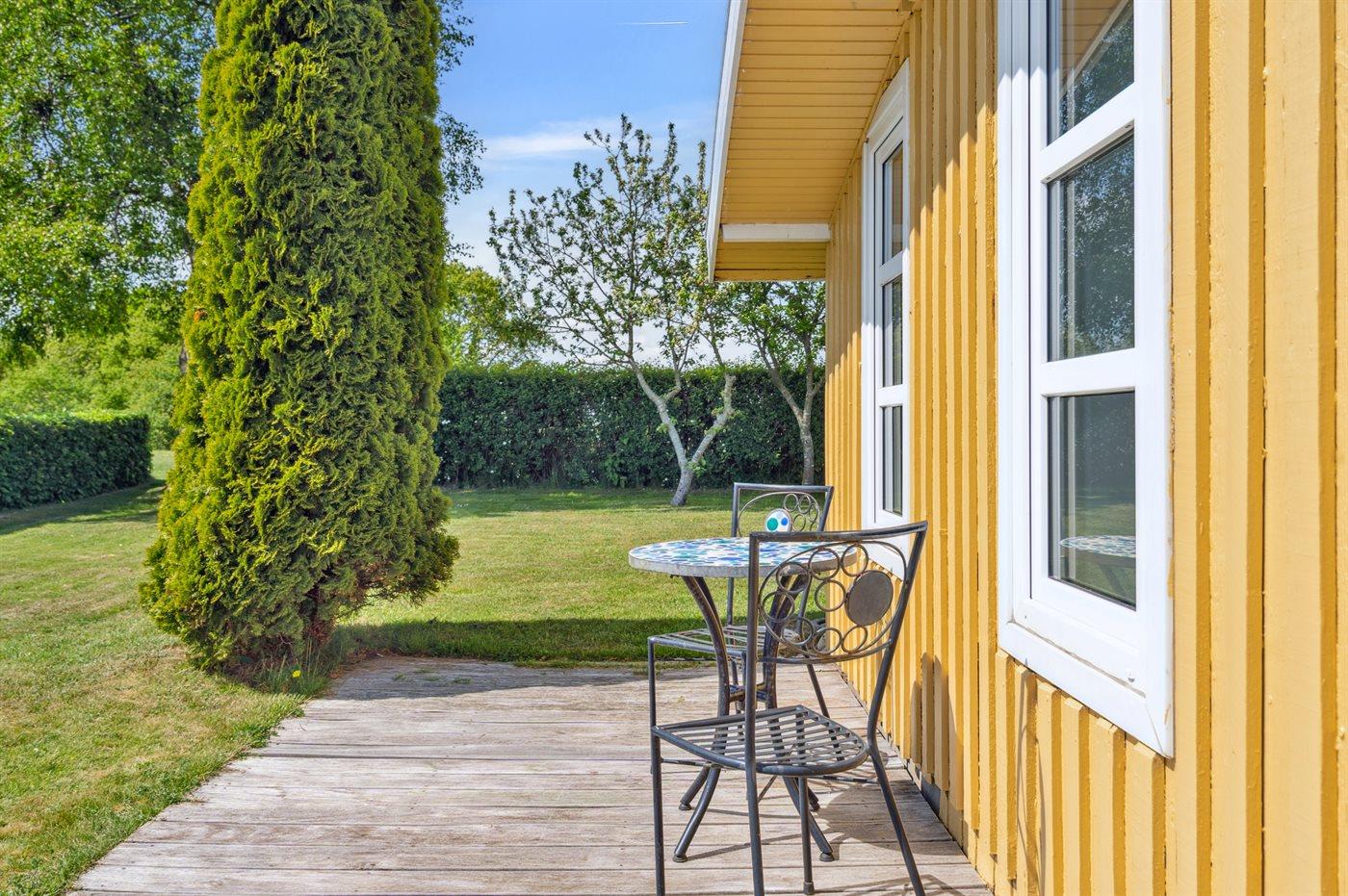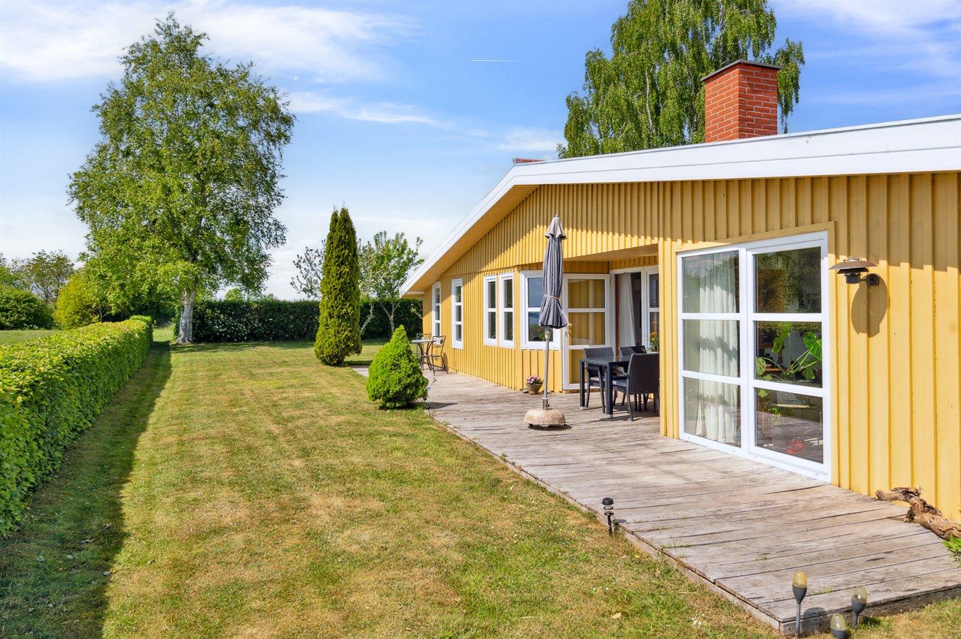 Ferieboligen er beliggende på en 800 m² stor havegrund. Der er 200 m til havet. Til ferieboligen hører åbent terrasseareal. Desuden er der overdækket terrasse. Grill til rådighed. Der er carport til rådighed. Parkering ved ferieboligen.