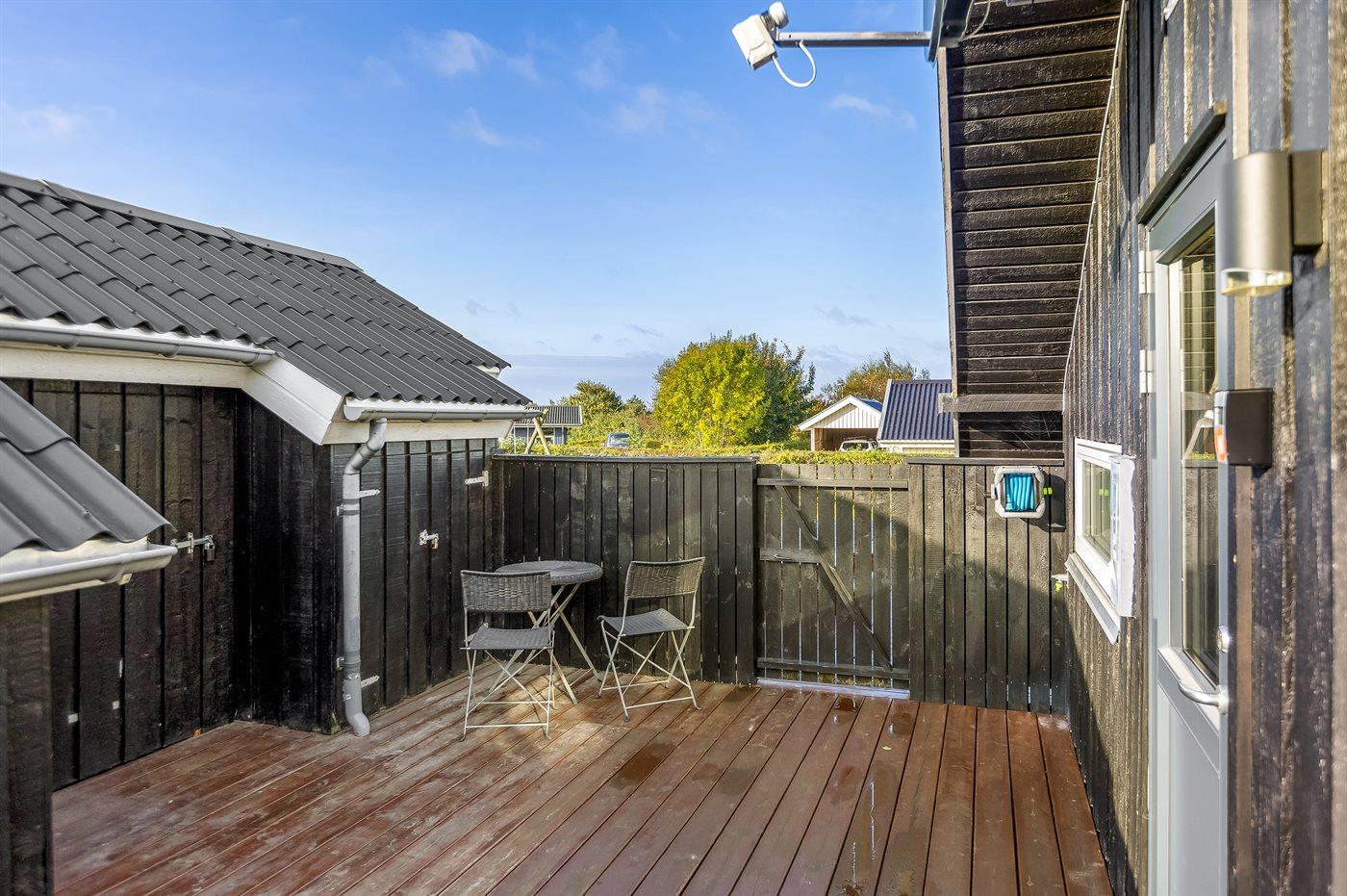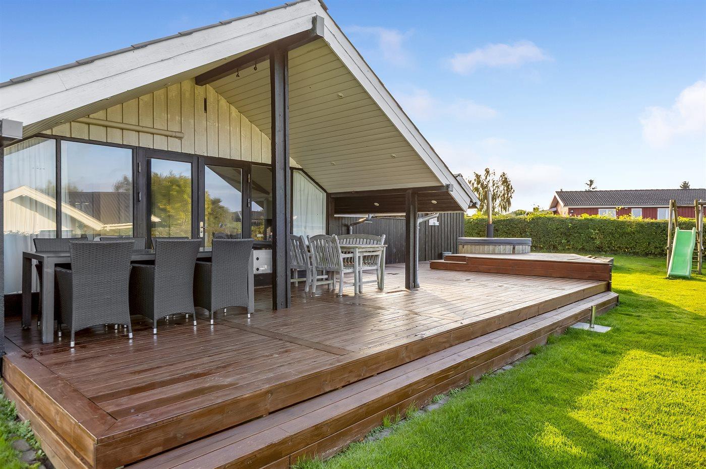 Ferieboligen er beliggende på en 800 m² stor havegrund. Der er 200 m til havet. Nærmeste forretning er beliggende i en afstand af 4000 m. Der er en golfbane i en afstand af 10000 m. Til ferieboligen hører åbent terrasseareal. Desuden er der overdækket terrasse. Gynge. Sandkasse. Der ligger en legeplads i en afstand af 800 m. Grill til rådighed. Parkering ved ferieboligen.
