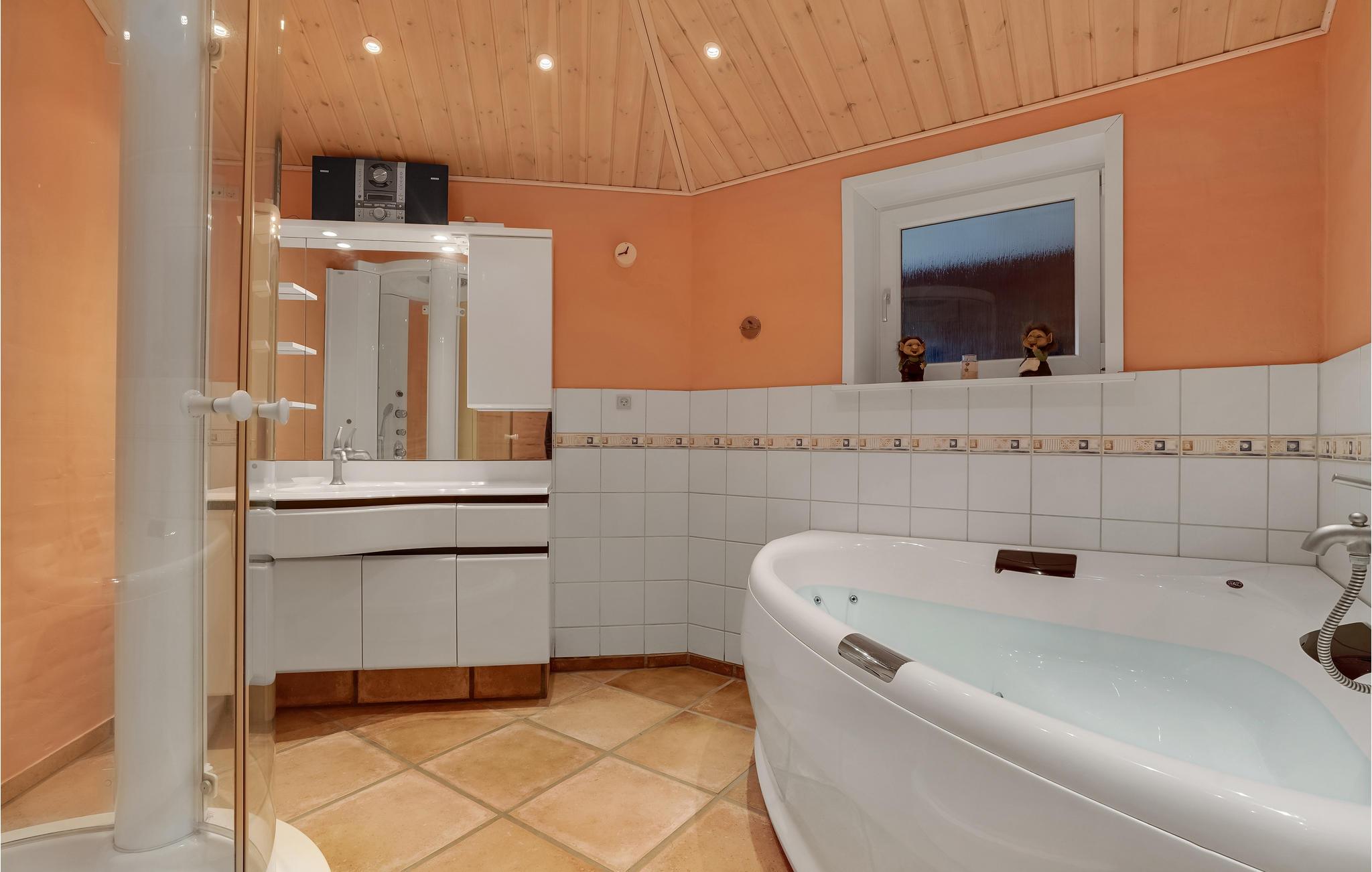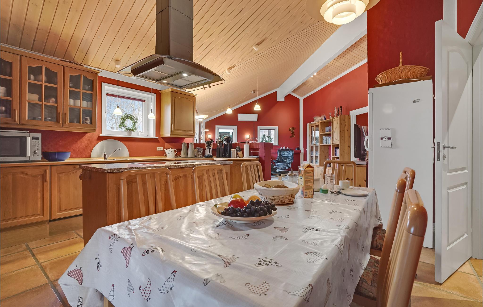 Det charmerende hus byder jer velkommen i en smuk beliggenhed nær stranden. De hyggelige værelser med varme farver danner de ideelle rammer for en hyggelig ferie i en hjemlig atmosfære. Nyd måltider i opholdsstuen. Om aftenen inviterer stuen med behagelige siddepladser til en film- eller spilleaften, her kan I nyde hinandens selskab i mange timer. Udfordr de andre familiemedlemmer til et spil bordtennis i garagen. Nyd solen i haven, mens jeres børn leger. Afslut dagen med lækker grillmad på terrassen, hvorfra I kan se skibstrafikken på Flensborg Fjord, og nyde de lange sommeraftener.