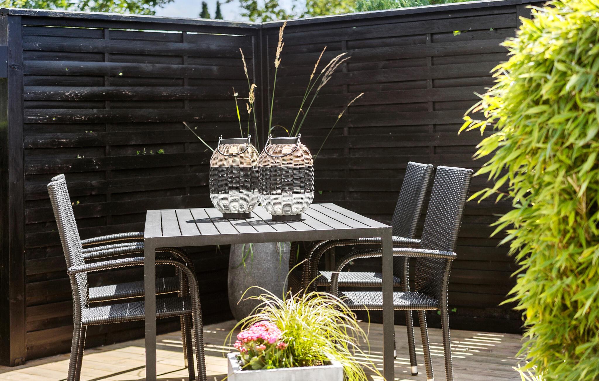 På de varme dage kan I trække ud på en af terrasserne og finde sol, skygge og læ efter behov i løbet af dagen. Hvis vejret holder hele dagen, kan I købe lidt godt med hjem til grillen og lade aftenen gå på hæld med gode bøffer under aftensolen, mens I lægger planer for de kommende dage.