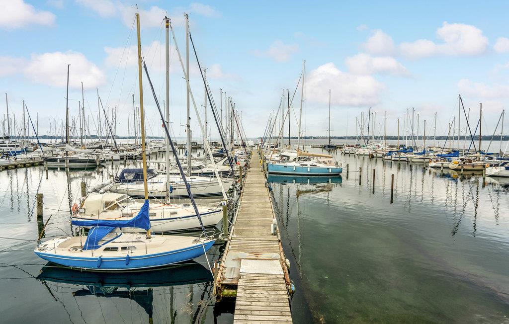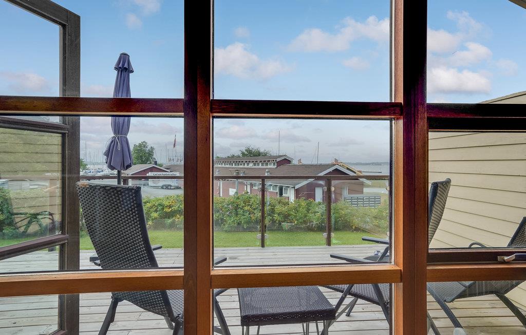 Flot feriehus ved Marina Minde med panoramaudsigt over Flensborg Fjord og direkte adgang til Gendarmstien.