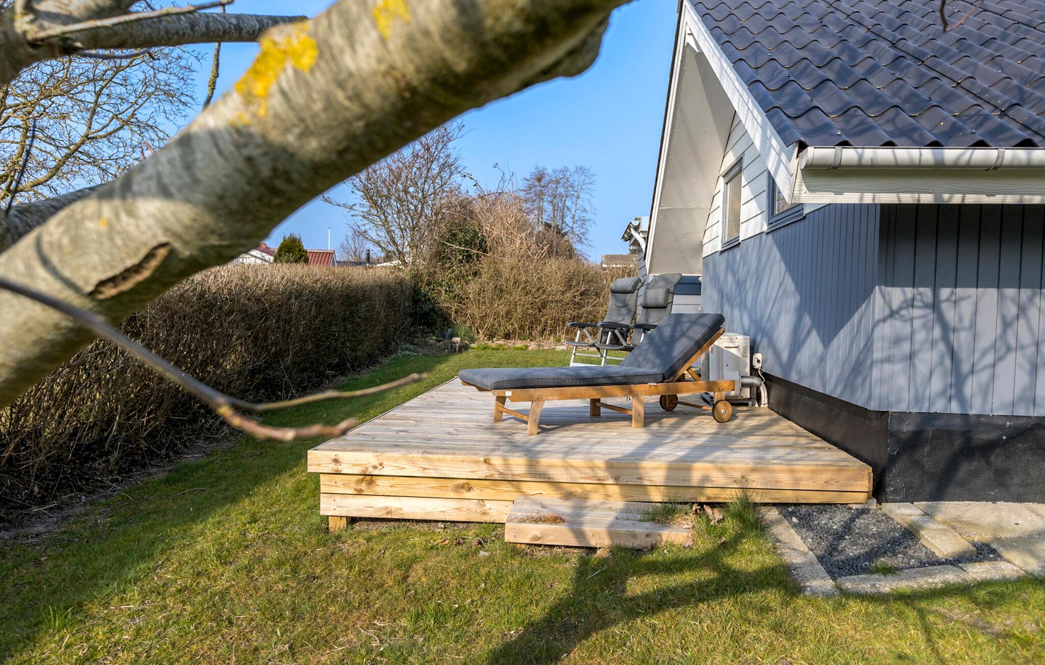 Hyggeligt sommerhus tæt på havet med to træterrasser og smuk udsigt over Broagers natur.