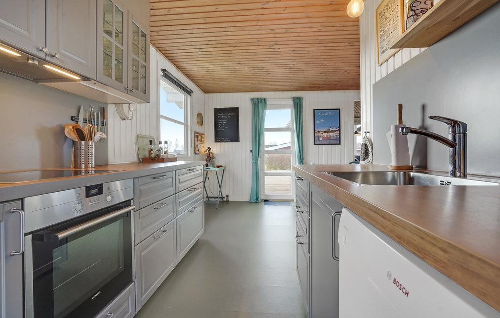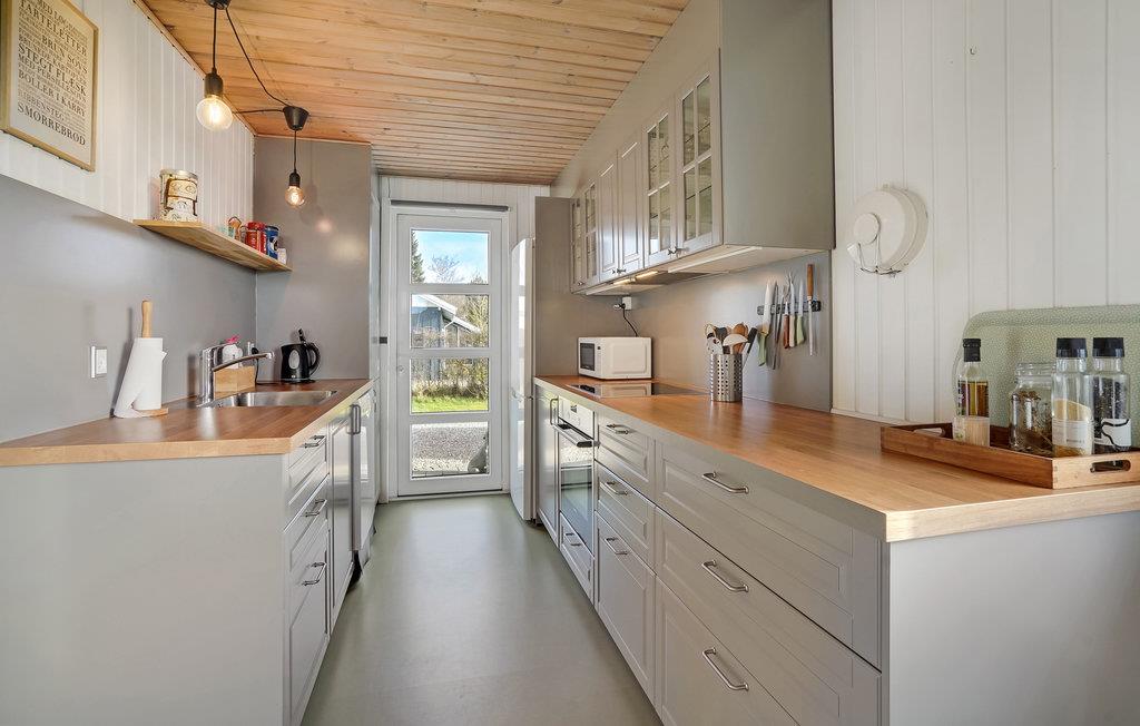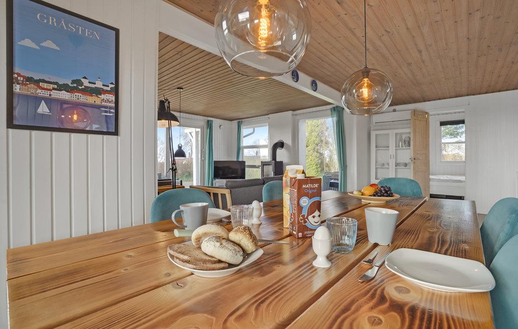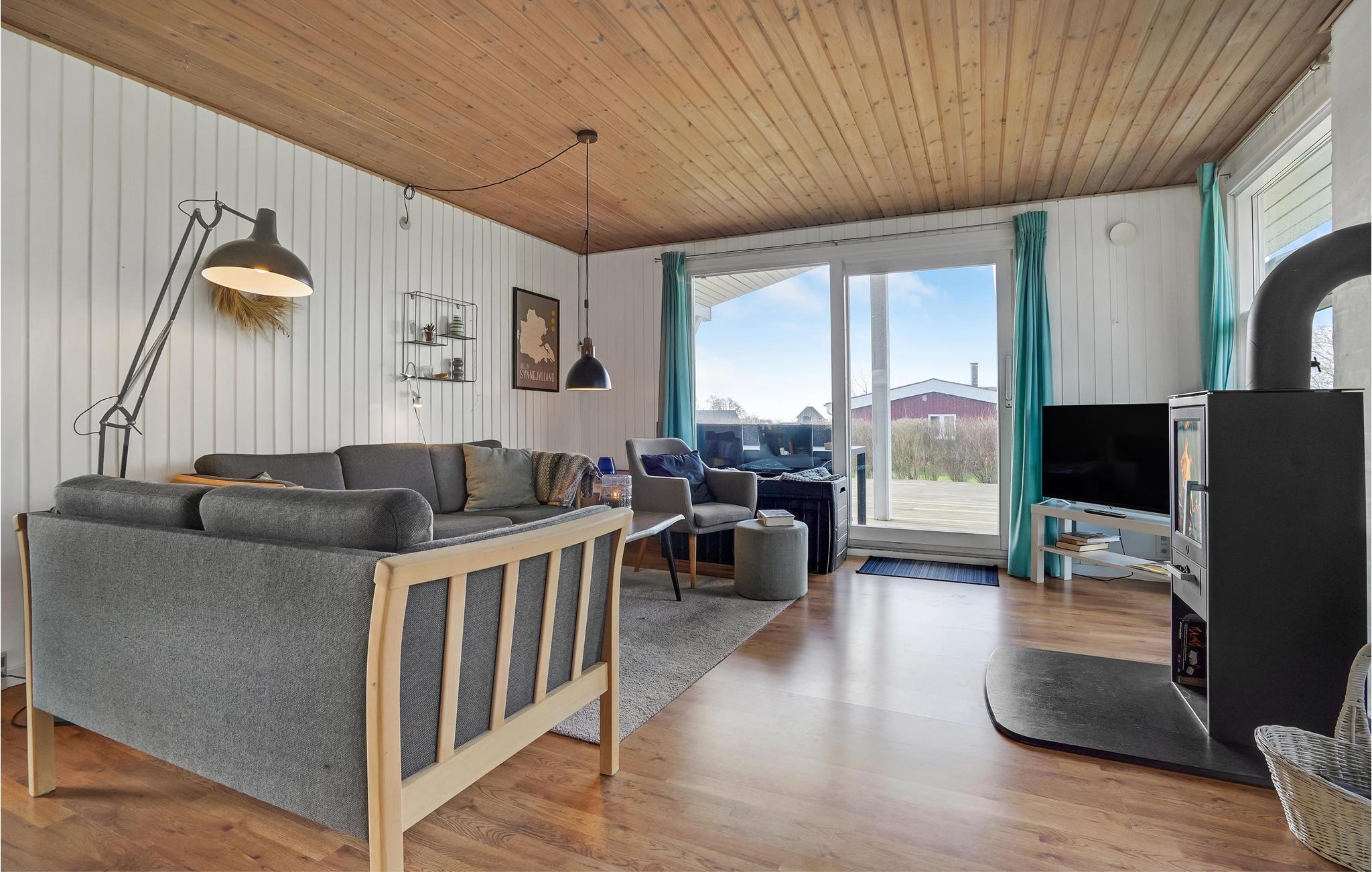 Dette feriehus er beliggende i det rolige område ved Rendbjerg Strand. Fra huset er der kort afstand til Flensborg Fjord. Husets åbne køkken er beliggende i forbindelse med spiseafdelingen og stuen. I stuen er der en brændeovn, som I kan benytte på de kølige dage og aftener. Til huset er der flere dejlige terrasseområder, hvoraf en er overdækket.