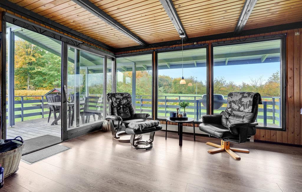 Hyggeligt feriehus nær Flensborg Fjord med terrasse, internet og plads til 8 personer i smukke naturomgivelser.