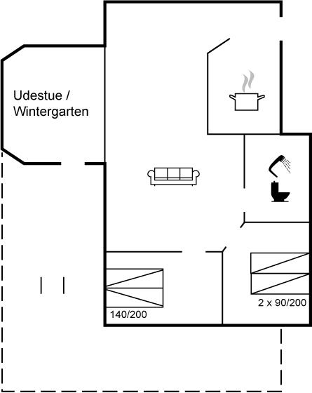 Der er i alt 2 soveværelser. Sovepladserne fordeler sig på: 2 sovepladser i dobbeltseng. 2 sovepladser i enkeltsenge.