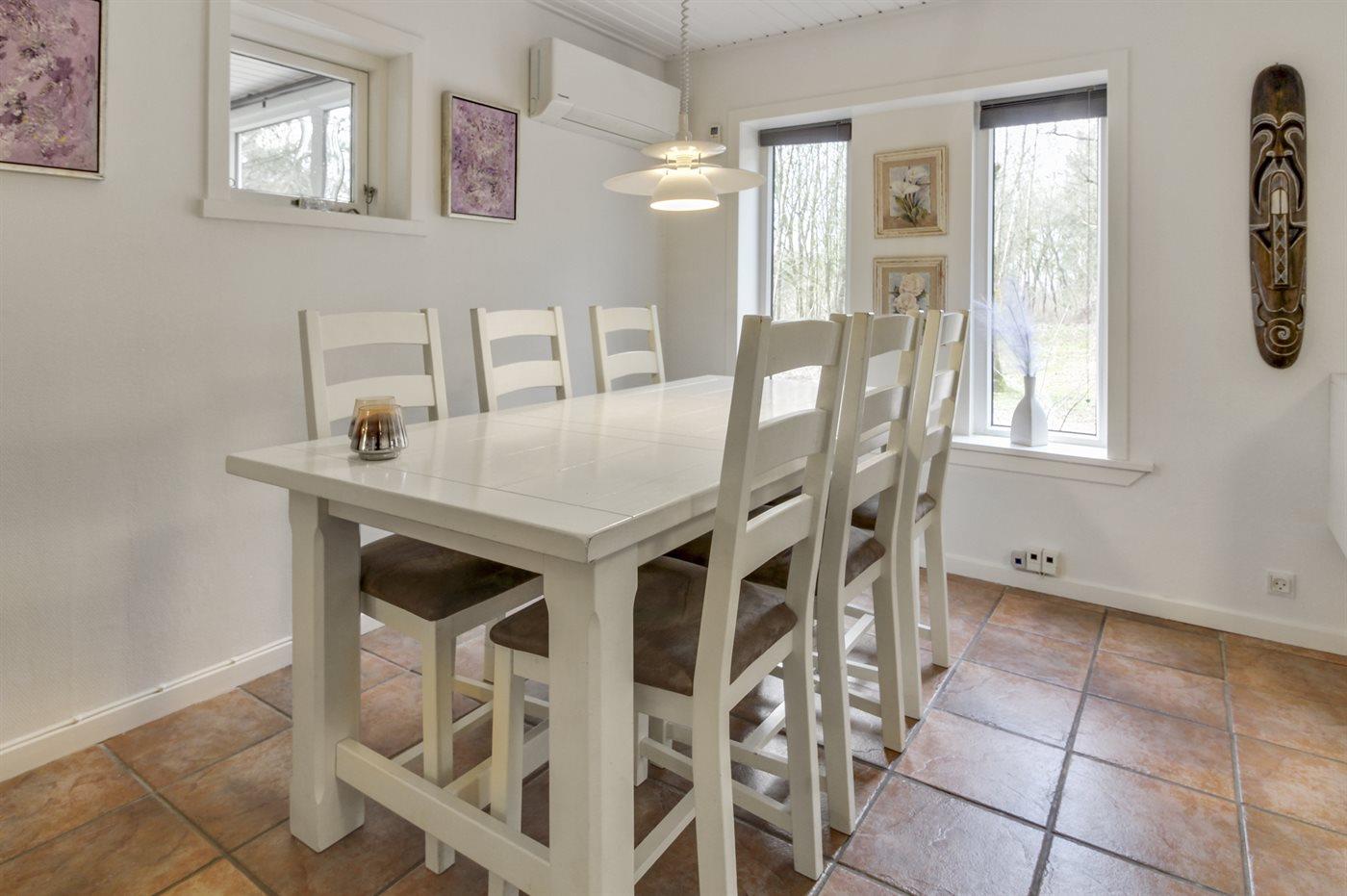 Sommerhuset egner sig til 4 personer. Ferieboligen er på 90 m² og er bygget i 1964. I 2012 gennemgik ferieboligen en delvis renovering. Det er tilladt at medbringe 1 husdyr. Ferieboligen er udstyret med energibesparende varmepumpe. Ferieboligen har vaskemaskine. Frysekapacitet på 10 liter. Der er desuden brændeovn. Til de små er der 1 stk. barnestol.