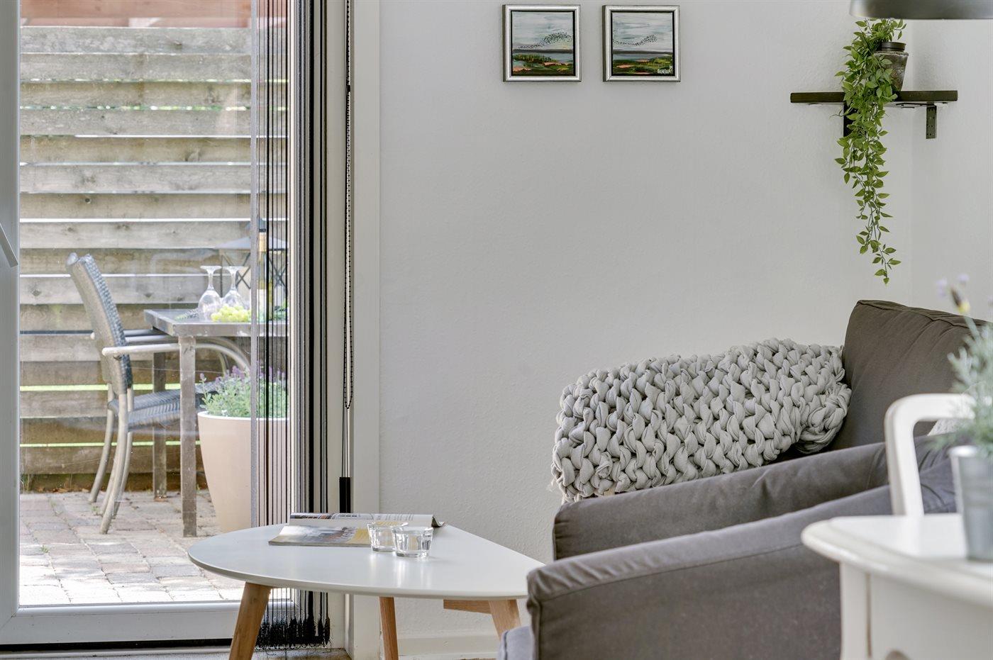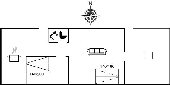 Der er i alt 1 soveværelse. Sovepladserne fordeler sig på: 2 sovepladser i dobbeltseng. 2 sovepladser i sovesofa (dobbelt). Derudover er der 1 stk. barneseng.