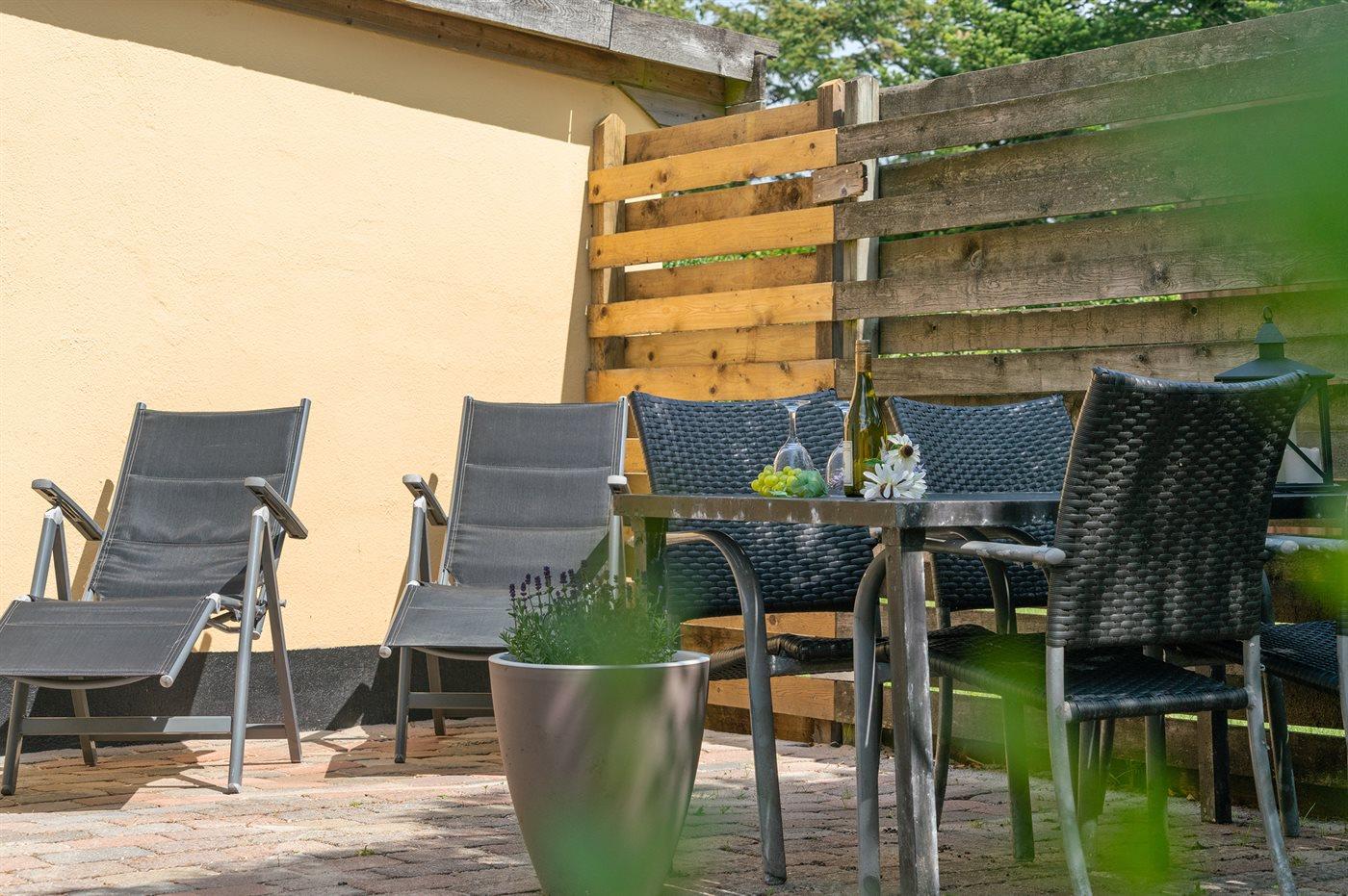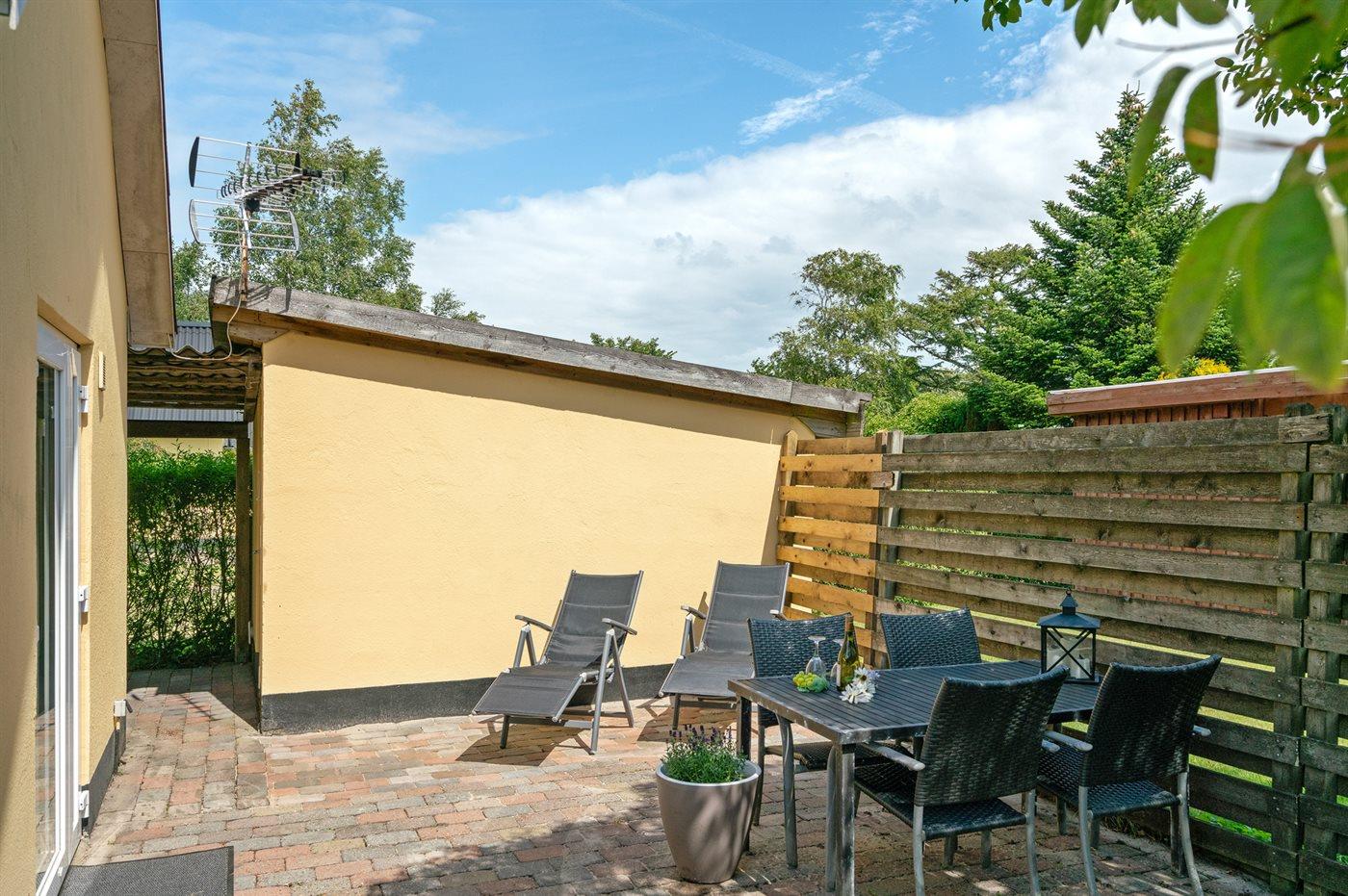 Ferieboligen er beliggende på en 220 m² stor naturgrund. Der er 4300 m til Vadehavet. Nærmeste forretning er beliggende i en afstand af 50 m. Der er en golfbane i en afstand af 6000 m. Til ferieboligen hører 28 m² terrasseareal. Der er redskabsrum. Grill til rådighed. Parkering ved ferieboligen.