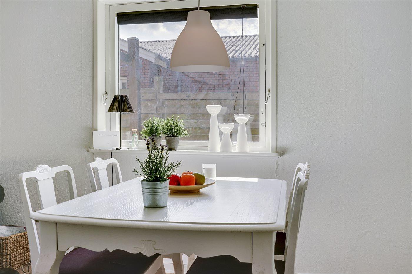 Køkkenet er udstyret med 1 køleskab. Der er 4 keramiske kogeplader, varmluftovn, mikrobølgeovn, Airfryer samt opvaskemaskine.