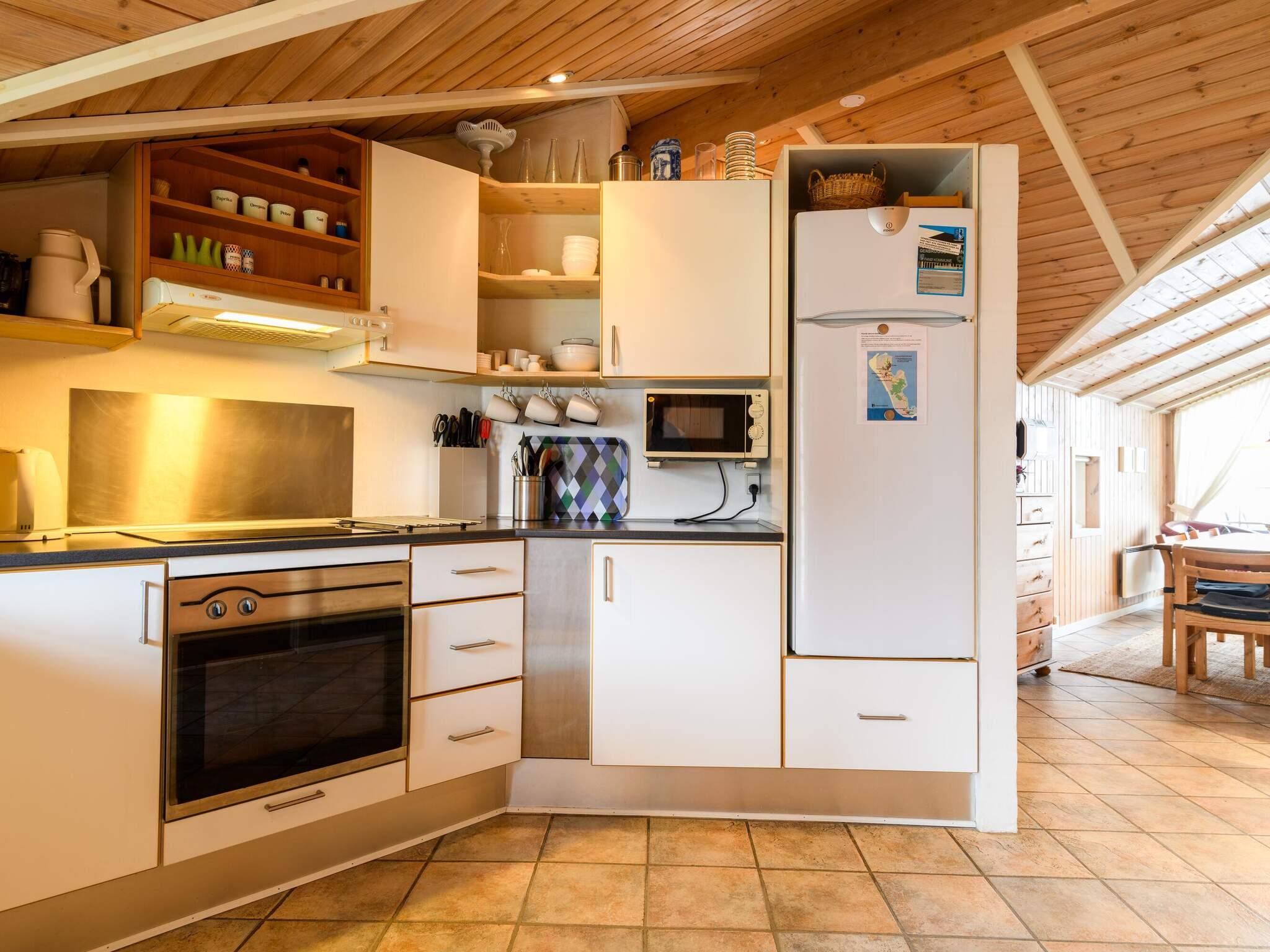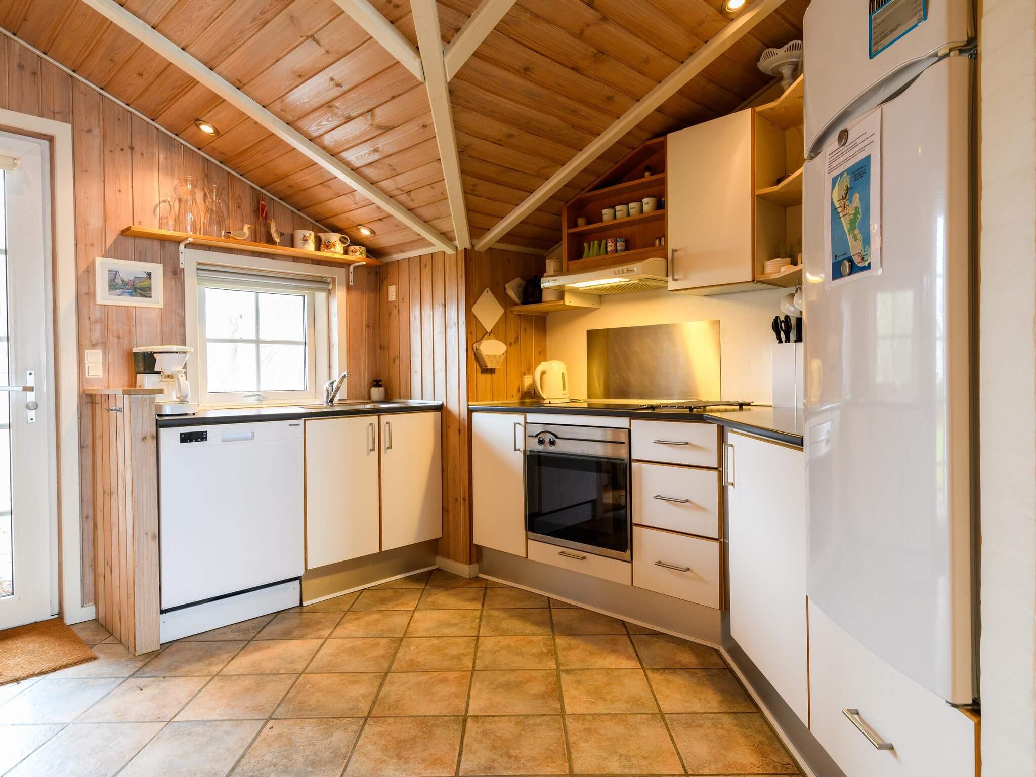 Køkken: Elkogepl., køleskab, fryser 1 - 59 l, emhætte, kaffemaskine, opvaskemask.
