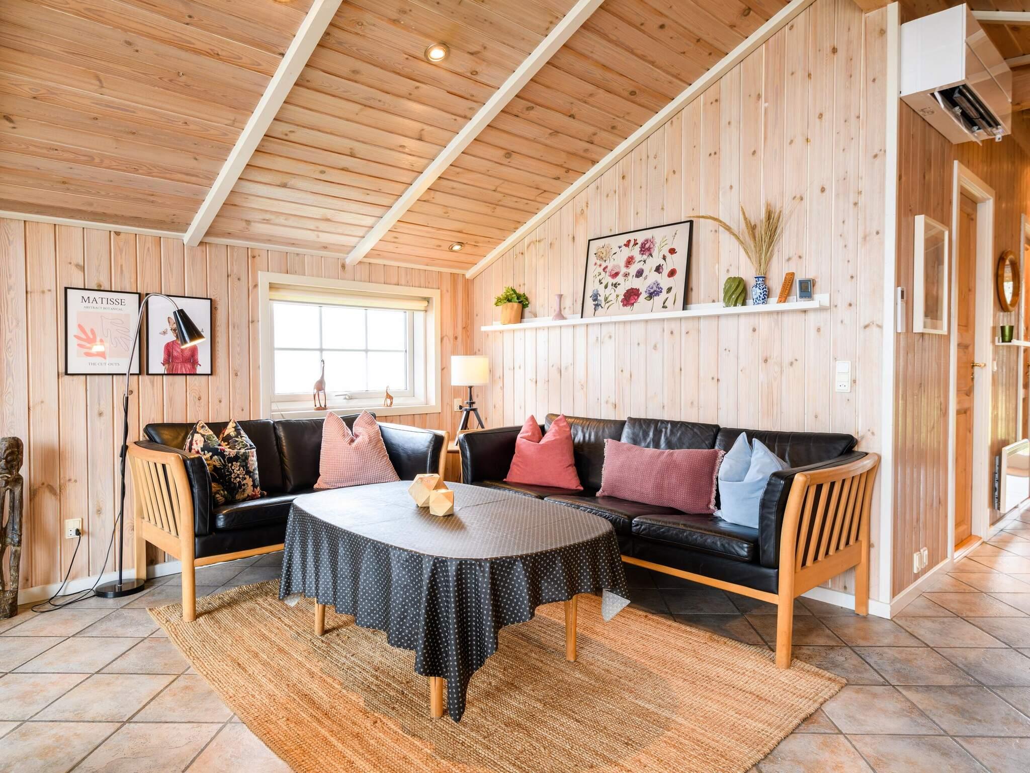 1 Opholdsstue: Brændeovn, stereoanlæg, dvd-afspiller, tv, kabel-tv, barneseng og høj stol