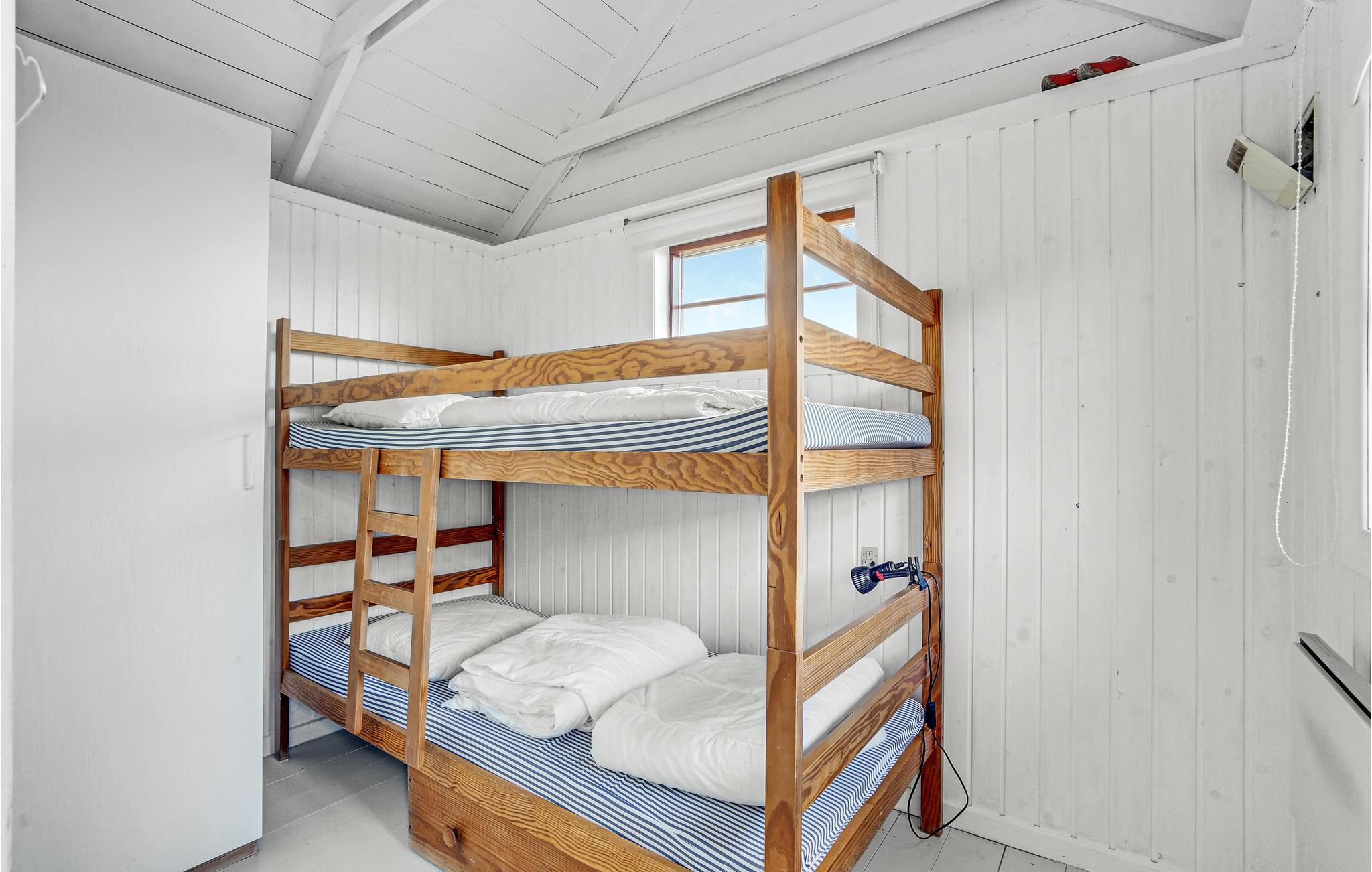 Dette hyggelige træhus er placeret på en højtliggende klitgrund i Rindby, tæt ved stranden.