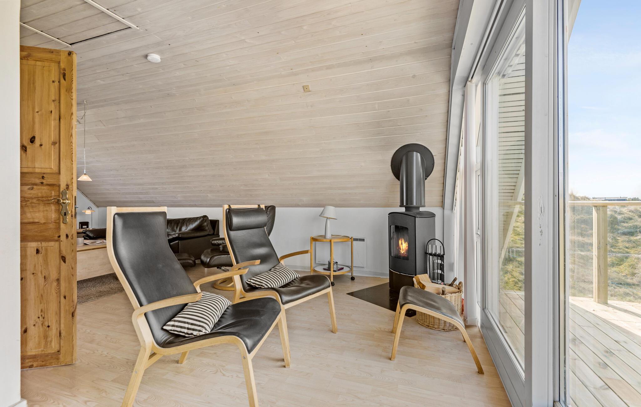 Nyd jeres ferie i dette komfortable feriehus med swimmingpool, spabad og sauna. Her kan I føle jer godt tilpas, og fra stuen på øverste etage kan I nyde udsigten over klitterne og helt ud til havet. Hyg jer med filmaftener på sofaen, med fælles madlavning i køkkenet eller med wellness i saunaen eller svømning i swimmingpoolen.