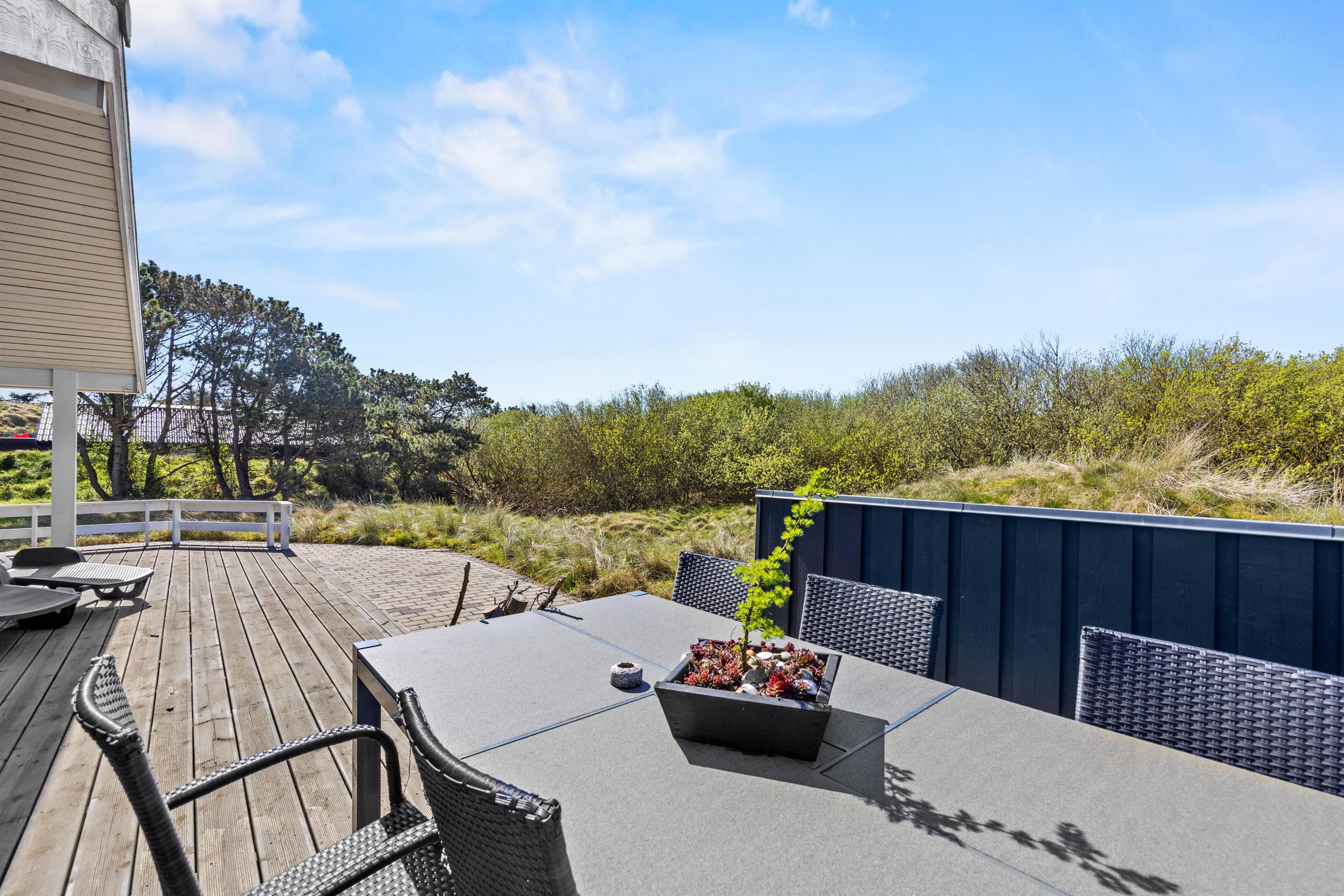 På den ugenerede og læfyldte træterrasse, kan I læne jer tilbage i solvognene med en god bog og lytte til naturens lyde. Hele grundstykket er kuperet og godt afskærmet, så I kan nyde den friske luft fuldstændig uforstyrret. Her er der også garanti for besøg af Fanøs rige dyreliv helt tæt på, når kaniner, fasaner og råvildt kigger forbi. På terrassen venter jer ligeledes havemøbler og en grill, så når sulten melder sig, kan I blot tænde op i grillen, dække bordet og nyde lækre lokale specialiteter tilberedt under åben himmel. Det er den perfekte måde at afslutte en sommeraften på.