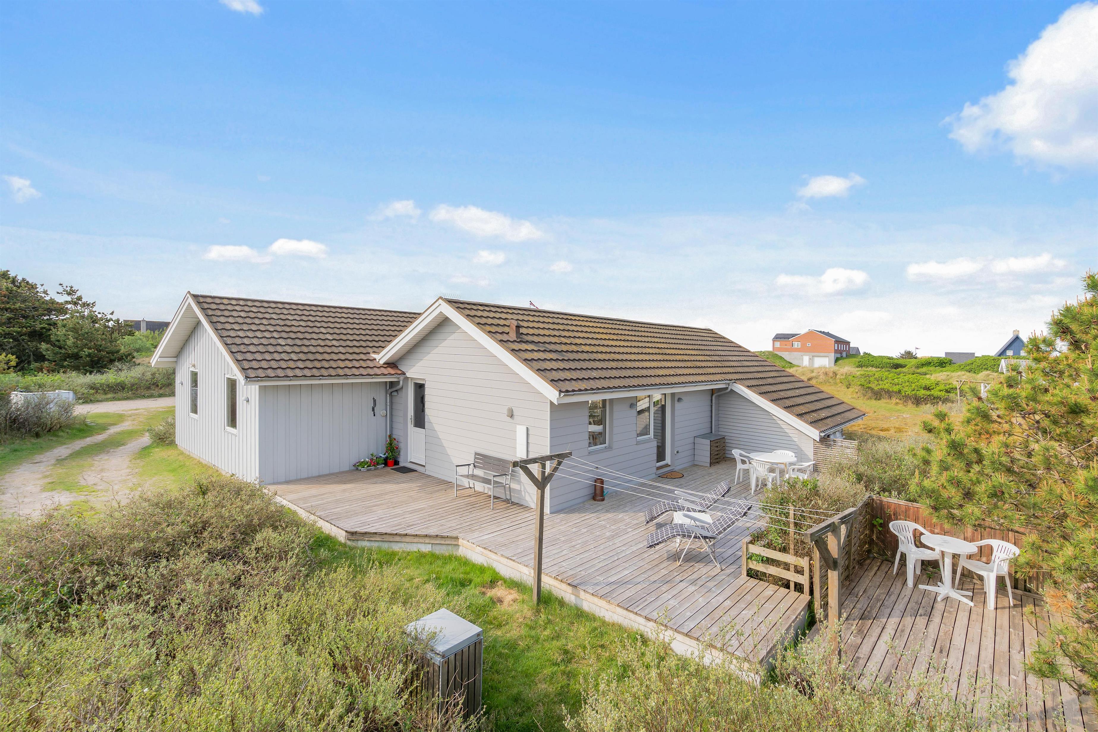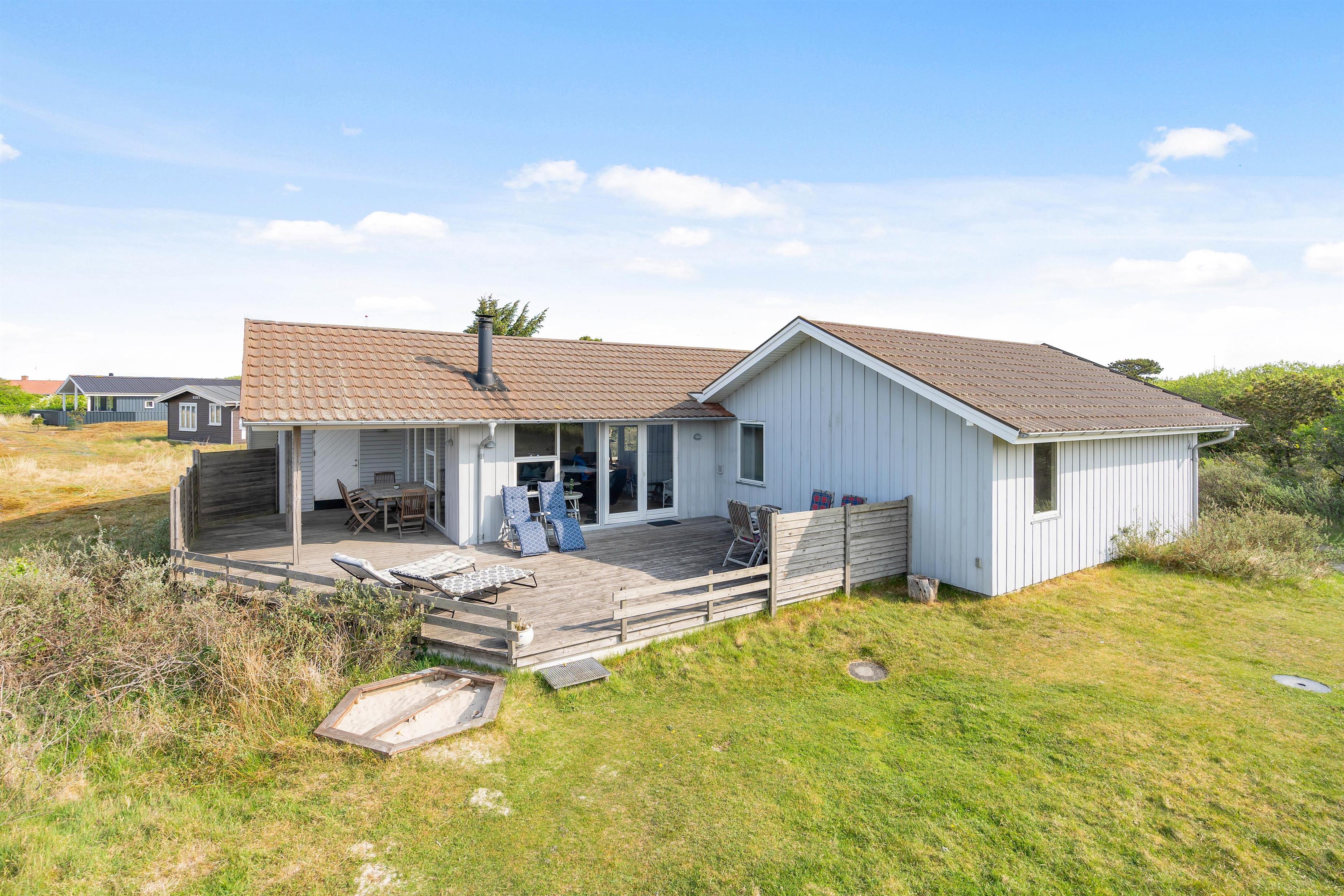 På sommerhusets udeområde, der er mere end 2.500 kvadratmeter stort, er der noget for både store og små, så hele familien kan tilbringe de solrige feriedage udendørs sammen. Feriens yngste gæster kan lege i haven, hvor der både venter dem en sandkasse og et gyngestativ.