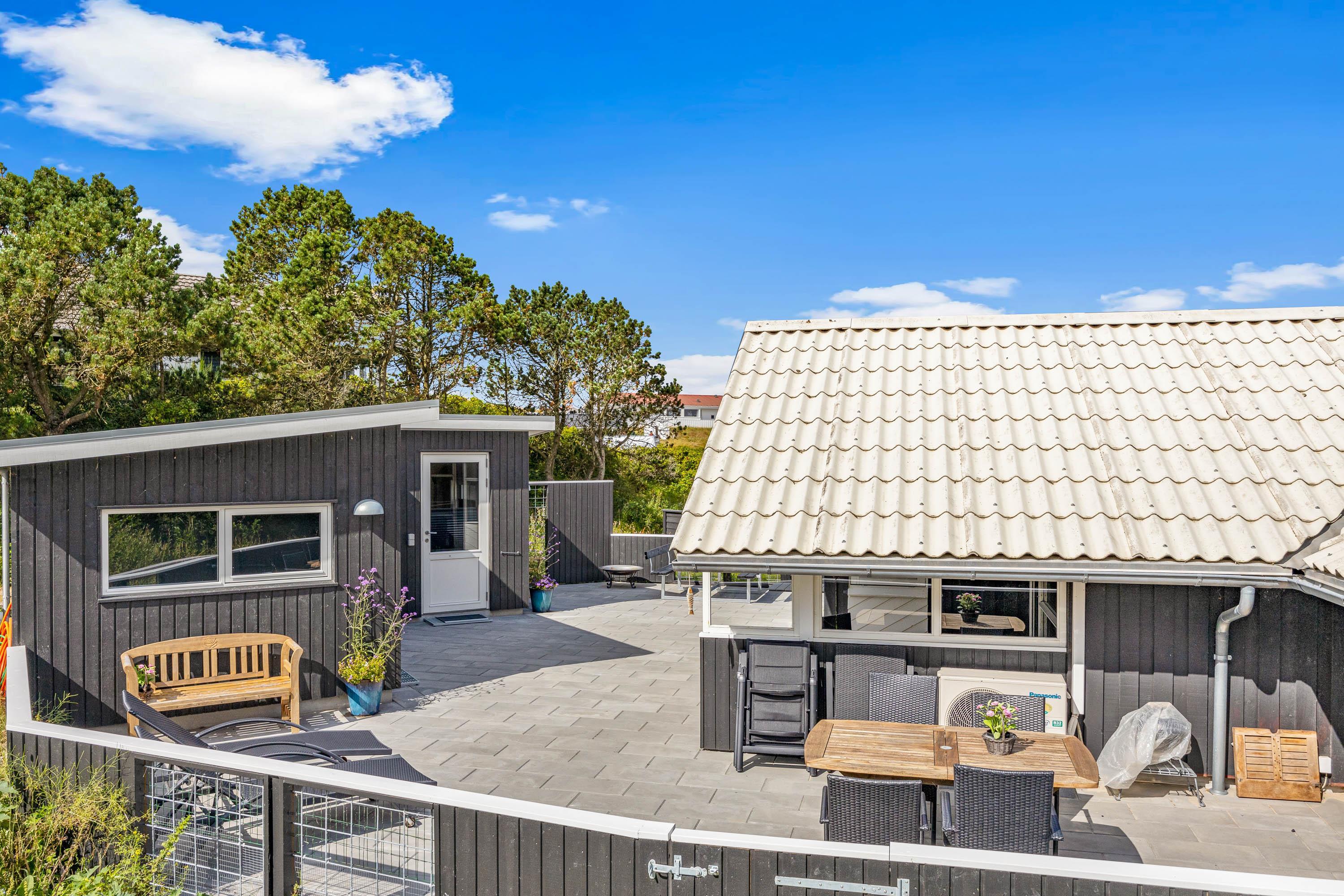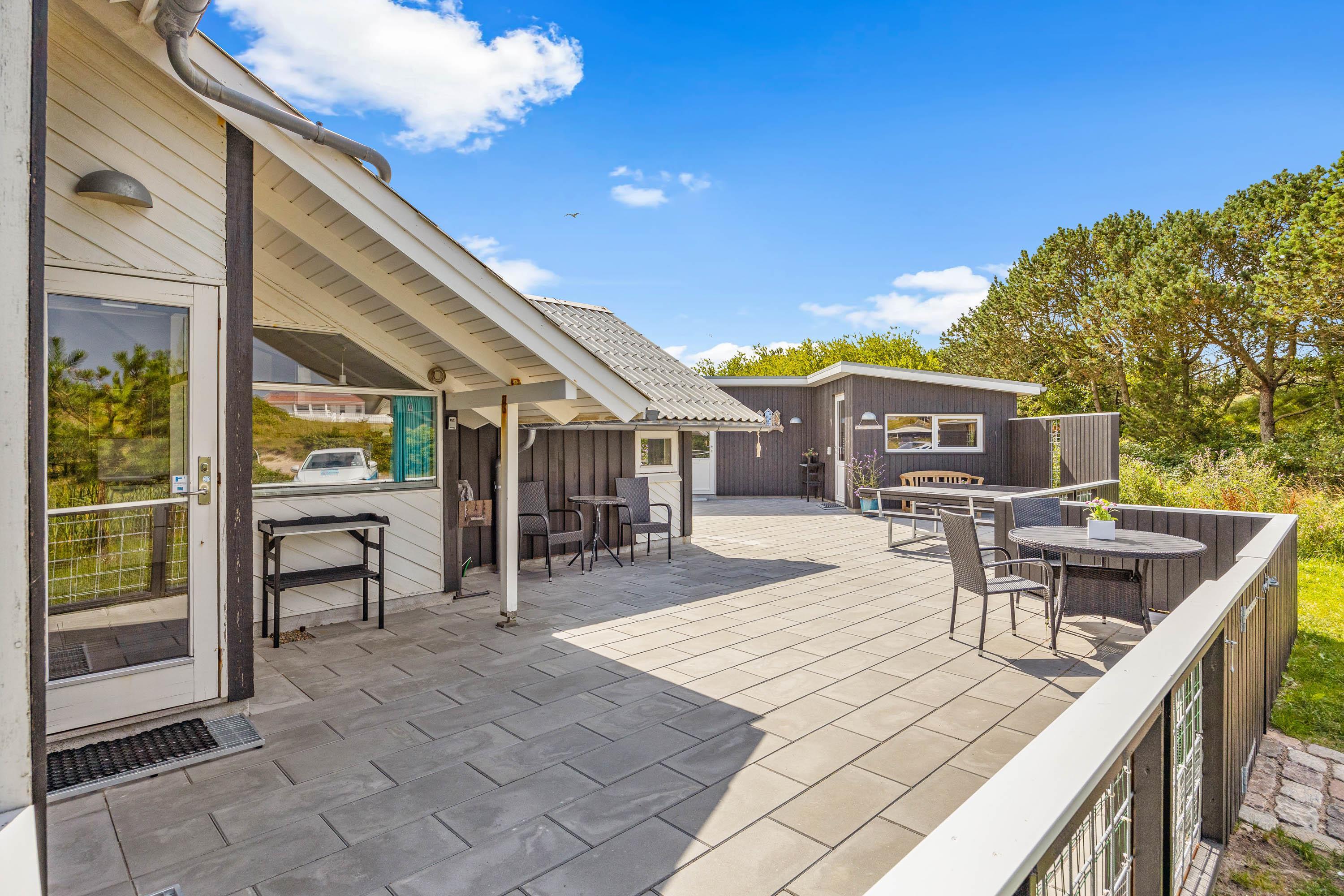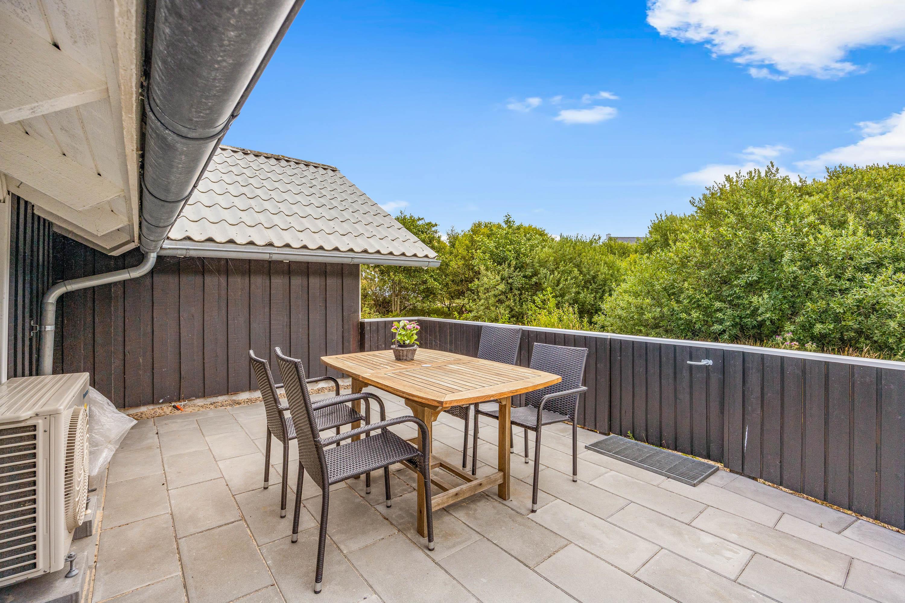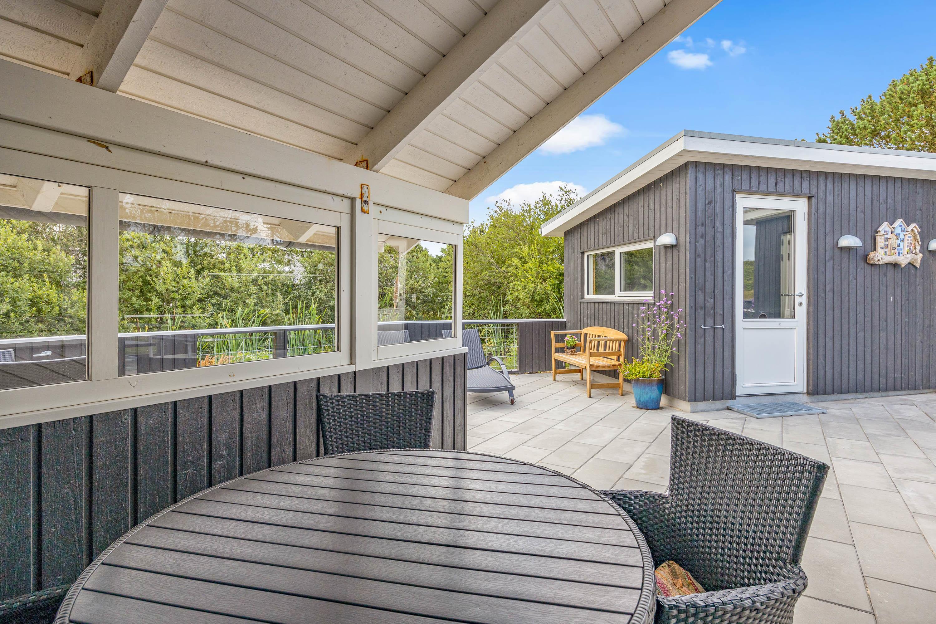 Terrassen er både lukket, afskærmet og overdækket, så I kan nyde udeområdet i al slags vejr. Her finder I også både havemøbler og en grill, så I kan tilbringe mange hyggelige timer sammen med god mad fra grillen.
