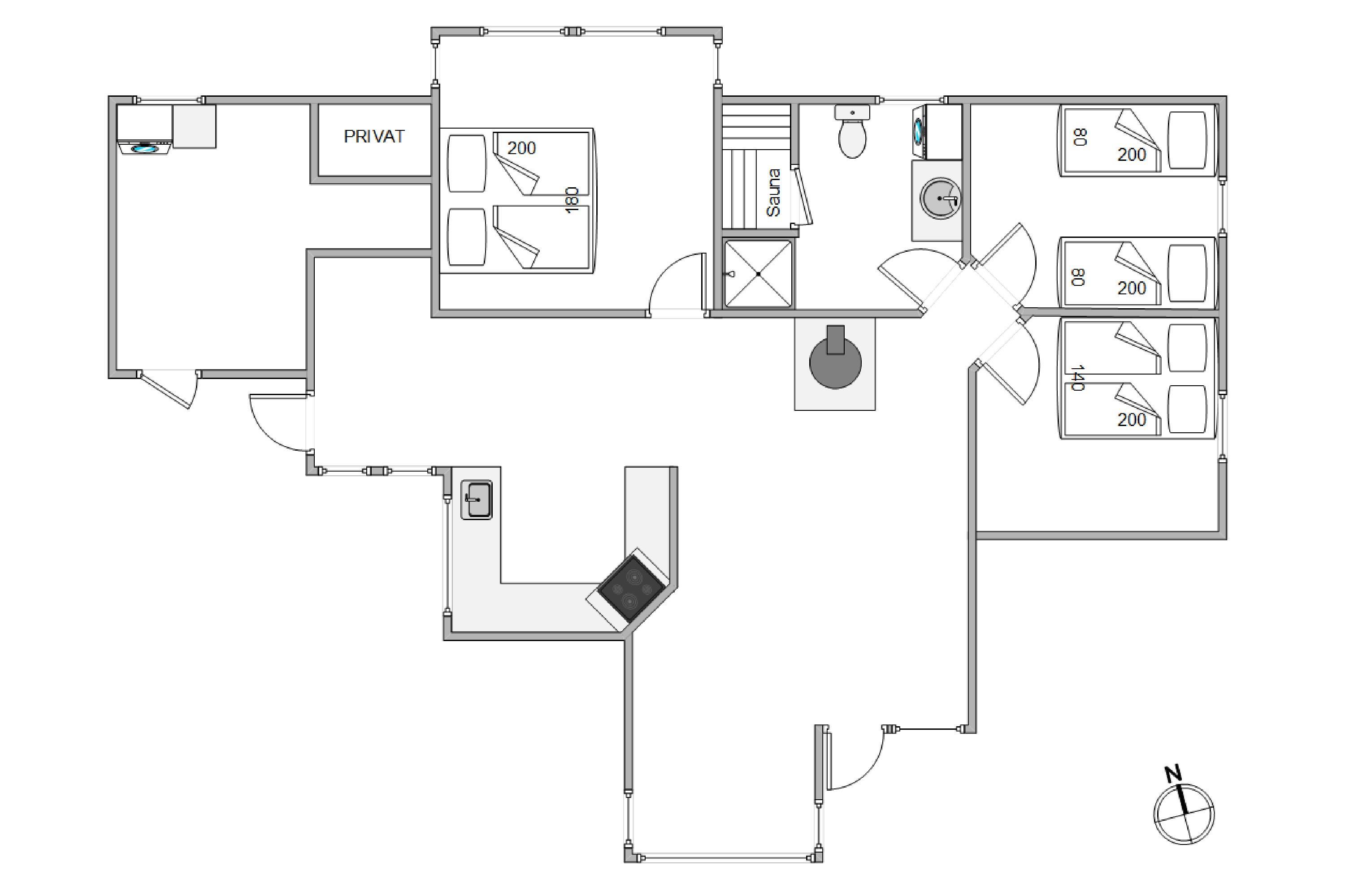 Feriehusets badeværelse er udstyret med gulvvarme, som sørger for lune fødder i de kolde måneder. Deslige er der også en sauna, hvor I kan slappe af og få varmet musklerne igennem efter en god travetur på stranden.