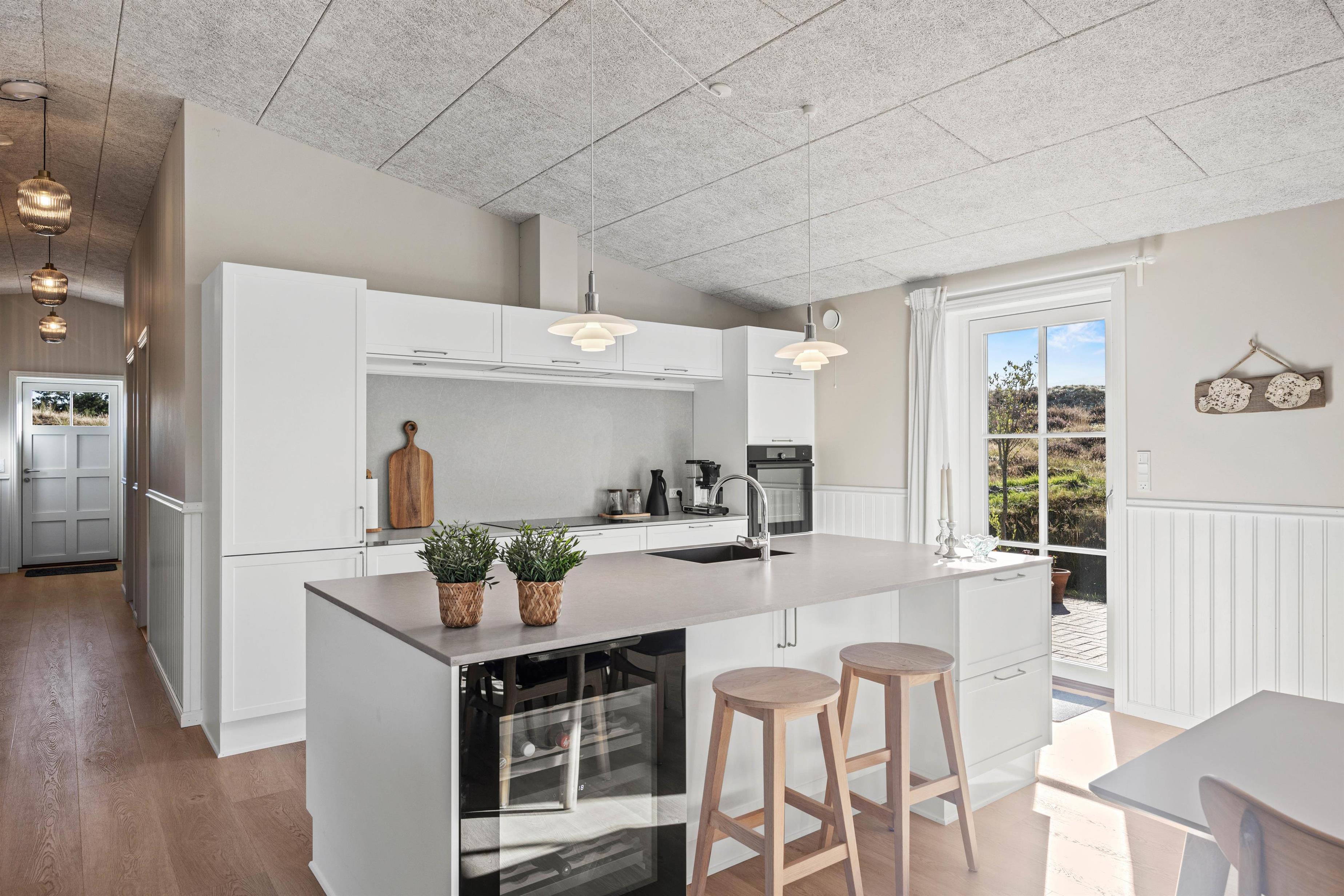 Det hyggelige køkken og alrum danner rammen for den perfekte feriehygge og aktiviteter, I kan lave sammen. Om det nu er tilberedning af lækker mad, hygge med spil, læsning eller en god film på tv. Køkkenet har opvaskemaskine, køleskab, induktion med ovn og en separat 60 liters fryser. Desuden er der både vaskemaskine og tørretumbler til rådighed.