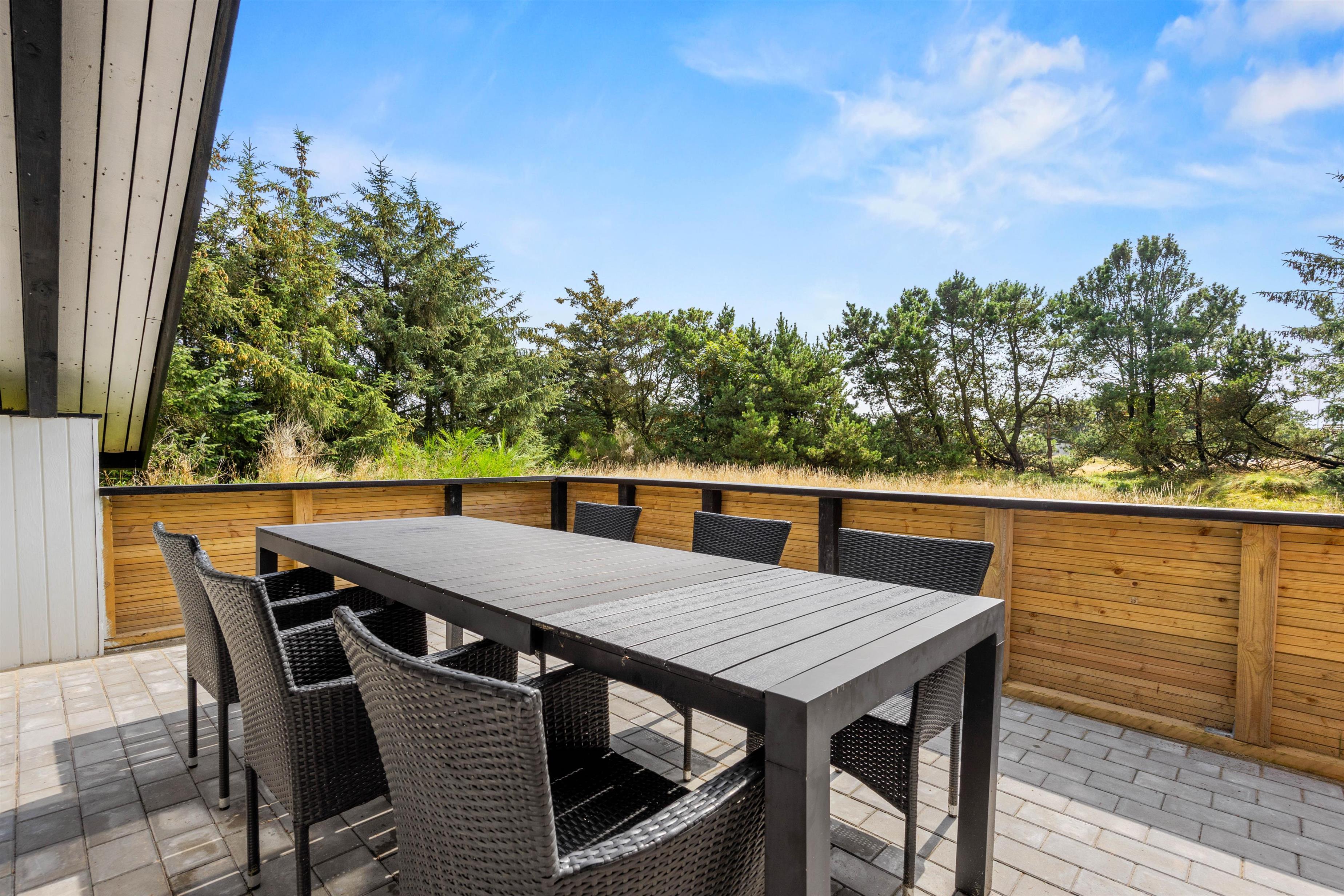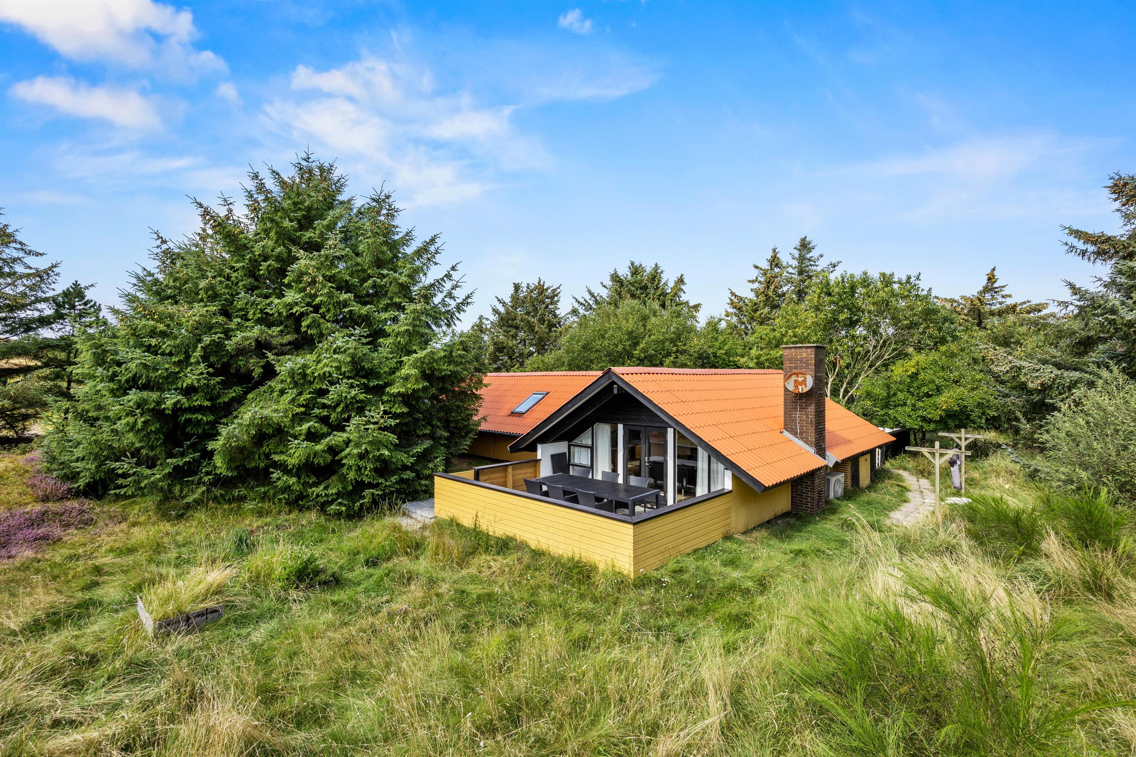 På den dejlige naturgrund er terrassen delvis afskærmet og åben, og her kan I grille og dase i havemøblerne eller i liggestolene. Fra jeres ferieadresse på Klittoften 1 har I kun 800 meter til stranden til fods eller på cykel.